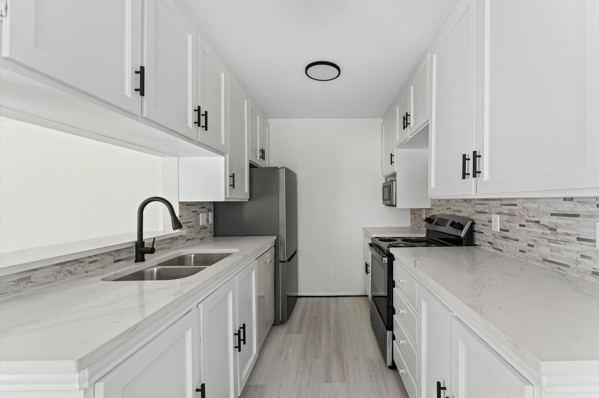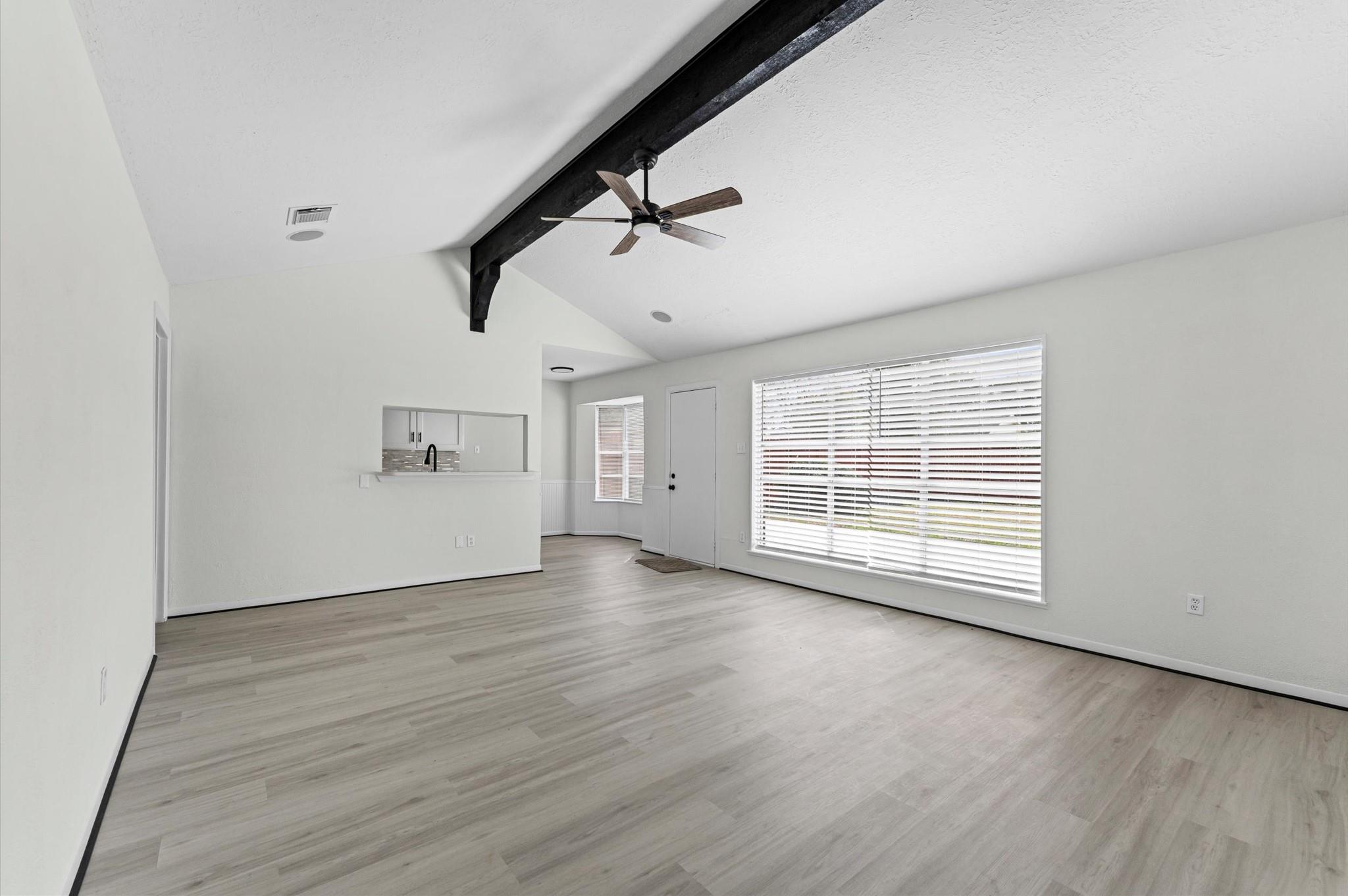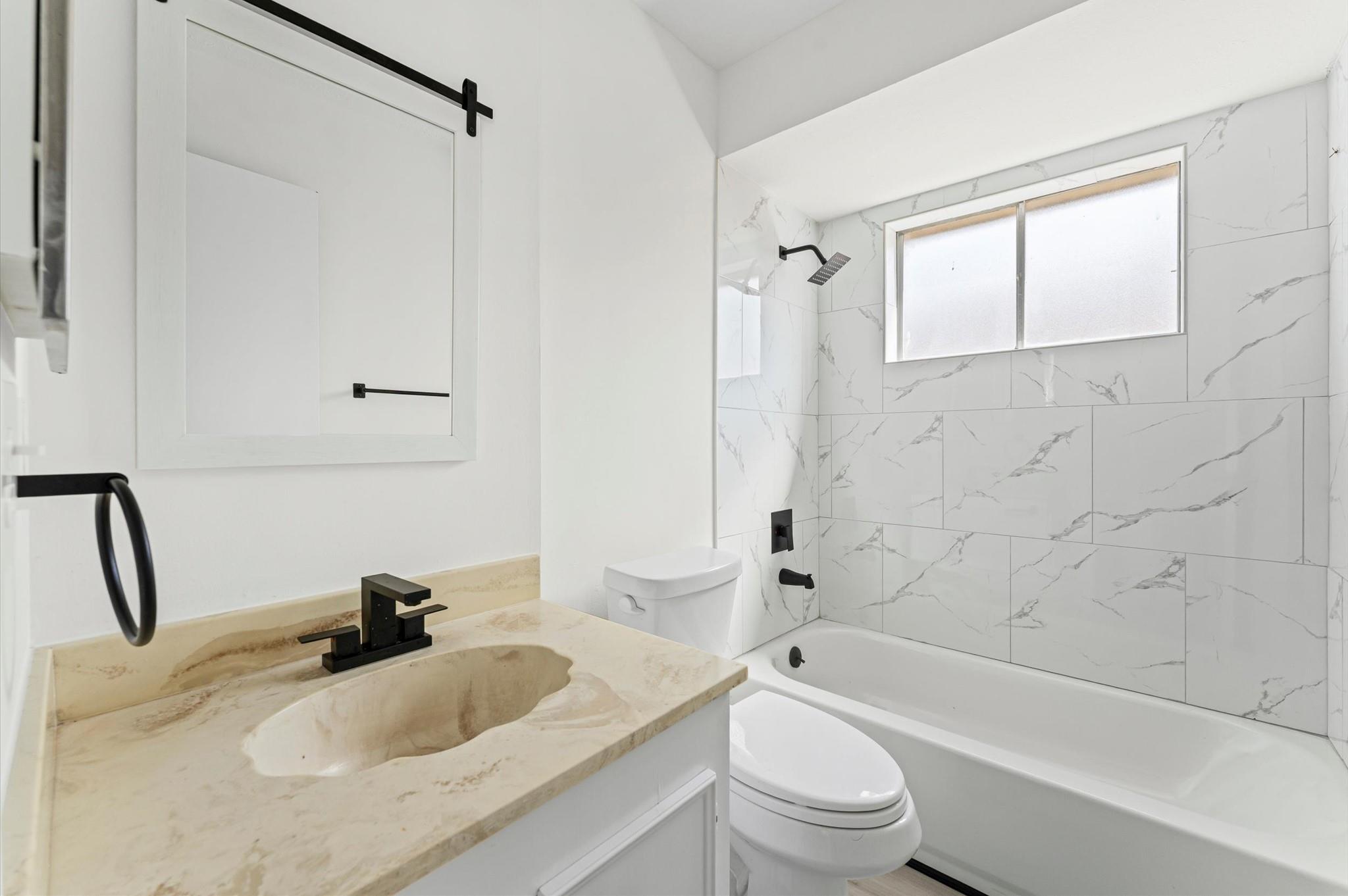 /monthBeautifully renovated 3-bedroom, 2-bath home for lease in the heart of Alief. This move-in ready property features a spacious living room with soaring cathedral ceilings and a striking wood beam accent, fresh interior paint, premium luxury flooring, and updated lighting and ceiling fans throughout. The stylish kitchen offers Quartz countertops, a modern tile backsplash, pass-through bar, sleek black fixtures, and brand-new stainless steel appliances including oven, stove, microwave, and refrigerator. The primary suite includes a walk-in shower and upgraded vanity, while the secondary bath features a new tub and refreshed finishes. Enjoy a large backyard with a massive concrete patio, perfect for entertaining. Additional upgrades include new garage doors with dual openers, a new water heater, and a recently updated A/C system. Conveniently located near Highway 59 and Beltway 8 for easy commuting.