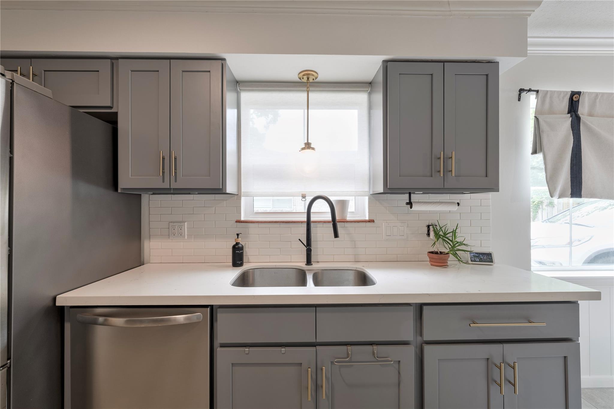 Meticulously maintained one-story home featuring thoughtful updates, modern finishes, and true move-in ready comfort. Recent improvements include a new roof, fresh interior paint, and fully remodeled bathrooms. Open-concept kitchen flows seamlessly into the living and dining areas, creating an ideal space for entertaining and everyday living, complete with a cozy corner fireplace. Dedicated home office offers flexibility for remote work or study. Bedrooms are thoughtfully separated for privacy, with a spacious primary suite featuring a spa-like bath and an incredible custom closet you must see to believe. Large backyard provides room to relax, play, or entertain, while the detached garage offers space for parking, workshop, or hobbies. Conveniently located near shopping, dining, parks, and easy access to I-45, Hardy Toll Road, and Beltway 8. Exceptional condition, upgrades, and value make this home stand out. Call to schedule your private showing!