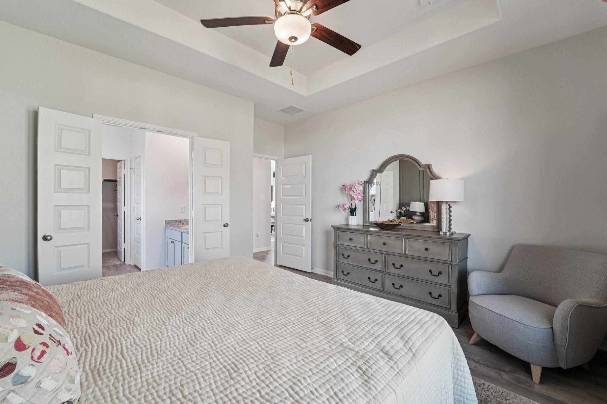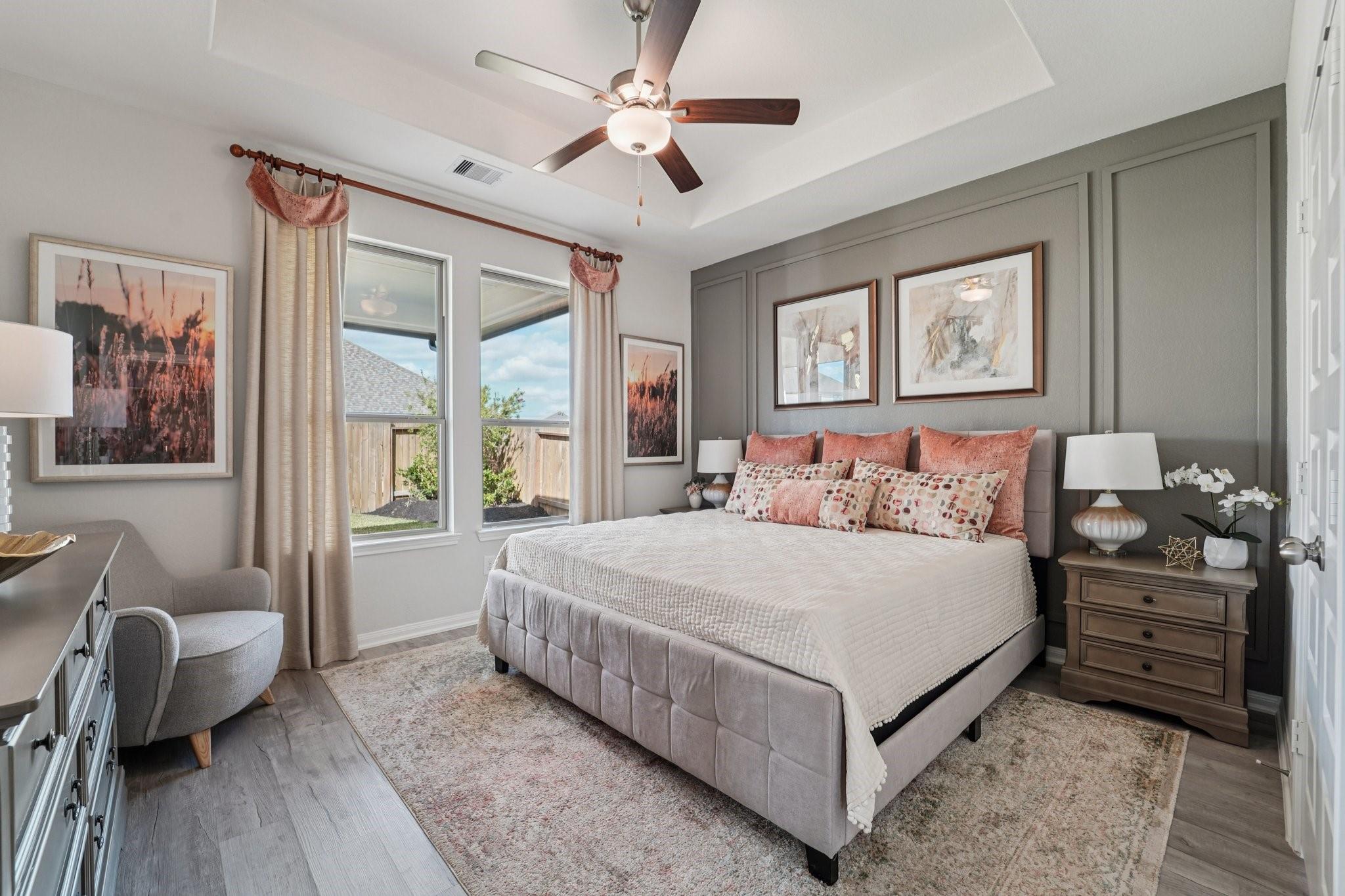 The Matagorda is a four-bedroom, three-bath floorplan that offers 2,084 square feet. The large living area with soaring ceilings offering plenty of room for relaxation and entertaining. The owner's retreat is a private sanctuary, featuring a spacious bathroom and a generous walk-in closet. A second bedroom downstairs offers flexibility as a nursery, study or guest space, while an upstairs gameroom provides an additional space to enjoy. Bluebonnet Village offers the perfect blend of small-town charm and the quality craftsmanship you can expect from First America Homes, making it the most desirable new home community in Bellville, TX. With easy access to I-10 and US 290, residents can quickly connect to Greater Houston while enjoying the peace and charm of Bellville. Families benefit from highly regarded Bellville ISD schools, a low tax rate and a vibrant community filled with year-round events.