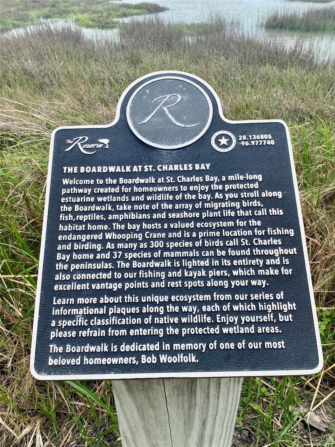 Prime East Facing Waterfront Lot in the Reserves at St. Charles Bay located in Rockport TX. This pristine neighborhood features everything your heart could desire with Waterfront Living, Community, Recreation & More! There is an Infinity Pool, a 500 Foot Lit Fishing Pier, Over 2 Miles of Boardwalk, Kayak Launch Deck & Paddle boarding, a Hammock Park, Outdoor Kitchen & Automated Firepit. If you are a Nature Lover, Goose Island State Park is your neighbor. You will see exceptional birding including endangered whooping cranes. There is over 20 acres of deeded wetlands on site with over 100 species of wildlife on site according to their website. This community is located on Lamar Peninsula. The areas it encompasses are St. Charles, Mesquite, Carlos, Aransas & Copano Bays. It truly is some of the best fishing in the area. If you are looking for a home away from home, or full time living, this is definitely a community to be checked into. Short Term Daily Rentals are allowed as well!