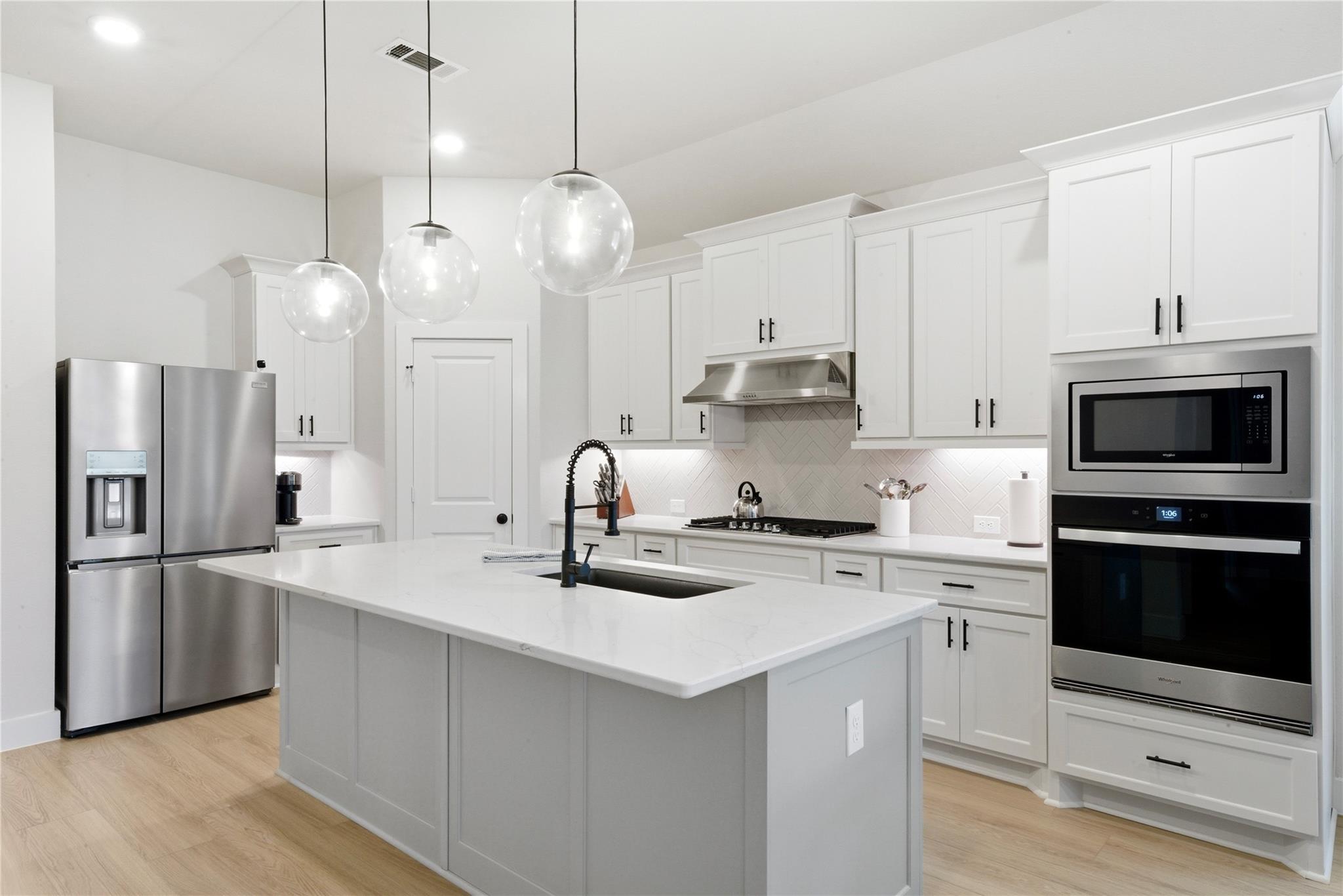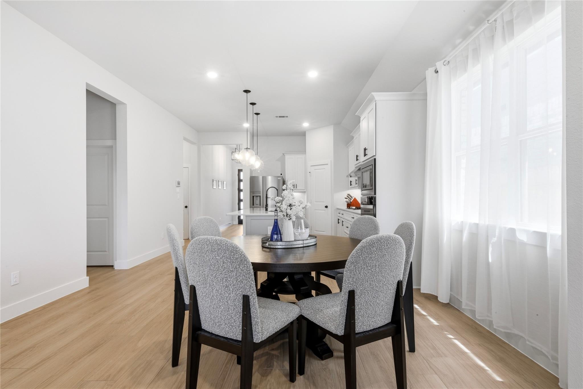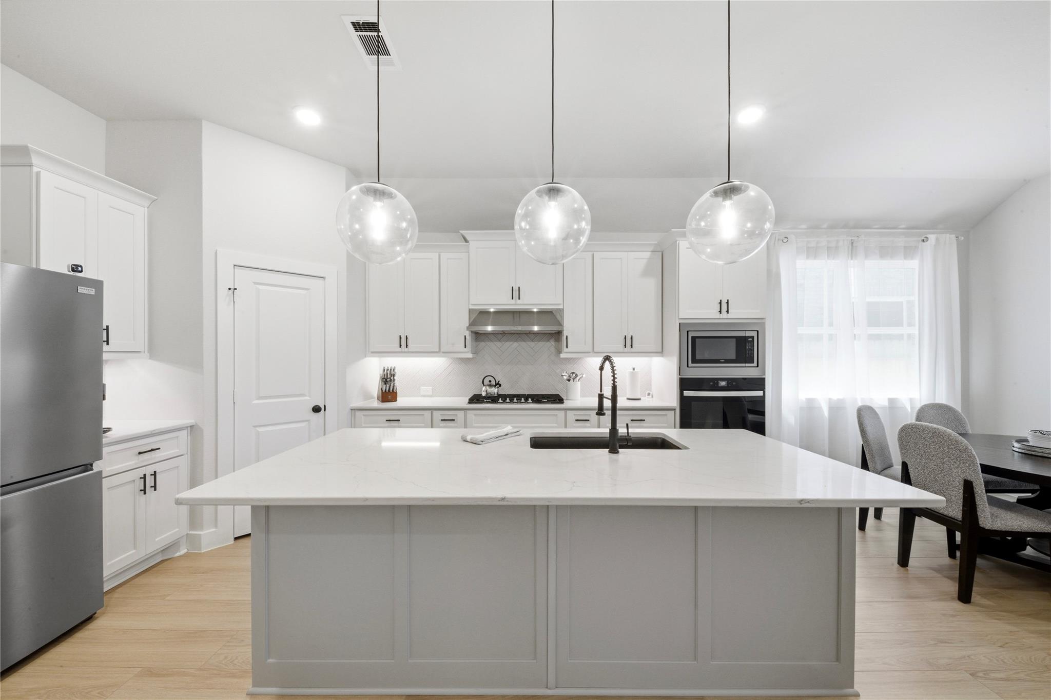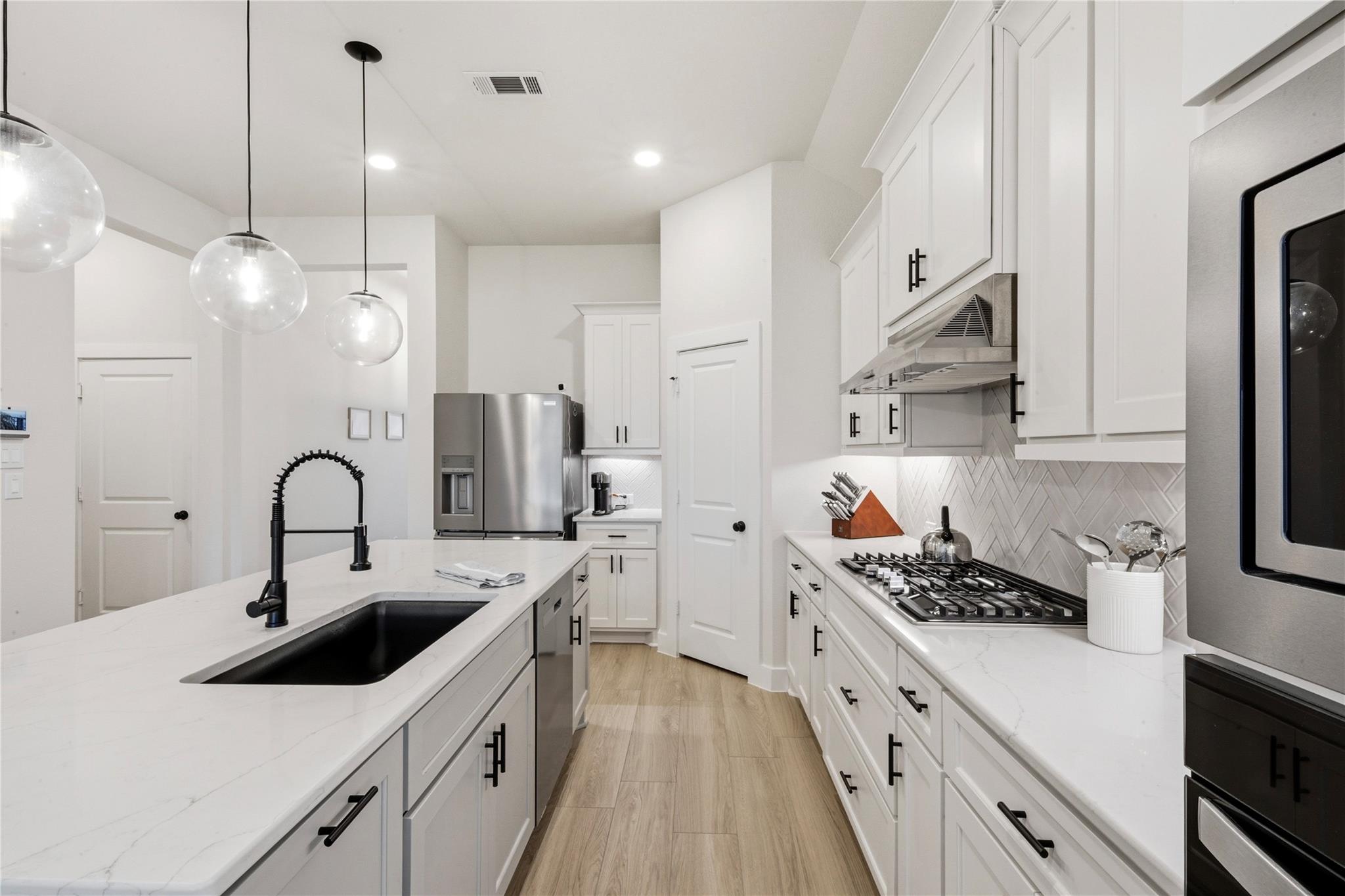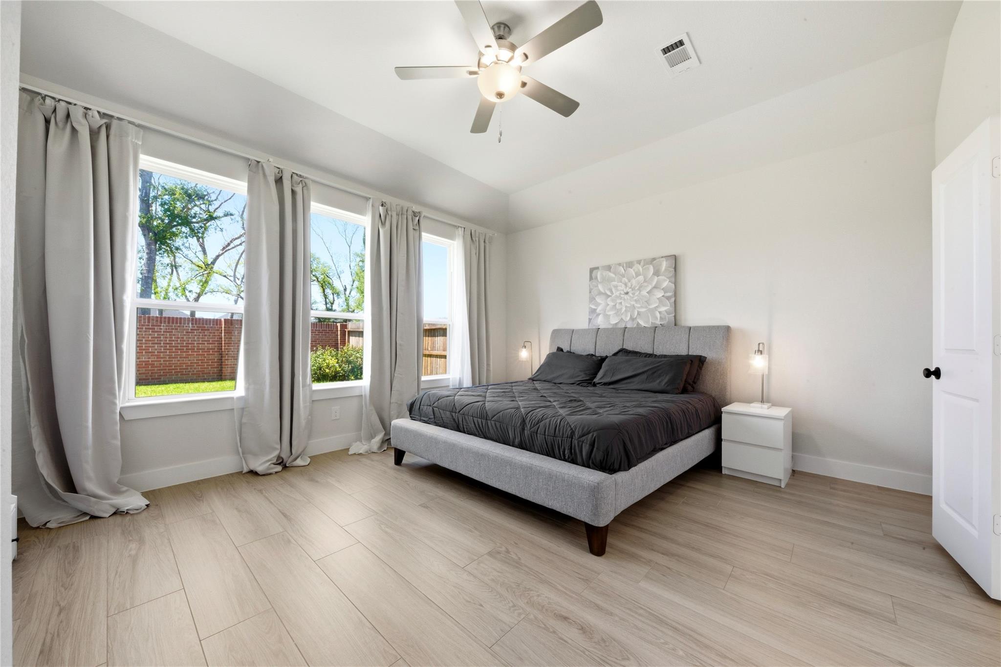 Stunning Sienna Home with No Back Neighbors! Ideally located with easy access to FM 521, Hwy 288, and the Texas Medical Center, this nearly-new 4-bedroom, 3-bath home offers both convenience and tranquility. Step inside to an open-concept floor plan filled with natural light and designed for effortless living and entertaining. Enjoy serene views of mature, old-growth trees through custom wall-to-wall sliding glass doors, or relax on the extended patio with added privacy and no rear neighbors. Thoughtfully selected finishes throughout feature timeless design elements that complement both warm and gray tones. The primary suite has loads of natural light, high ceilings and a luxurious bathroom with freestanding tub. The spacious utility room offers ample space for storage or even a second refrigerator. Water softener and filtration system is also included. Experience the best of Sienna living with access to resort-style pools, parks, and community event centers.