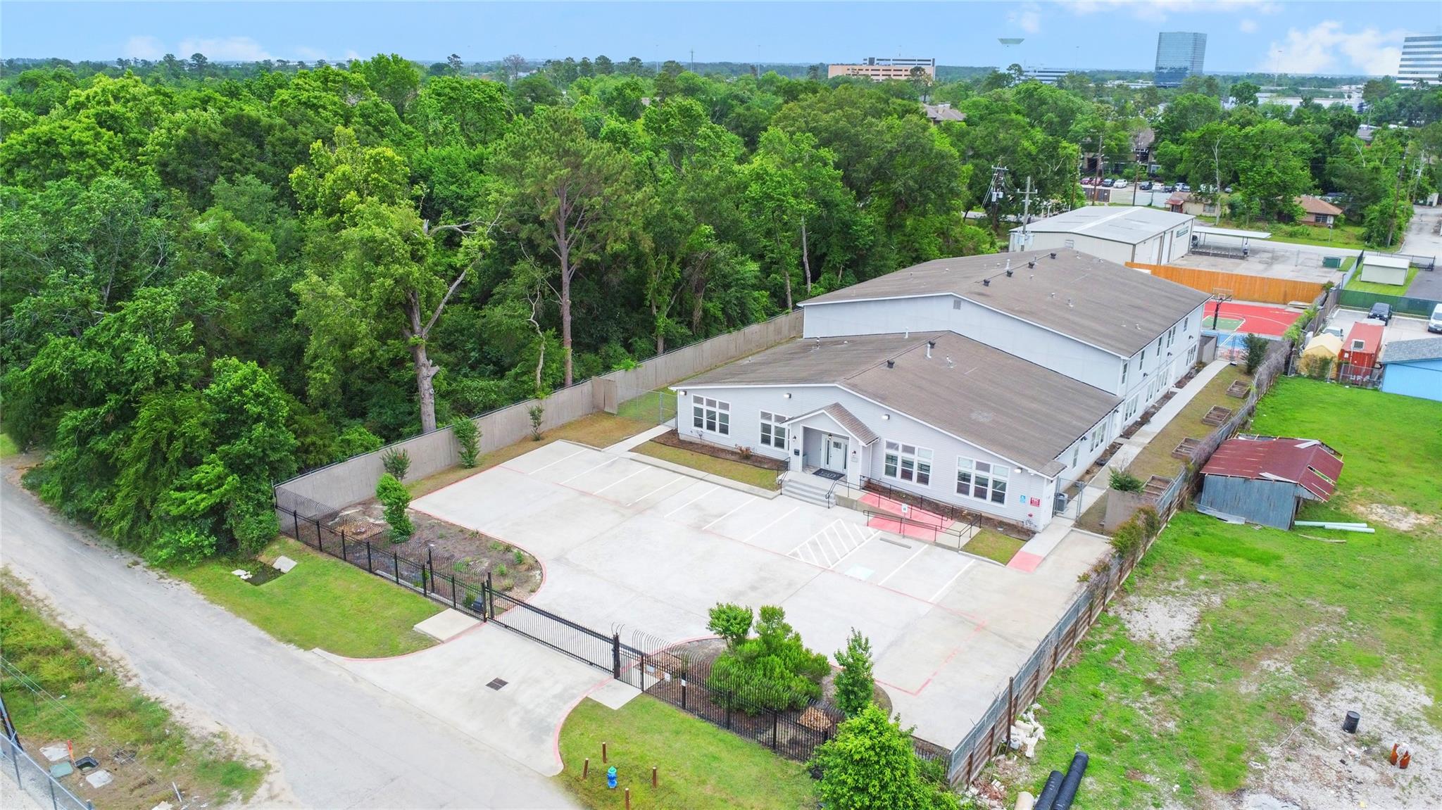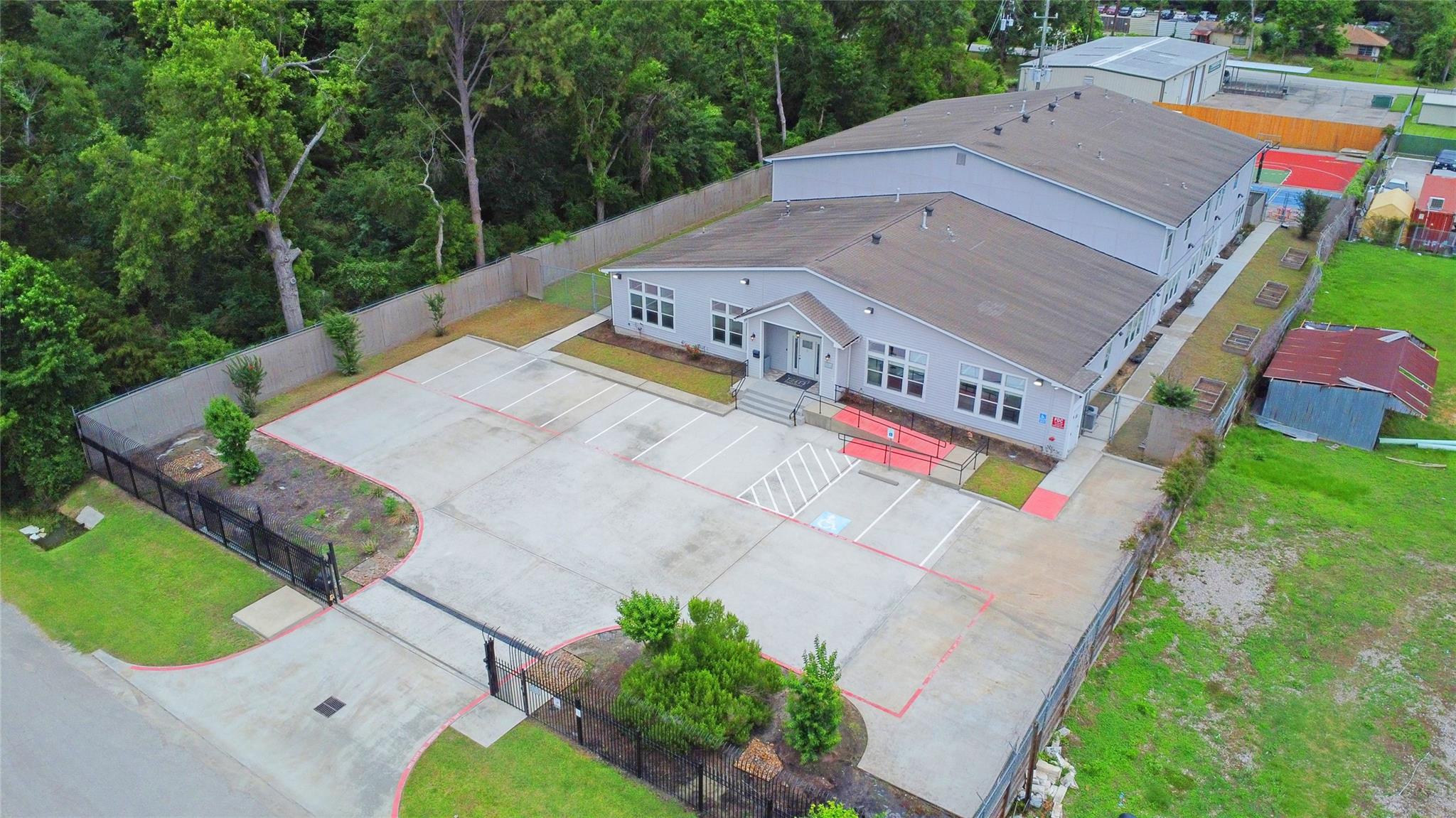 This expansive 16,800 sq ft gated property is primed for use as a residential rehabilitation center, fully equipped to support those in need. The facility boasts 17+ spacious bedrooms for residents, complemented by 12 dedicated rooms for staff and operational purposes. Community spaces on both levels provide ample room for events, meetings, leisure activities, and social interactions, featuring areas for watching television and playing games. Privacy is prioritized with 15 bathrooms, a mix of community and private facilities, serving both residents and staff. The state-of-the-art commercial kitchen comes fully equipped with top-tier appliances, including ovens, stoves, grills, fryers, refrigerators, freezers, an ice maker, and a dishwashing center, ensuring efficient meal preparation. Outdoors, enjoy two full-sized basketball courts and a covered area ideal for relaxation. Residents can also engage in therapeutic gardening, enhancing the holistic healing environment.
