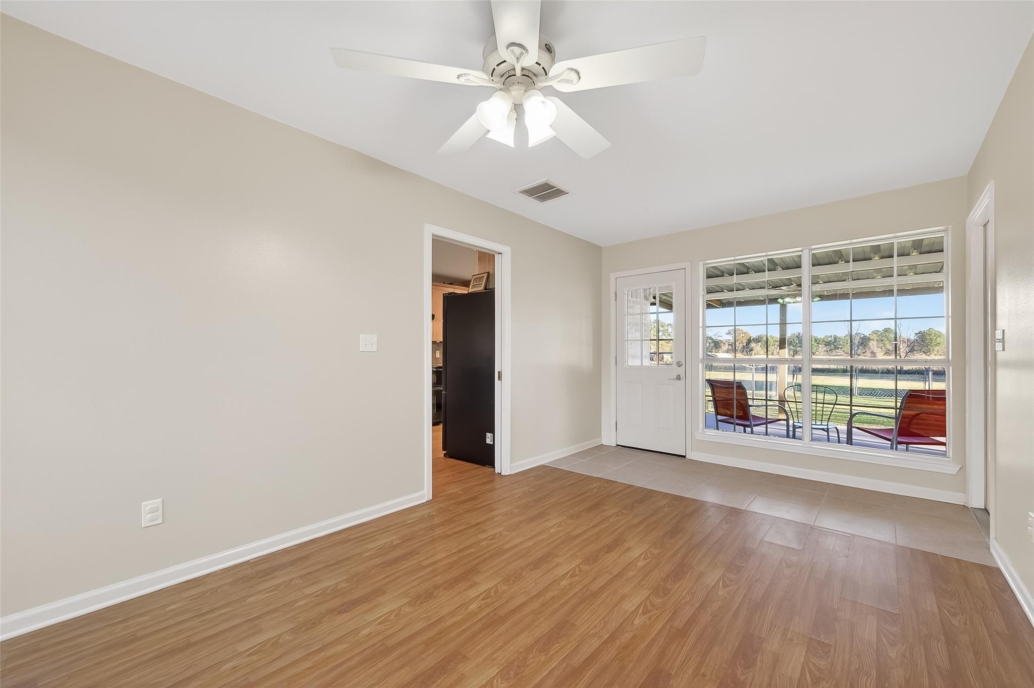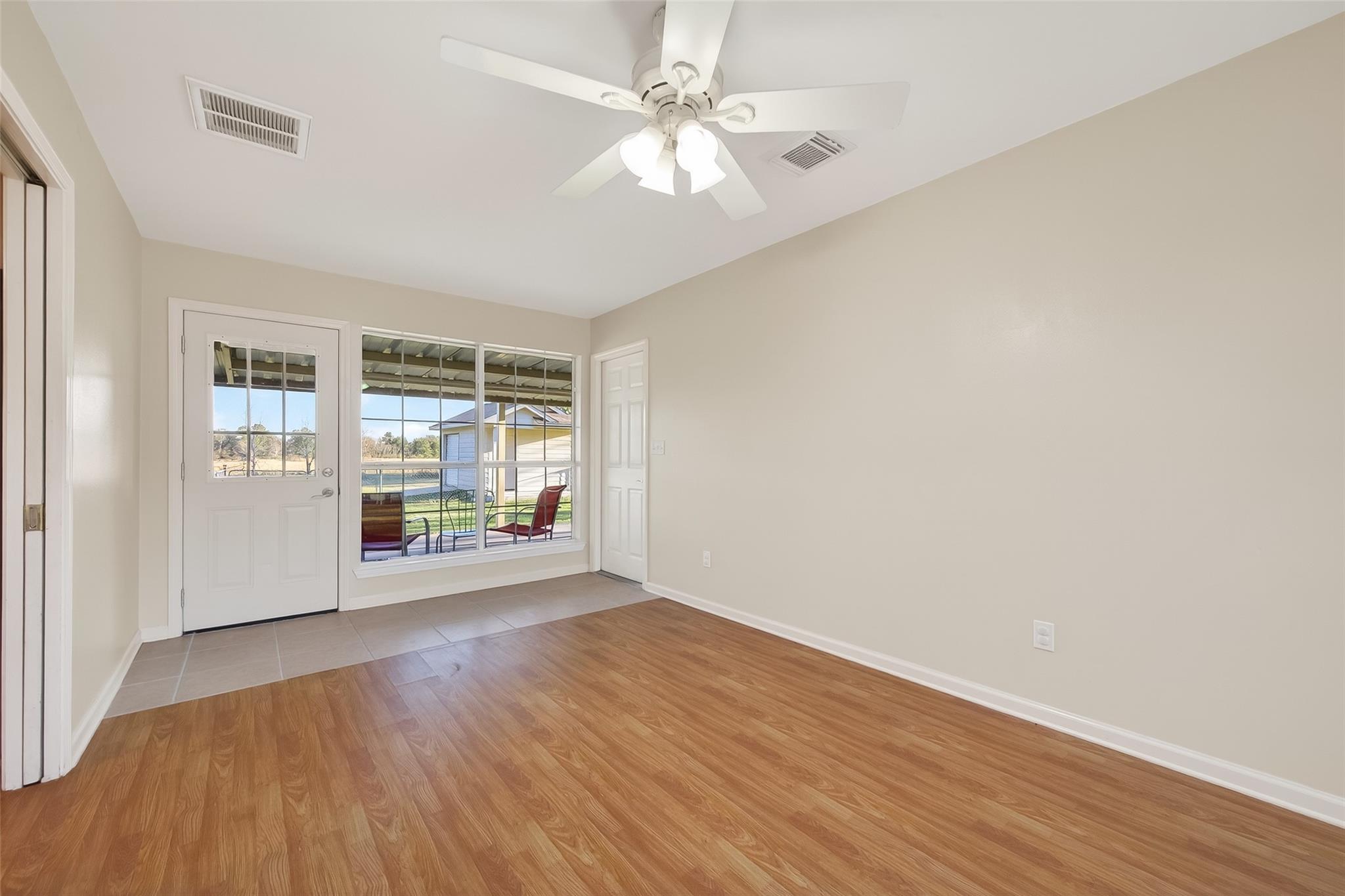 Welcome to peaceful country living with room to grow! This beautifully maintained 1,800 sq ft home sits on nearly 10.5 acres, offering endless possibilities for those seeking space and privacy. A brand-new roof provides peace of mind, while the interior features no carpet throughout for easy maintenance and a clean, modern feel. Inside, you’ll find spacious closets and thoughtful upgrades, including heated ceiling fans in the living room and primary bedroom for year-round comfort. The bright sunroom is a flexible space that can serve as a sitting area, home office, child’s playroom, or even a bar for entertaining. Outdoors, the property truly shines. A 12’ x 16’ shop adds valuable storage or workspace, and the expansive acreage offers plenty of room for horses or livestock. Enjoy the natural beauty of the wooded area at the back of the property. Located in the highly acclaimed Needville ISD, this property combines rural charm with top-tier schools—an ideal place to c