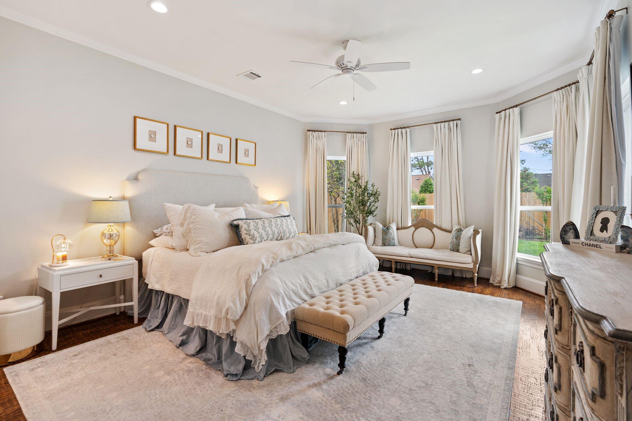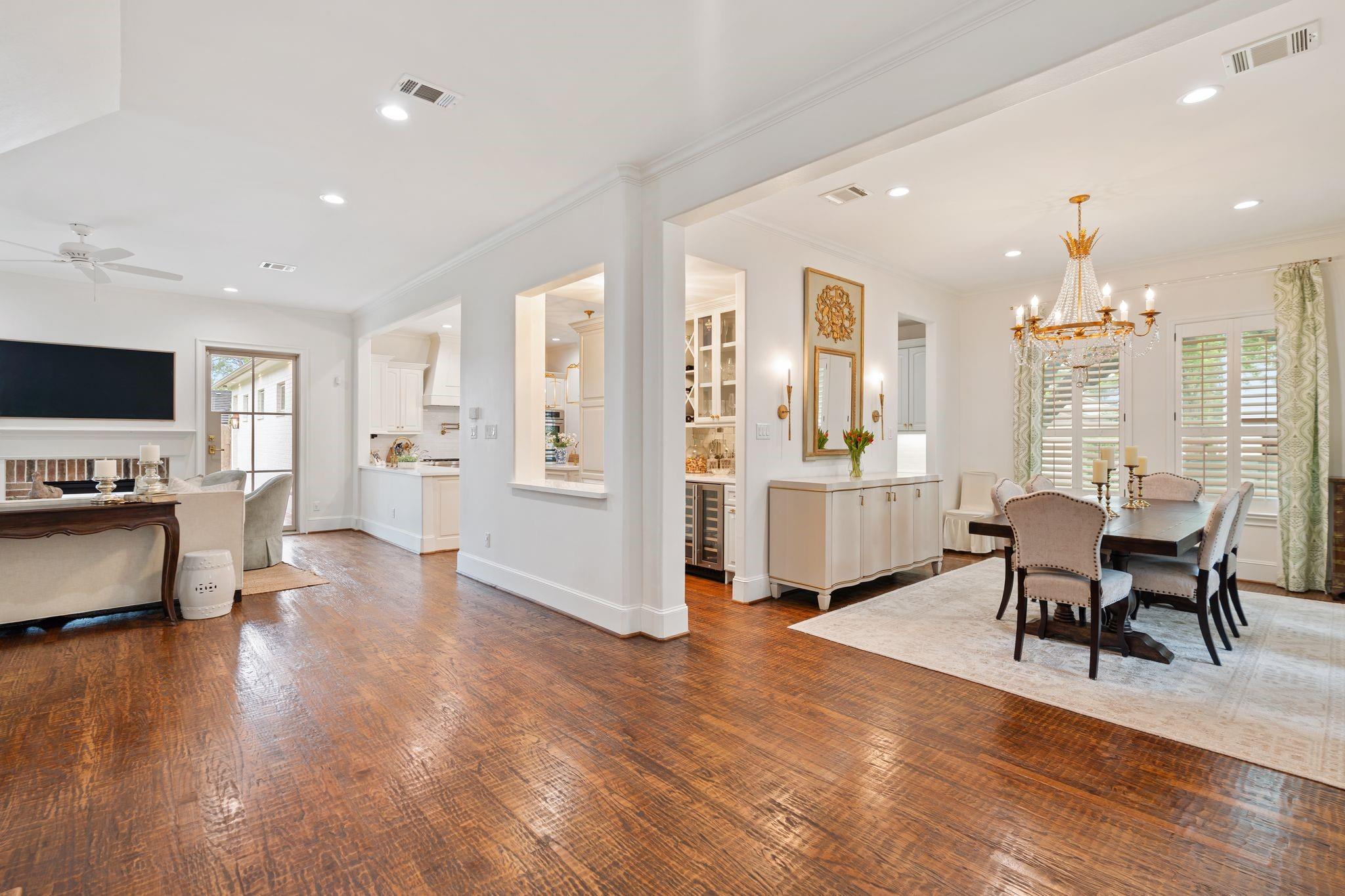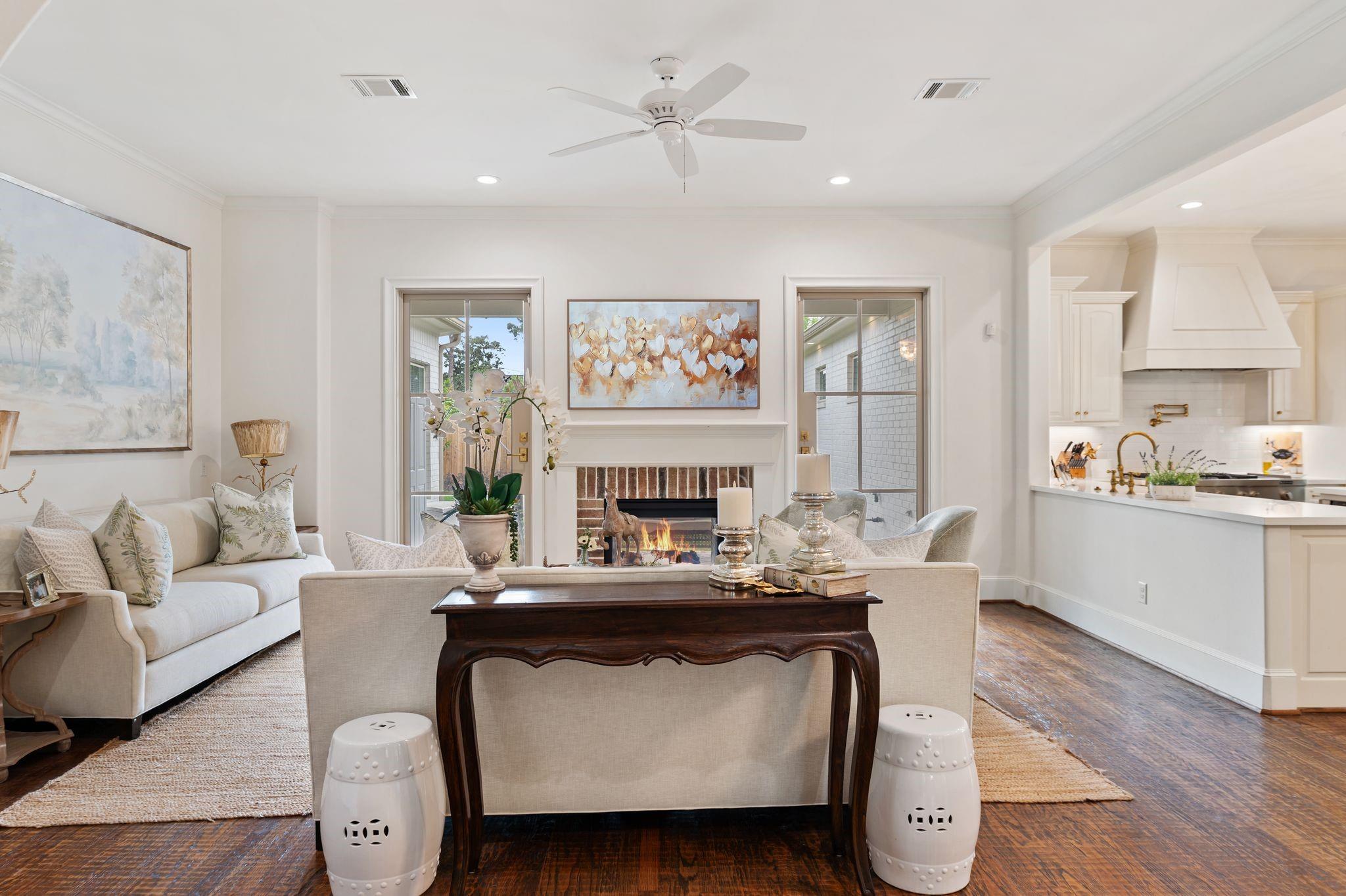 Fully reimagined Memorial home with designer finishes and a rare, functional layout. This 5-bedroom, 4.5-bath home features hand-scraped hardwoods, custom lighting, and a completely renovated kitchen with quartz countertops, new cabinetry, double ovens, warming drawer, and a pot filler- opening to the living area with a striking two-way fireplace and iron patio doors. Primary suite and secondary bedroom with ensuite bath located downstairs. Upstairs offers additional bedrooms, a game room with custom built-ins and a kitchenette, plus a study. Coffee bar, custom pantry, and dry bar with wine fridge enhance both everyday living and entertaining. Extensive interior and exterior updates throughout, including landscaping, lighting, fencing, and a redesigned patio. Move-in ready in a prime Memorial location.
