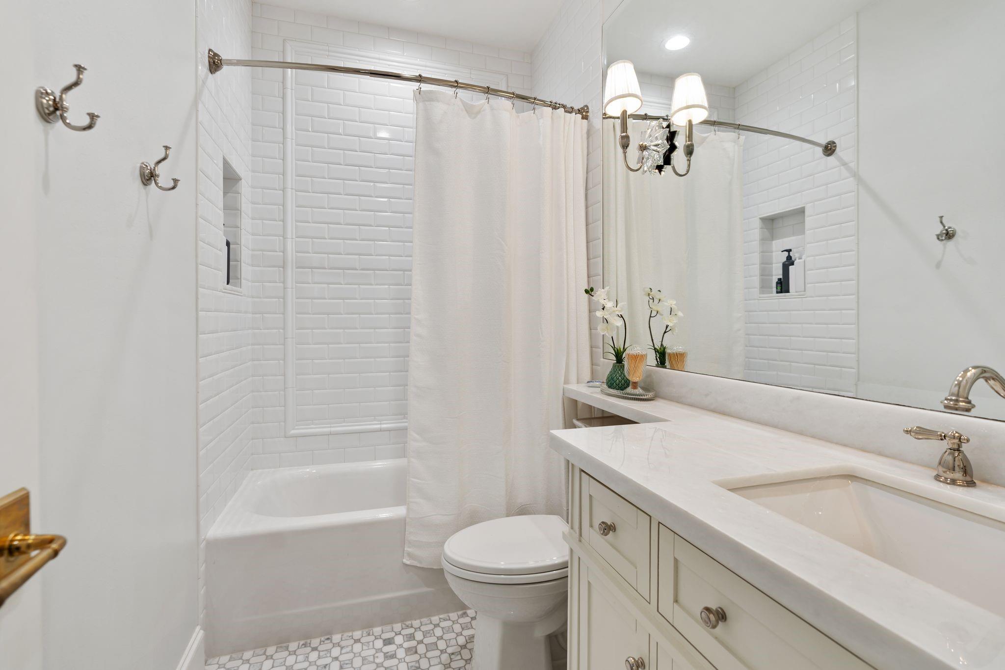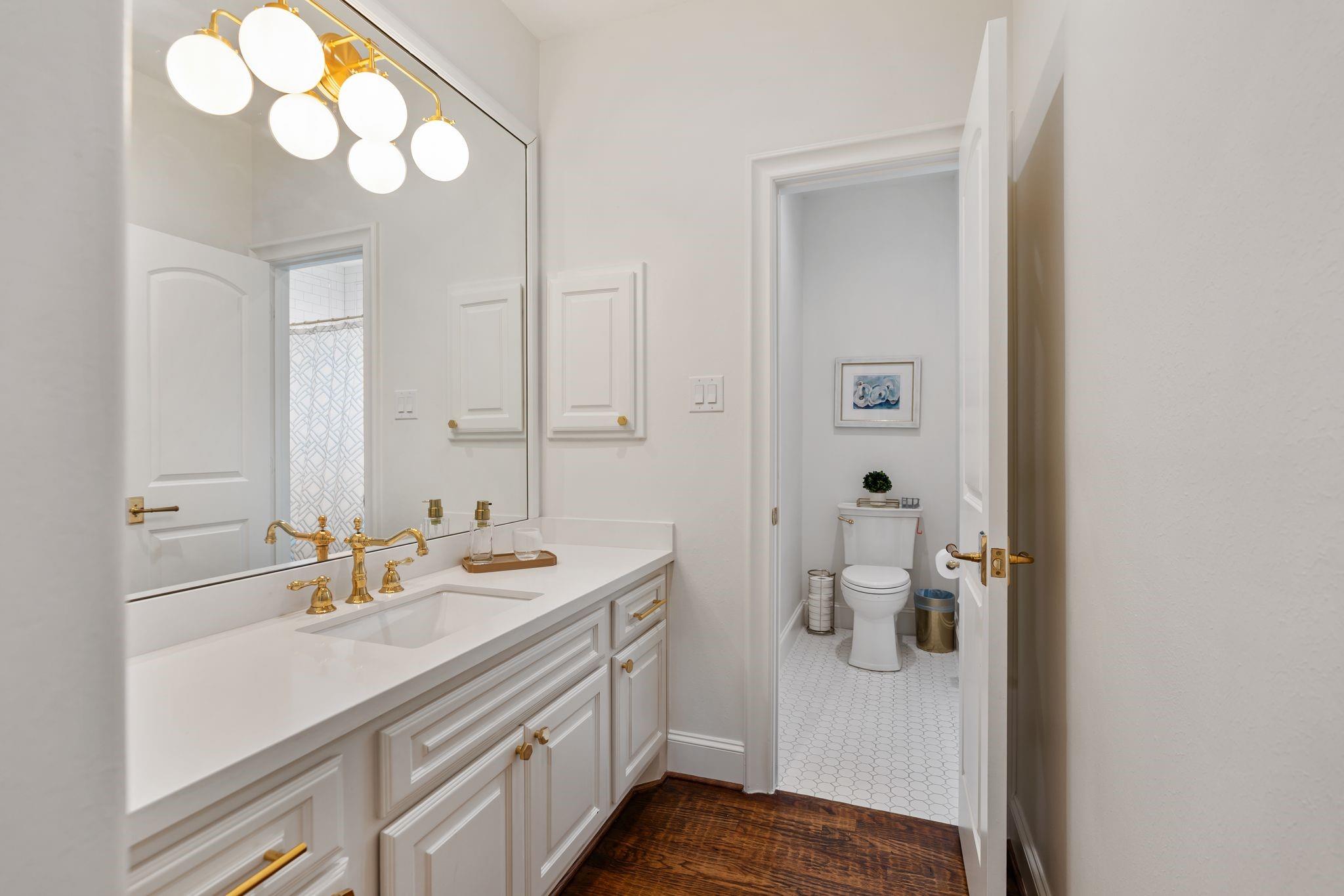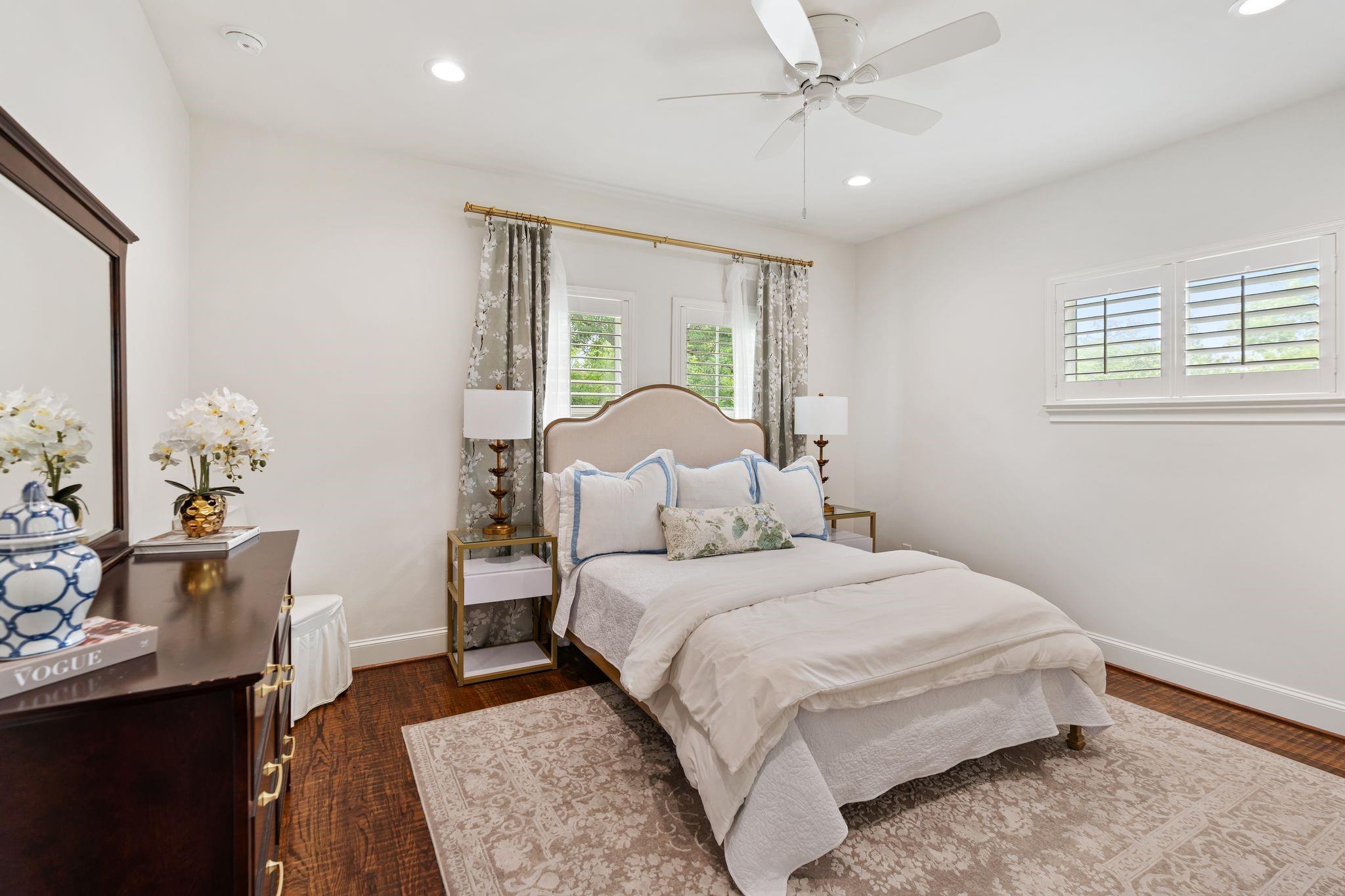 Fully reimagined Memorial home with designer finishes and a rare, functional layout. This 5-bedroom, 4.5-bath home features hand-scraped hardwoods, custom lighting, and a completely renovated kitchen with quartz countertops, new cabinetry, double ovens, warming drawer, and a pot filler- opening to the living area with a striking two-way fireplace and iron patio doors. Primary suite and secondary bedroom with ensuite bath located downstairs. Upstairs offers additional bedrooms, a game room with custom built-ins and a kitchenette, plus a study. Coffee bar, custom pantry, and dry bar with wine fridge enhance both everyday living and entertaining. Extensive interior and exterior updates throughout, including landscaping, lighting, fencing, and a redesigned patio. Move-in ready in a prime Memorial location.
