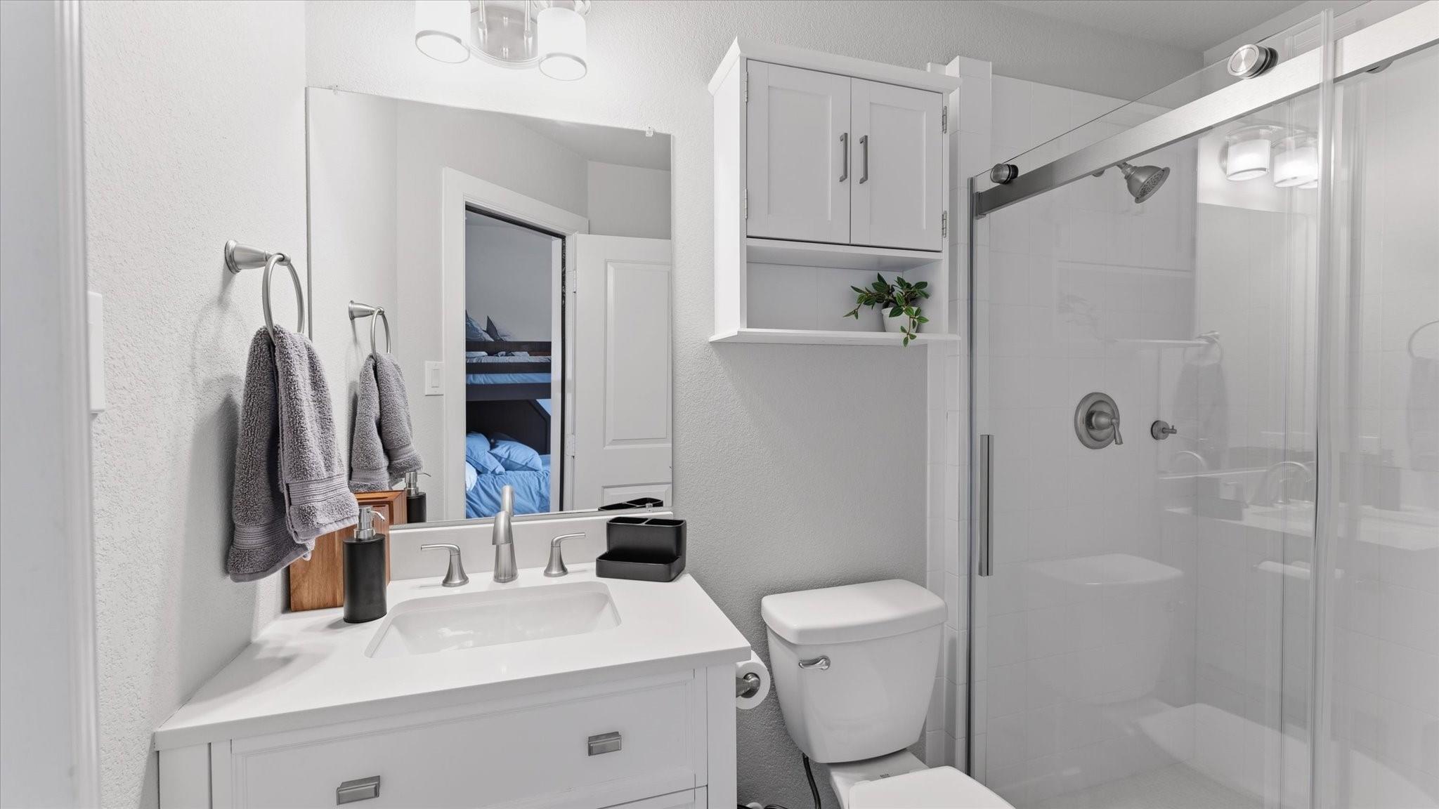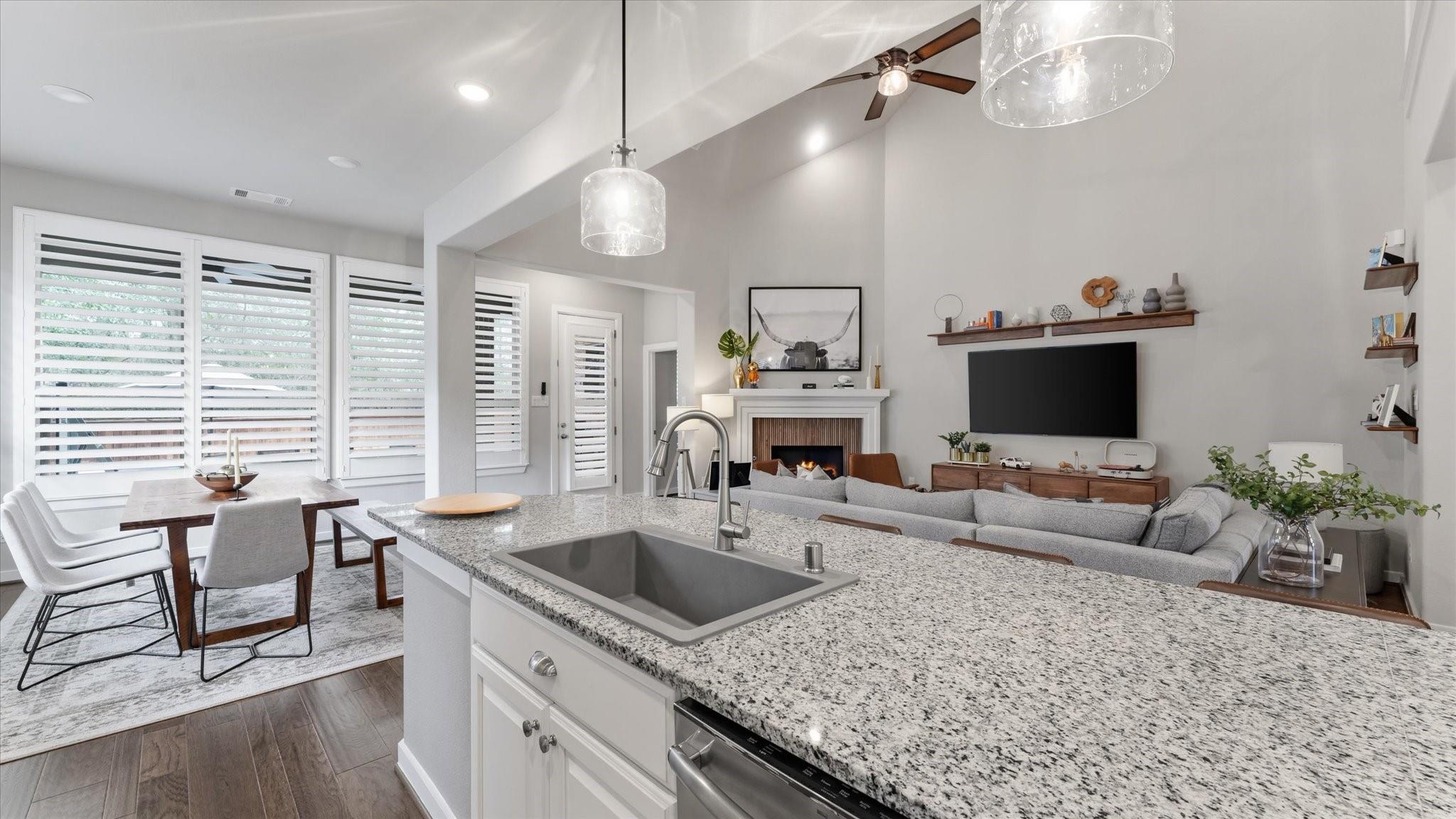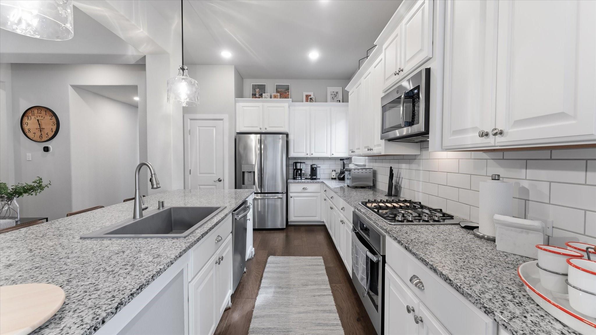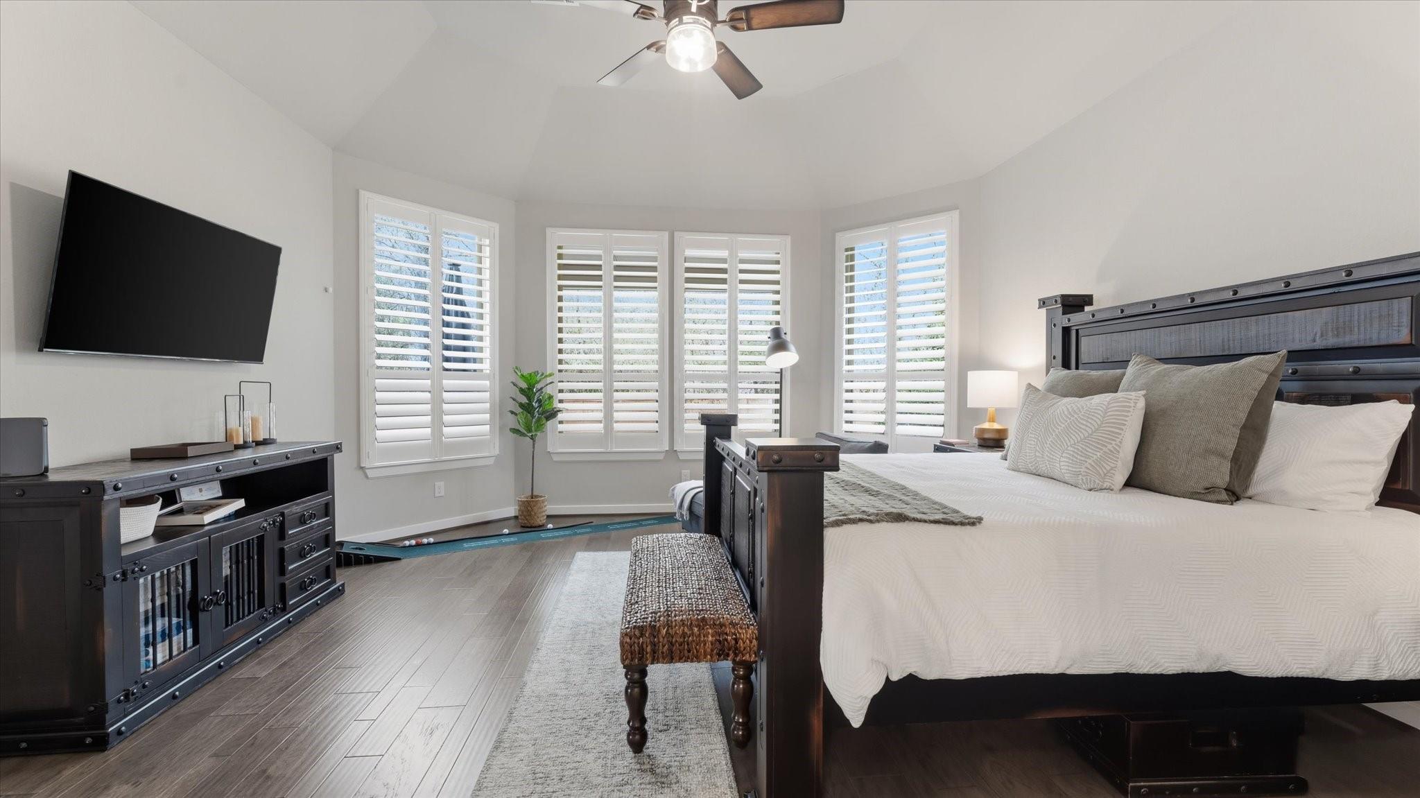 POOL HOME IN GATED WOODFOREST Located within a PRIVATE GATED SECTION of the highly sought-after master-planned community of Woodforest, this like-new 5-bedroom, 4.5-bathroom home blends style, function & resort-style living. Inside, you’ll find soaring ceilings, rich wood flooring, and an open-concept layout designed for everyday living and entertaining. The primary suite & a secondary bedroom with full bath are conveniently located downstairs, ideal for guests or multi-generational living. The chef’s kitchen features granite countertops, ss appliances & generous prep space overlooking the main living area. The spacious primary retreat offers a spa-like ensuite w/ dual vanities, soaking tub, custom walk-in shower & large walk-in closet. Upstairs includes additional bedrooms & a game room. Step outside to your private backyard oasis with a covered patio & Pool & spa — perfect for relaxing or entertaining. Enjoy golf, trails, parks & resort-style amenities.