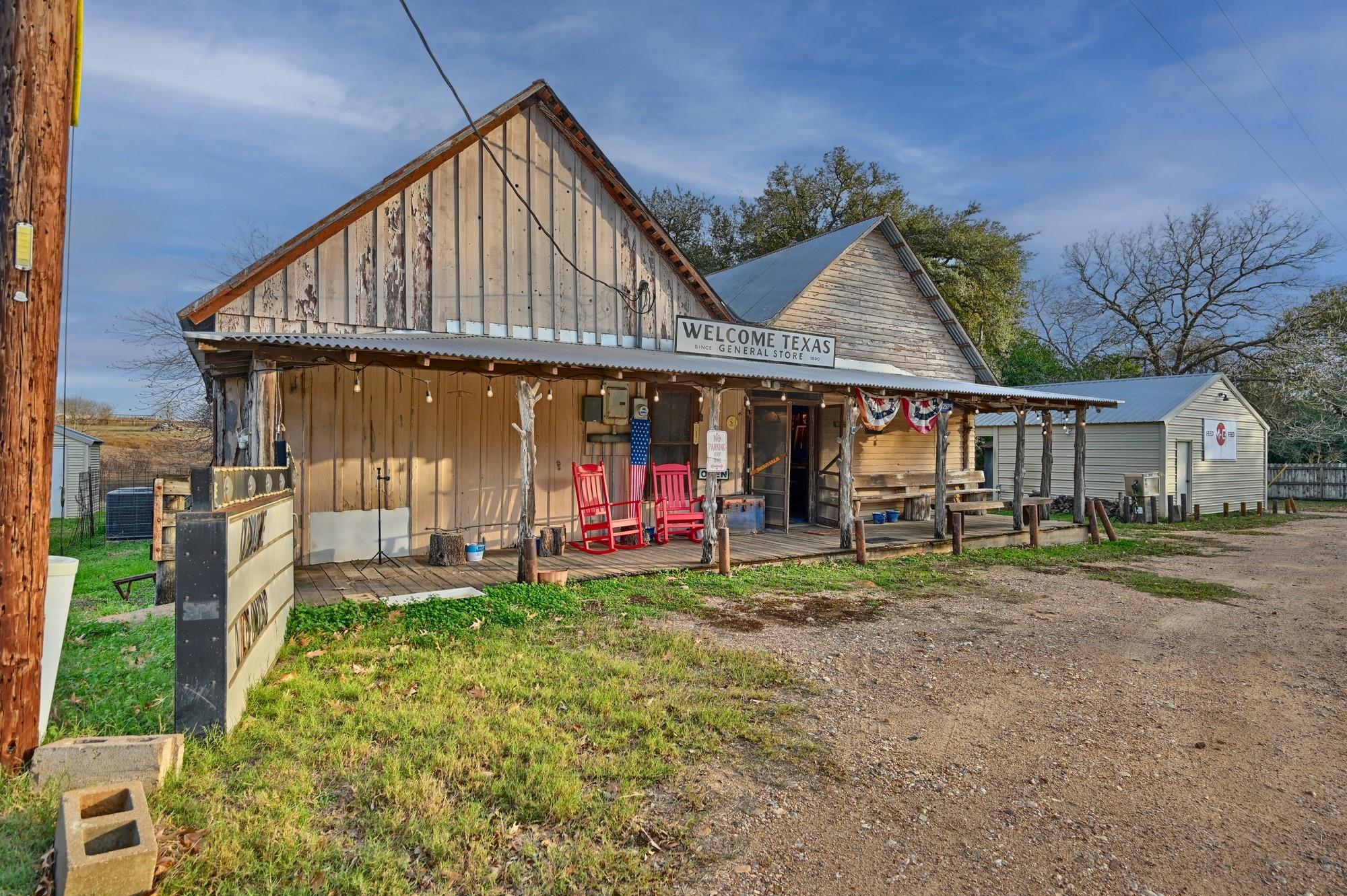 The Welcome General Store has been the heartbeat of this little Texas town for over a century. It first opened in 1890 as a grocery and general store and has turned into one of the most well-loved gathering spots around. Doors are still open! Locals and travelers alike stop in for good company, live music, karaoke, bingo, and a cold drink under the big oak out front. Inside the 2,758 sq. ft. building, you’ll find original charm mixed with everything you need to keep it running strong. There’s a full kitchen, bar, small stage, shuffleboard, and plenty of room for folks to sit and stay awhile. Outside, the 1.224-acre property offers a big open space for gatherings, a metal storage building, and lots of parking. Set along FM 109 between Industry and Brenham and just a short drive from Fayetteville and Round Top. This location couldn’t be better. Whether you see it as a coffee stop, BBQ joint, wine bar, or antique store, the Welcome General Store is ready for its next chapter.