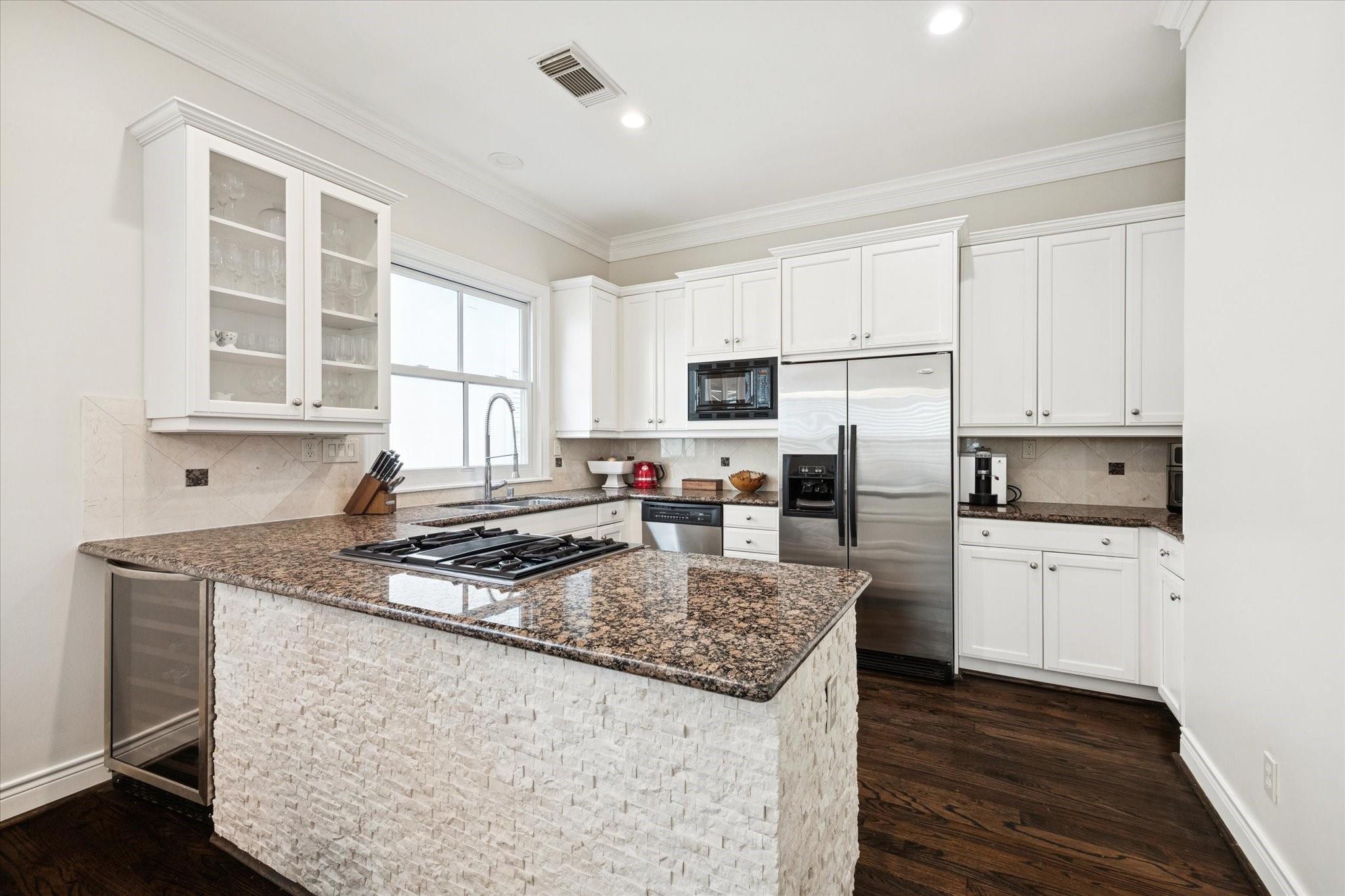 InteriorFireplace:1/Wood Burning FireplaceFloors:Carpet,Tile,WoodCountertop:GraniteBathroom Description:Full Secondary Bathroom Down,Half Bath,Primary Bath: Double Sinks,Primary Bath: Jetted Tub,Primary Bath: Separate Shower,Secondary Bath(s): Shower Only,Secondary Bath(s): Tub/Shower Combo,Vanity AreaBedroom Desc:1 Bedroom Down - Not Primary BR,2 Bedrooms Up,Primary Bed - 3rd Floor,Walk-In ClosetKitchen Desc:Breakfast Bar,PantryRoom Description:1 Living Area,Family Room,Formal Dining,Living Area - 2nd Floor,Utility Room in HouseHeating:Central GasCooling:Central ElectricWasher/Dryer Conn:YesDishwasher:YesDisposal:YesMicrowave:YesRange:Gas RangeOven:Freestanding Oven,Gas Oven,Single OvenAppliances:Electric Dryer Connection,Gas Dryer ConnectionsEnergy Feature:Ceiling FansInterior:Crown Molding,Elevator,Fire/Smoke Alarm,High Ceiling,Prewired for Alarm System,Refrigerator Included,Split Level,Vaulted Ceiling,Window Coverings,Wine/Beverage Fridge,Wired for Sound