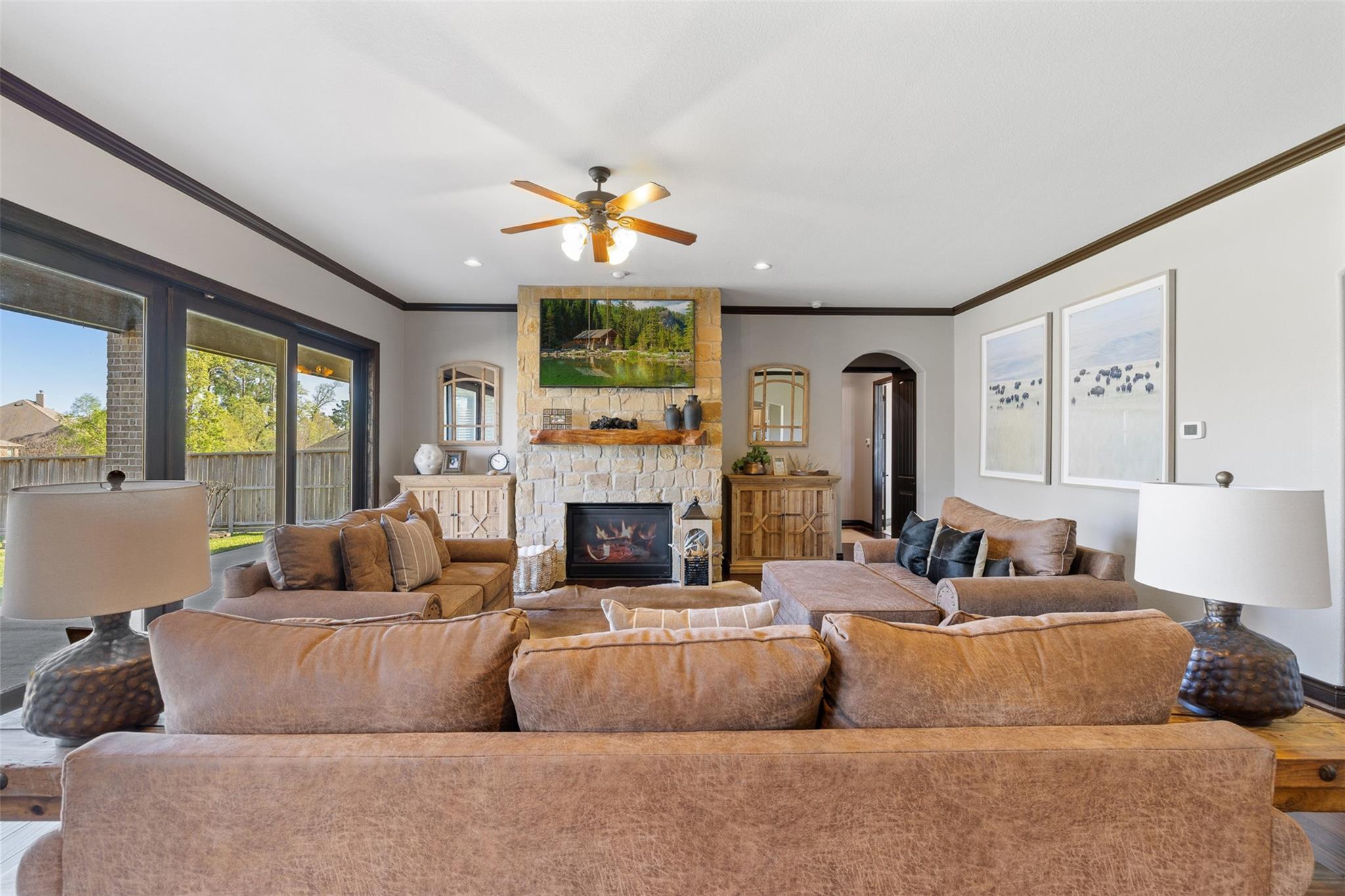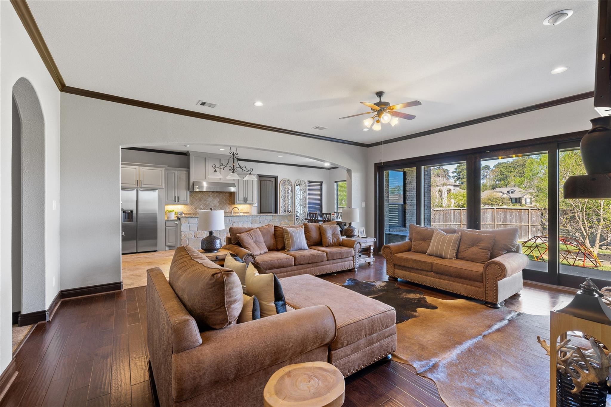 Welcome to 12606 Mostyn Ct, a spacious and elegant residence nestled in the sought-after Mostyn Manor subdivision of Magnolia, Texas. Sitting on one of the biggest lots in the neighborhood, this impressive home offers five generously sized bedrooms, providing ample space for family and guests, as well as four and a half bathrooms. Built in 2013, this home combines modern amenities with classic charm. The expansive floor plan includes multiple living areas, ideal for both entertaining and everyday living. The gourmet kitchen features high-end appliances, ample counter space, and a functional layout for the home chef. The master suite serves as a private retreat, complete with a luxurious en-suite bathroom and generous closet space. Additional bedrooms are spacious and versatile, accommodating various needs. Also, a brand new A/C unit for downstairs!