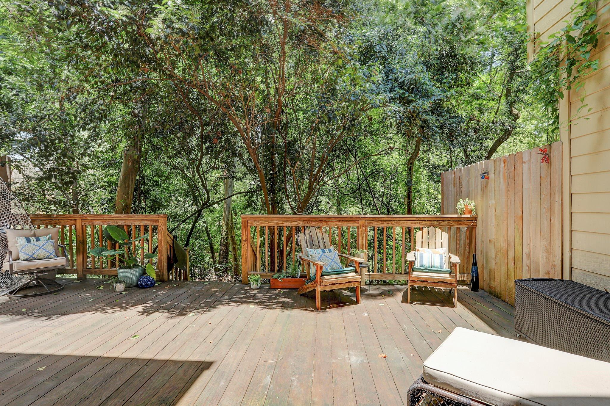 Beautifully renovated 3-bedroom townhome with flex study and 2.5 baths in the Memorial area, zoned to Spring Branch ISD. Gated community with 24-hour manned security and a 2-car attached garage. Open-concept kitchen features stainless steel appliances, quartz countertops, and glass subway tile backsplash, open to dining and living areas. Living room offers a gas fireplace and opens to a nice deck with privacy and great views. Upstairs, spacious primary suite includes built-ins, a sitting area, a second gas fireplace, and tranquil tree-top views. Spa-like primary bath boasts double sinks, large shower, built-ins, and a large walk-in closet. Skylit study plus two additional bedrooms and full bath complete the upstairs. Close to CityCentre, Terry Hershey Park, Memorial City Mall, and premier shopping and dining.