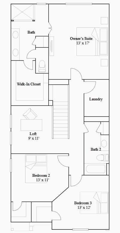 Second FloorBedroom:13x11Bedroom 2:13x12Extra Room:9x11Utility Room:2nd