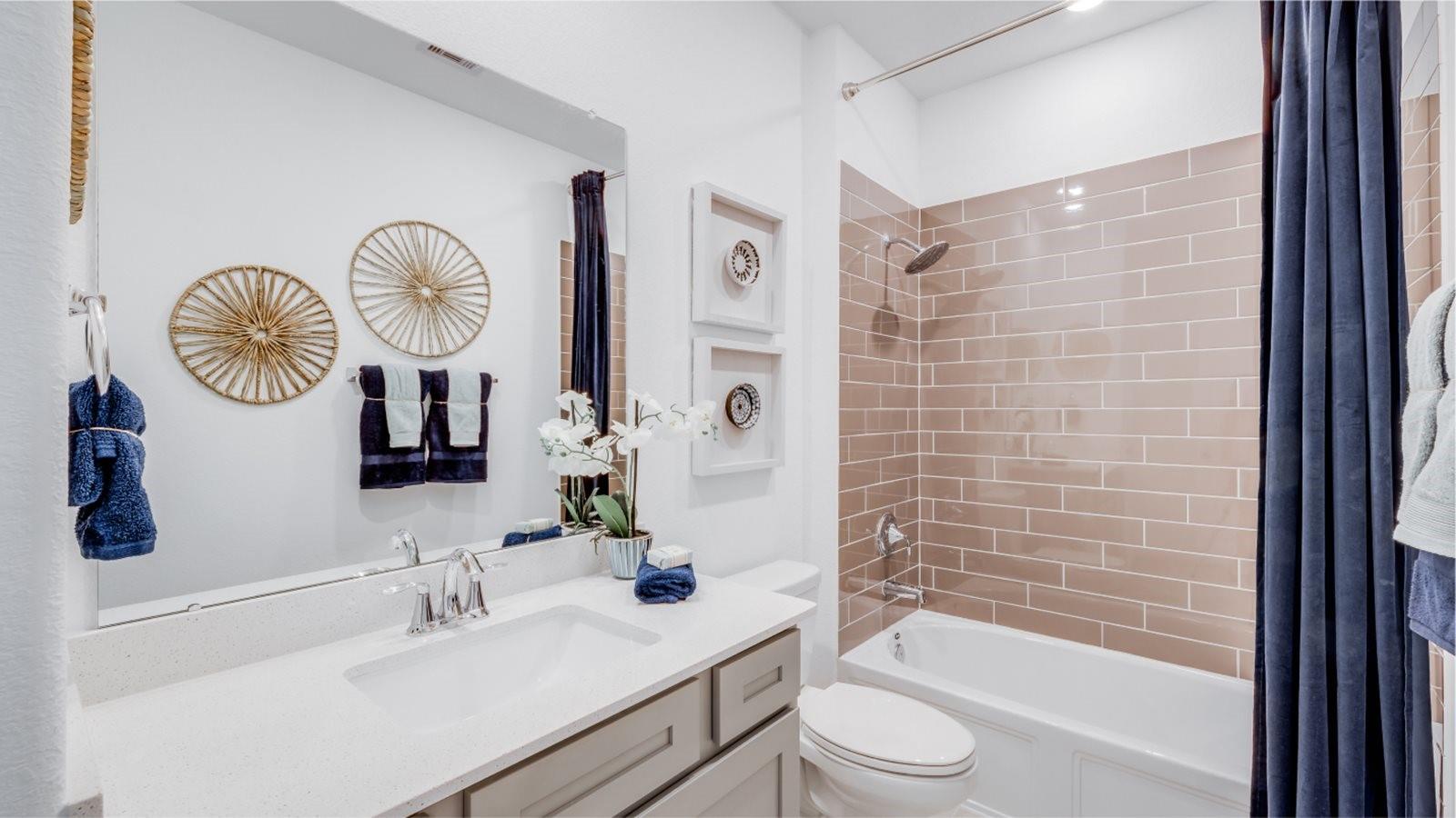 **BRAND NEW LENNAR URBAN VILLAS IN BRIDGELAND** The wonderful two-story Patton II-CB floorplan from Lennar showcases an open first floor living space that includes a family room and an adjoining casual dining room that flows into the kitchen. Upstairs boasts two secondary bedrooms with walk-in closets and a shared full bathroom. The owner’s suite highlights a private bathroom with dual sinks.