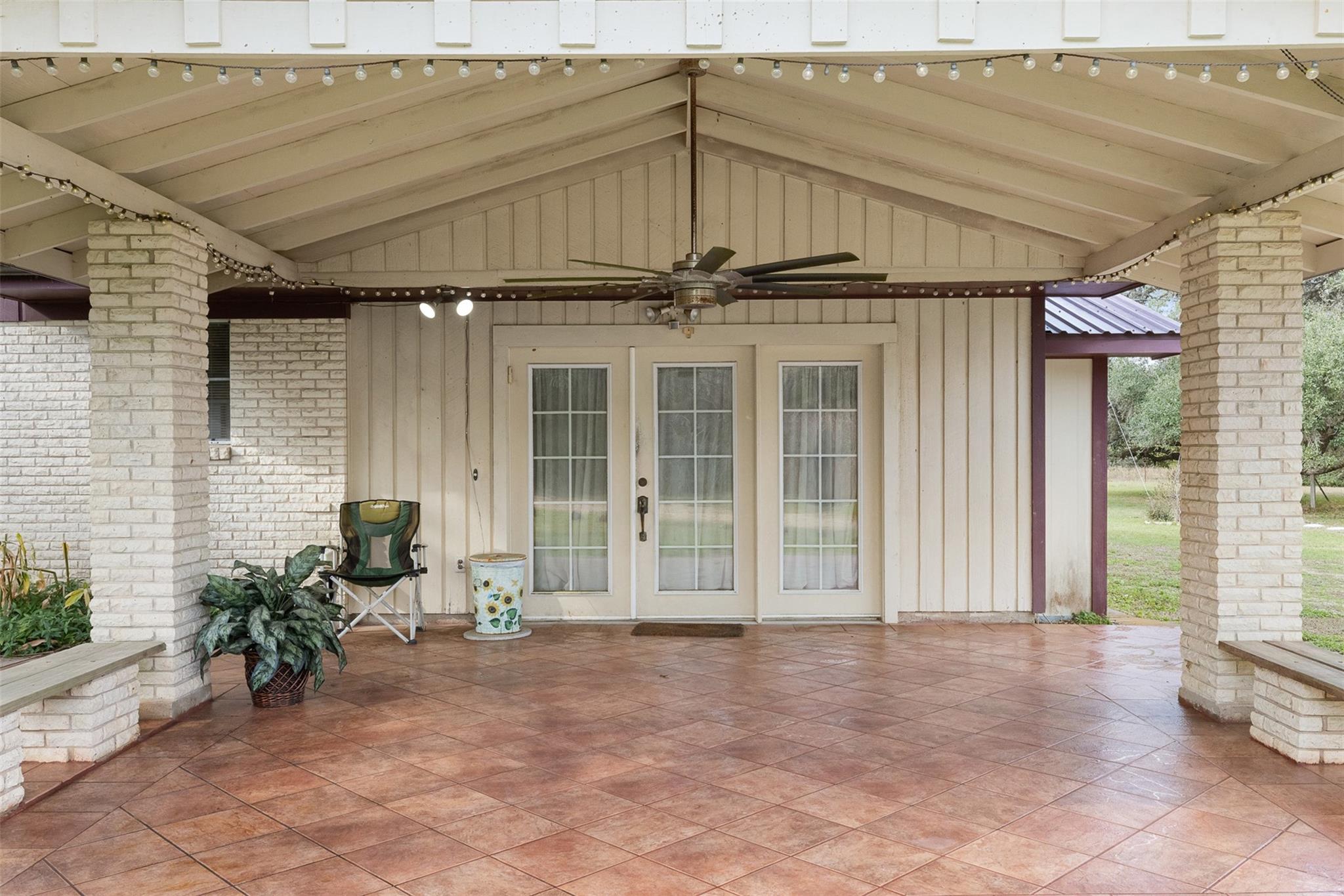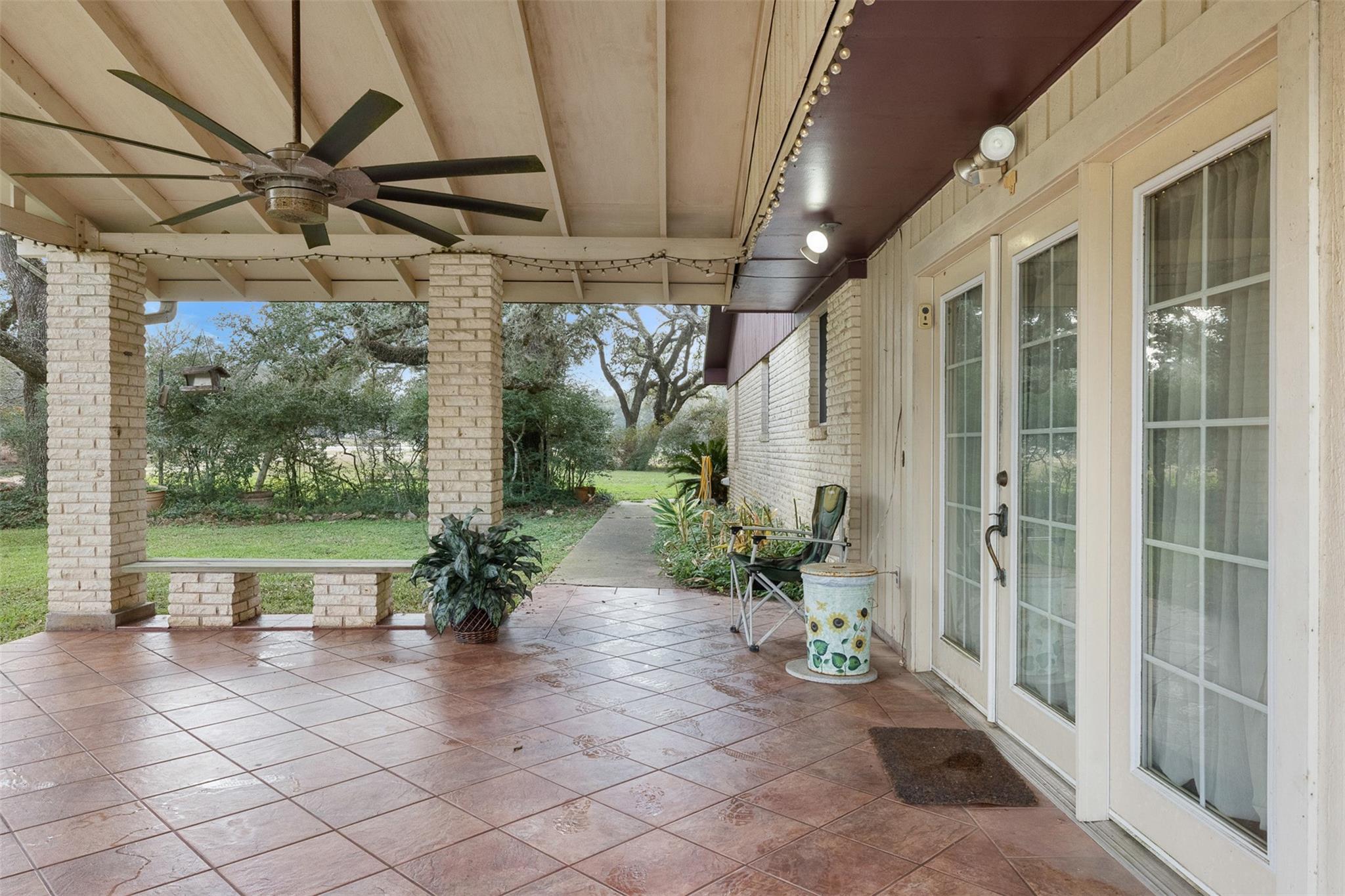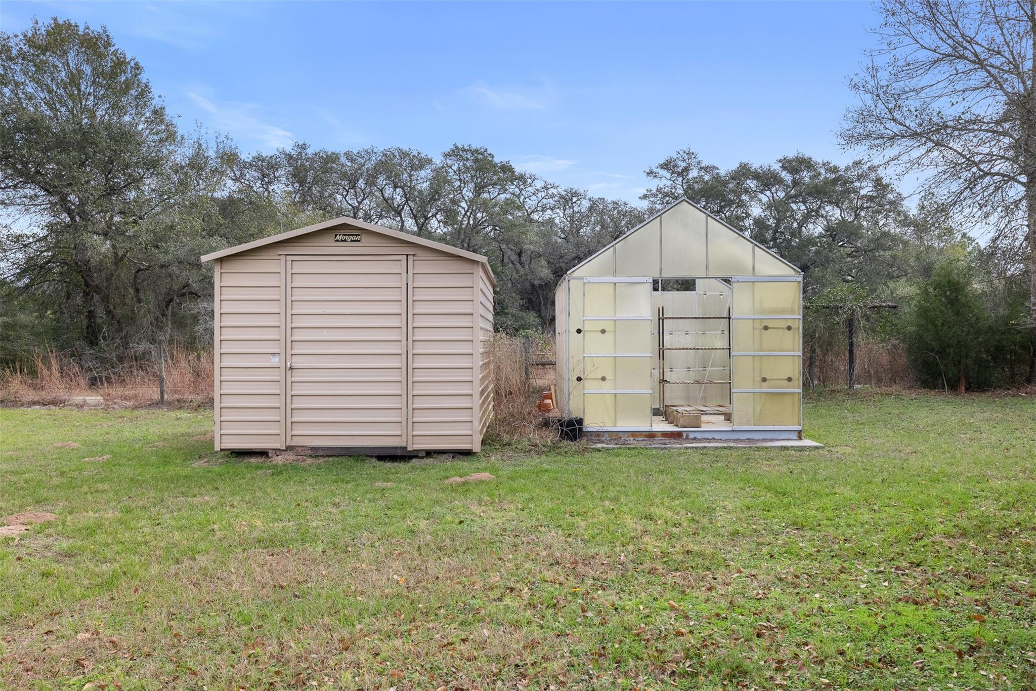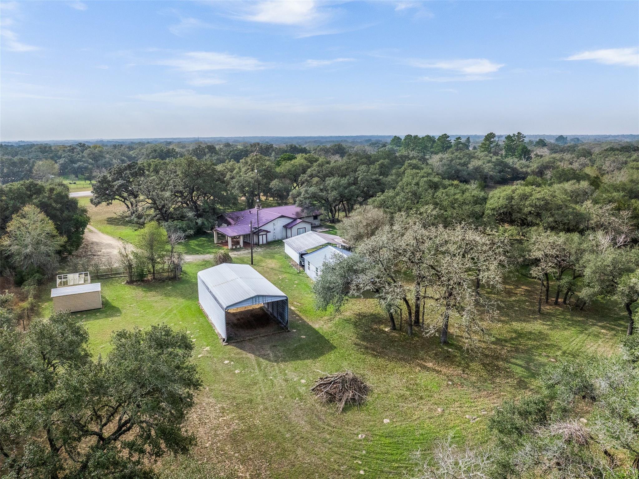 Enjoy country living in this spacious brick 4-bedroom (possible 5-bedroom flex room), 3-bath home situated on approx.3.461 acres, just 1.5 miles west of Sheridan, TX—home of the popular Splashway Water Park. Home offers approx. 2,961 SF (per seller) w/plenty of room to spread out. Recent updates include granite countertops, partial flooring, & updated appliances, w/frig conveying w/home. The versatile floor plan features a living area, den, spacious kitchen w/abundant cabinetry, dining area, & flex room. Outside, the property truly shines with ample parking, storage, & workspace options, including two-car garage (approx. 20’ x 22’),Carport for up to three vehicles (approx. 30’ x 26’), RV port (approx. 45’ x 24’) with 30-amp hookup and nearby water access, storage shed & greenhouse. Slab & electrical ready for your hot tub! All of this is nestled among beautiful live oak trees & lush landscaping. Call today to schedule your private showing & make this the year you move to