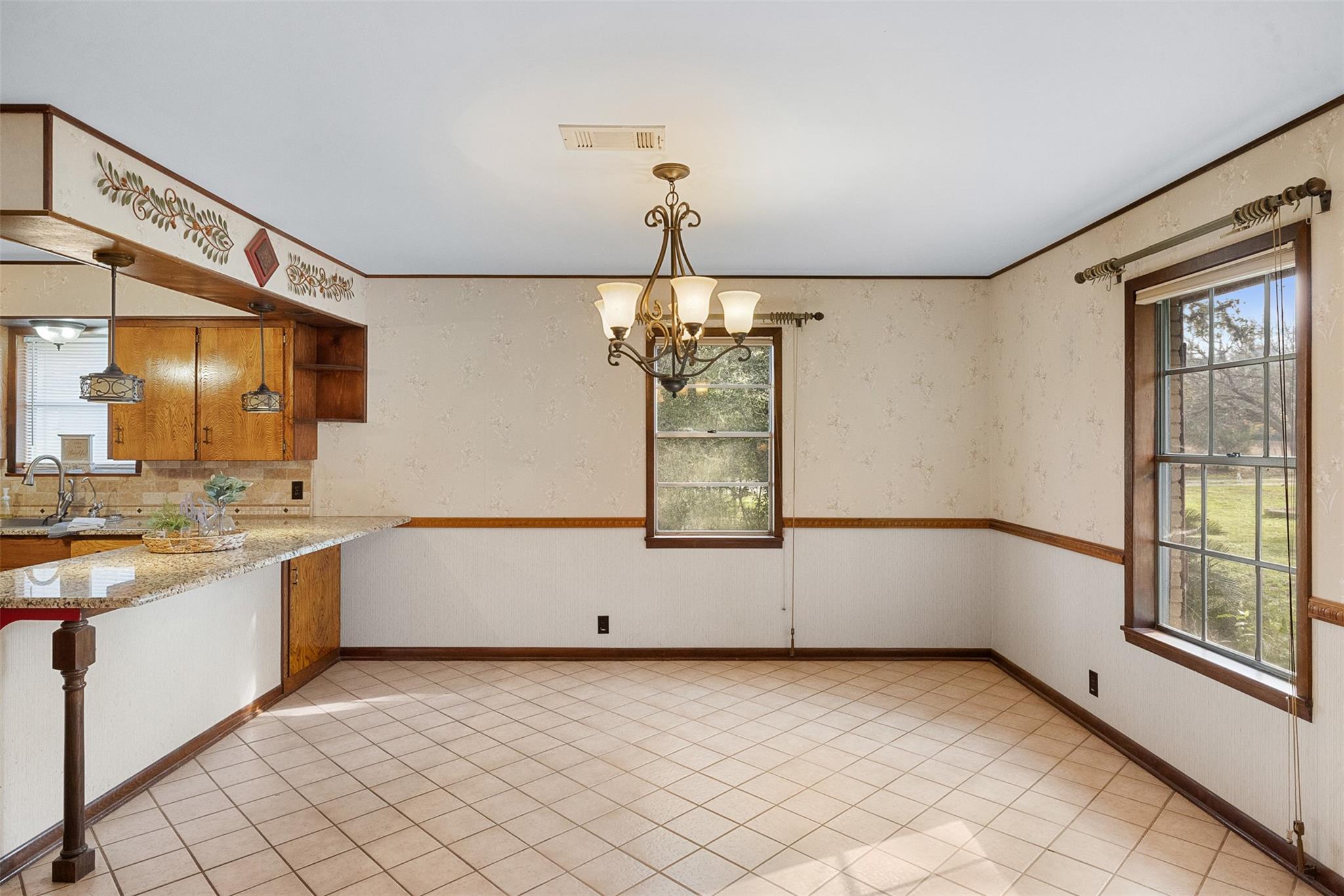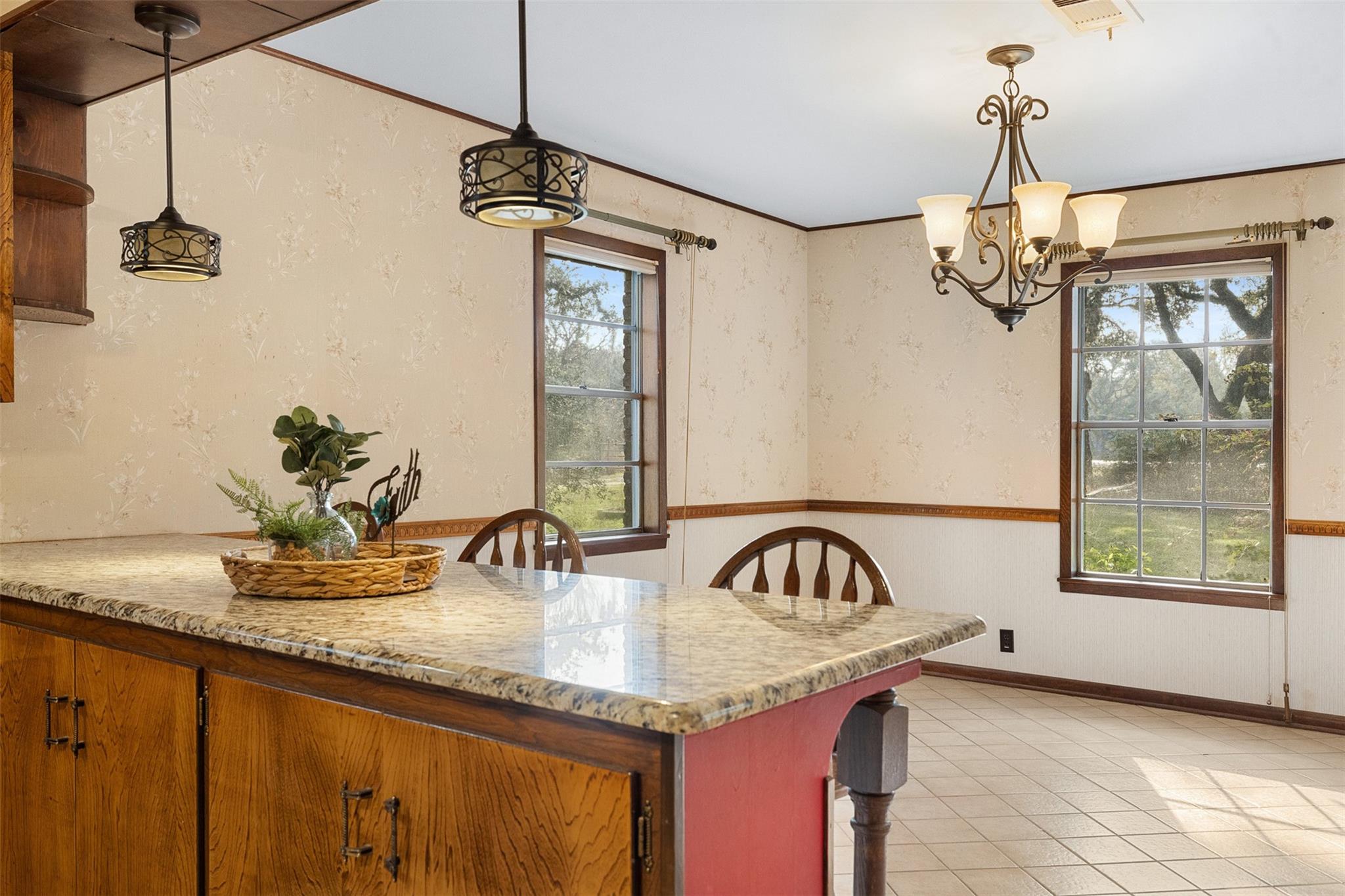 InteriorFireplace:1/Wood Burning FireplaceFloors:Laminate,Tile,Vinyl PlankCountertop:GraniteBathroom Description:Secondary Bath(s): Shower Only,Vanity AreaBedroom Desc:All Bedrooms DownKitchen Desc:Breakfast Bar,Kitchen open to Family Room,Pots/Pans Drawers,Reverse Osmosis,Under Cabinet Lighting,Walk-in PantryRoom Description:Den,Entry,Family Room,Formal Dining,Home Office/Study,Utility Room in HouseHeating:Central Electric,Heat Pump,Other HeatingCooling:Central Electric,Heat Pump,Other CoolingConnections:Electric Dryer Connections,Washer ConnectionsDishwasher:YesDisposal:NoCompactor:NoMicrowave:NoRange:Electric Cooktop,Freestanding RangeOven:Convection Oven,Electric Oven,Freestanding Oven,Single OvenIce Maker:NoEnergy Feature:Ceiling Fans,Digital Program Thermostat,High-Efficiency HVAC,HVAC>15 SEER,Insulation - Blown Cellulose,North/South ExposureInterior:Formal Entry/Foyer,Refrigerator Included,Water Softener - Owned,Window Coverings