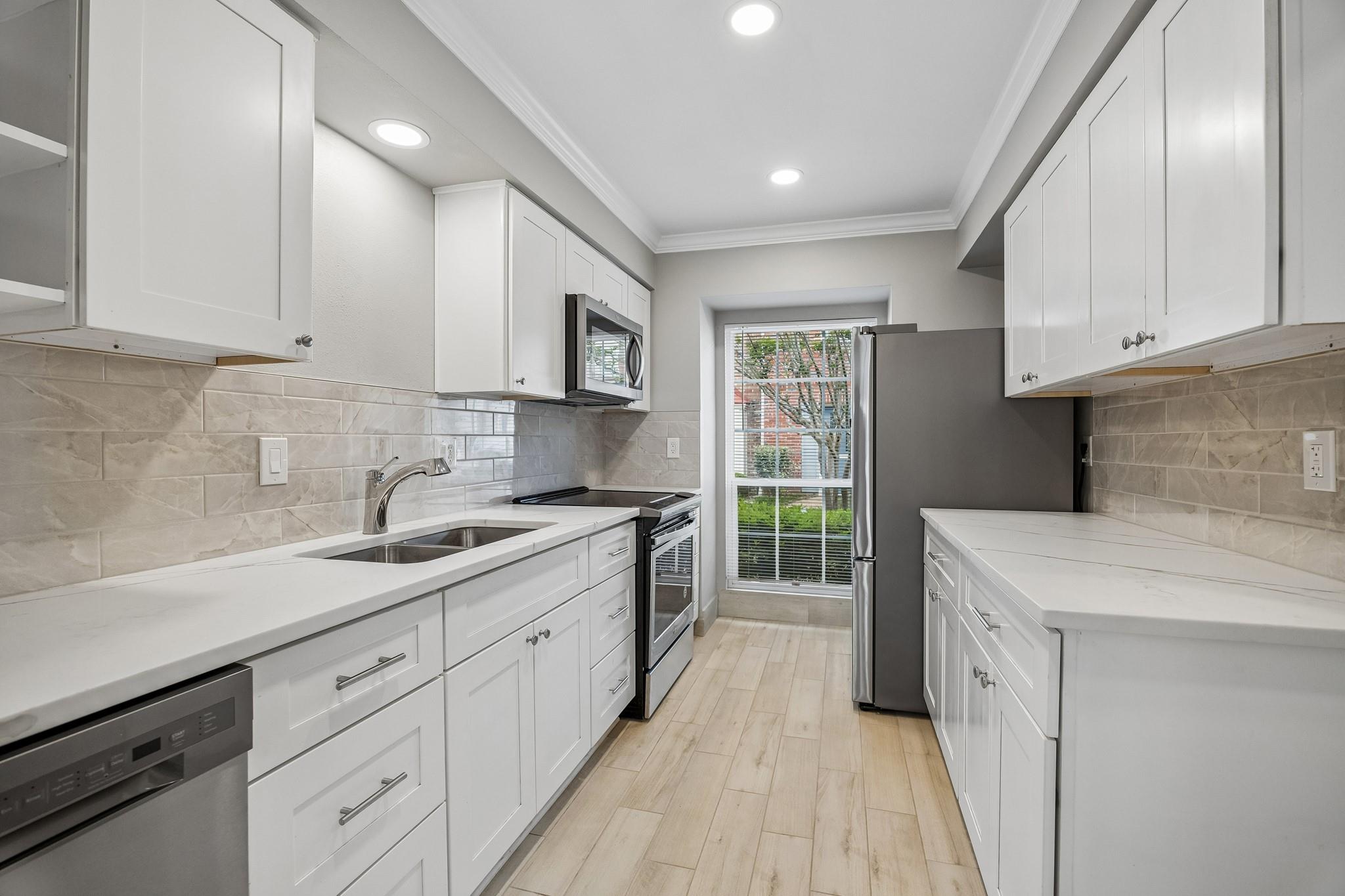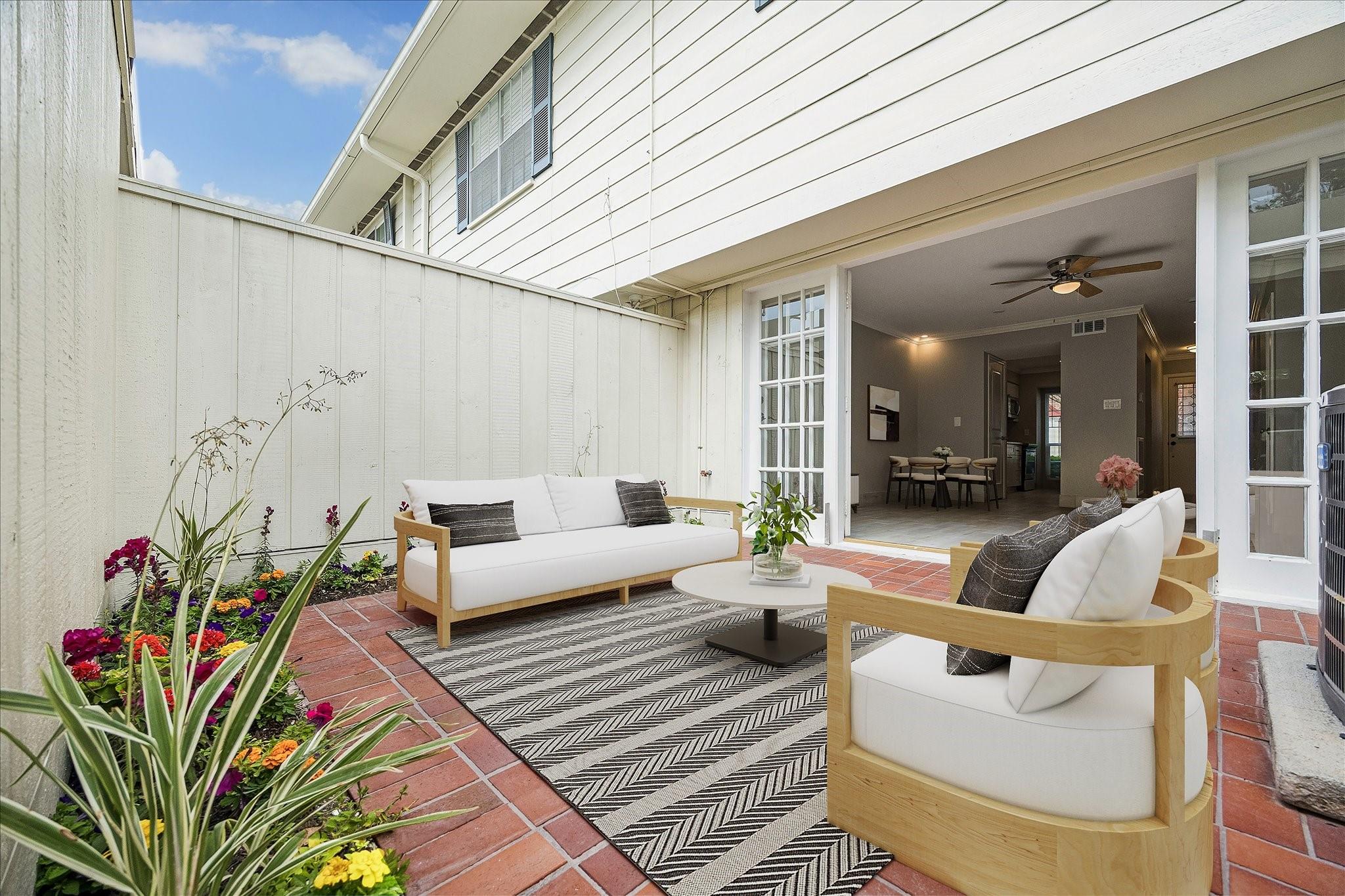 Stunning, Move-In Ready, Traditional 2 story Townhome-styled Condo beautifully renovated in Feb & March 2026. Located in coveted Memorial zoned to excellent SBISD schools & highlighted with fabulous upgrades wherever you look. Home includes quartz & granite countertops, glistening tile backsplash, stainless steel appliances (Refrigerator, Dishwasher, white stackable enclosed full size Washer & Dryer 2026). Gleaming tile floors down & desirable luxury vinyl plank floors up. Living area has abundant natural light & French doors lead to private fenced landscaped brick patio. Perfect for relaxing any time. Beautiful fully updated baths have upscale finishes. Plantation Shutters up. Lovely, landscaped community has sparkling pool, playground, & basketball court for relaxing weekends. Just minutes from Beltway 8 & I-10, wonderful shopping, premier dining in City Centre, Memorial City, & Town & Country, Memorial City Medical Center, & Terry Hershey Park Hike & Bike Trail. Make this gem yours!