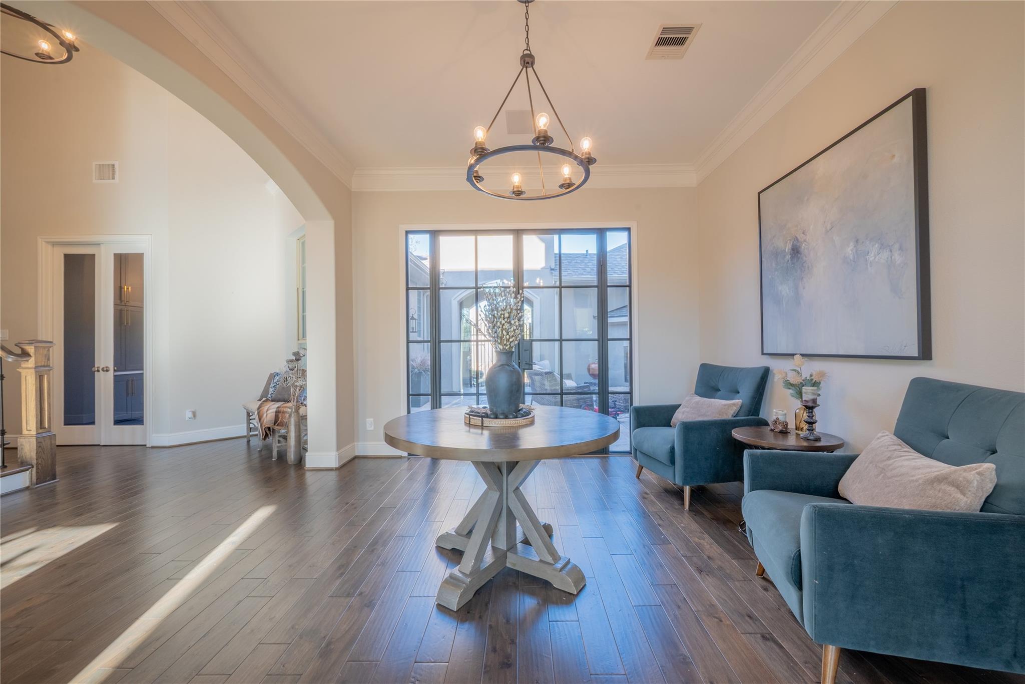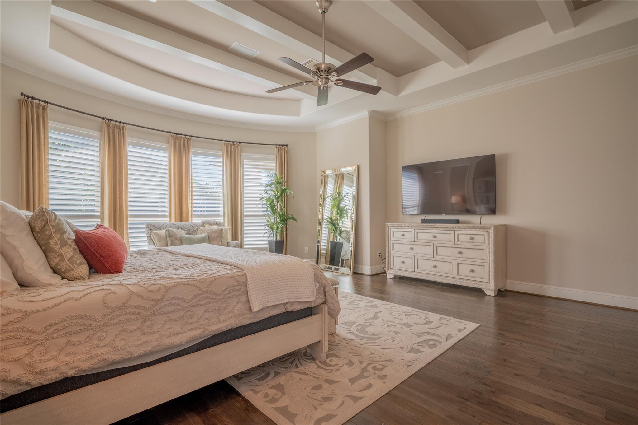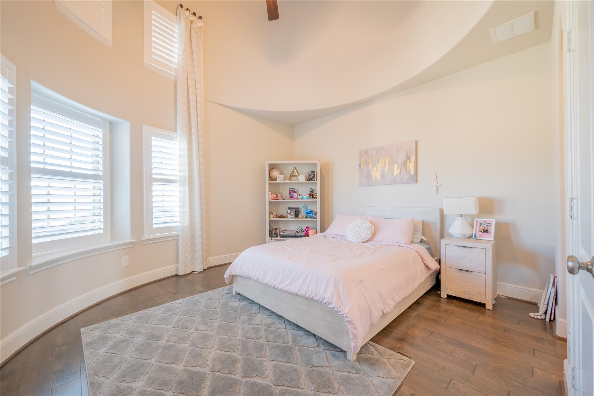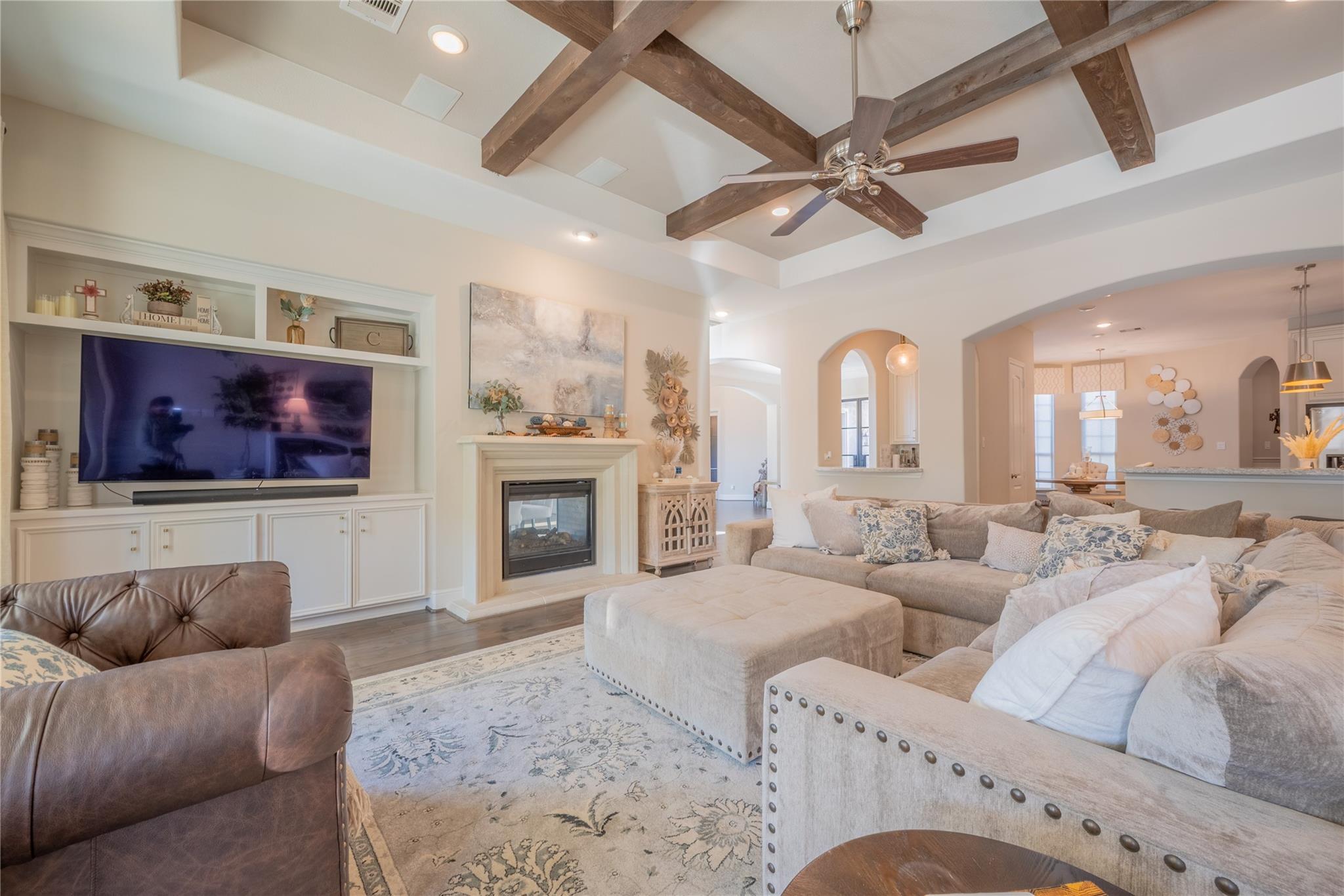 Welcome to this appointed former model home by Coventry Homes, nestled inside the gated and prestigious Bridle Creek community. From the moment you arrive, this exceptional residence impresses with its elegant design, thoughtful upgrades, and inviting spaces made for both everyday living and unforgettable entertaining. Built in 2017, this stunning 5-bedroom, 4-bathroom home offers 5,142 square feet of refined living space on an expansive 10,800 square foot lot. Inside, you’ll find rich hardwood floors, a private study, a bright breakfast area, and a dramatic spiral staircase that makes a lasting first impression. The gourmet kitchen is a chef’s dream, featuring quartz countertops, stainless steel appliances, and ample space to gather.