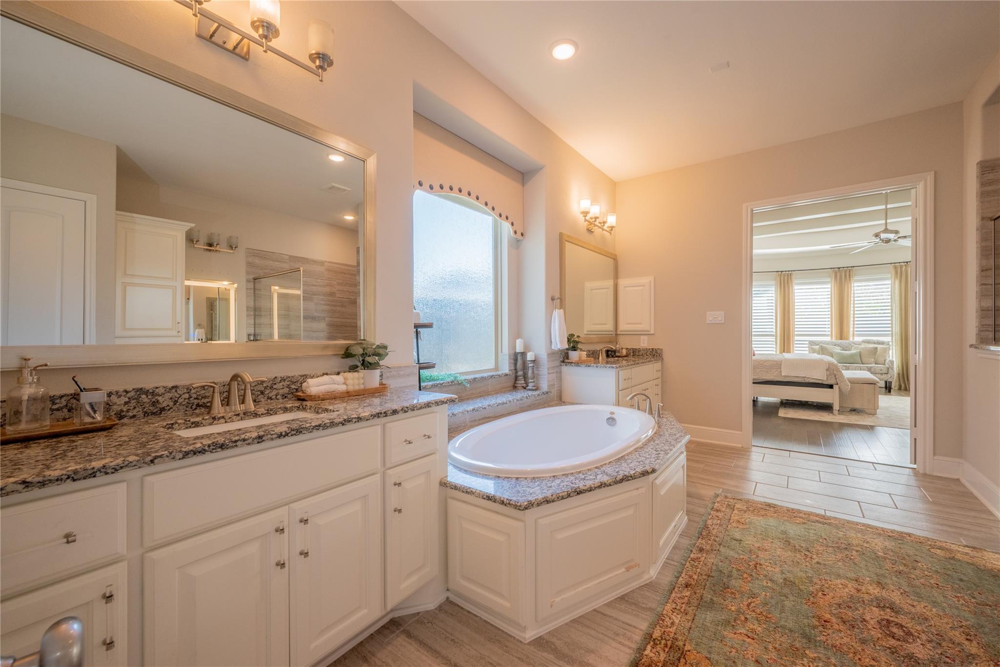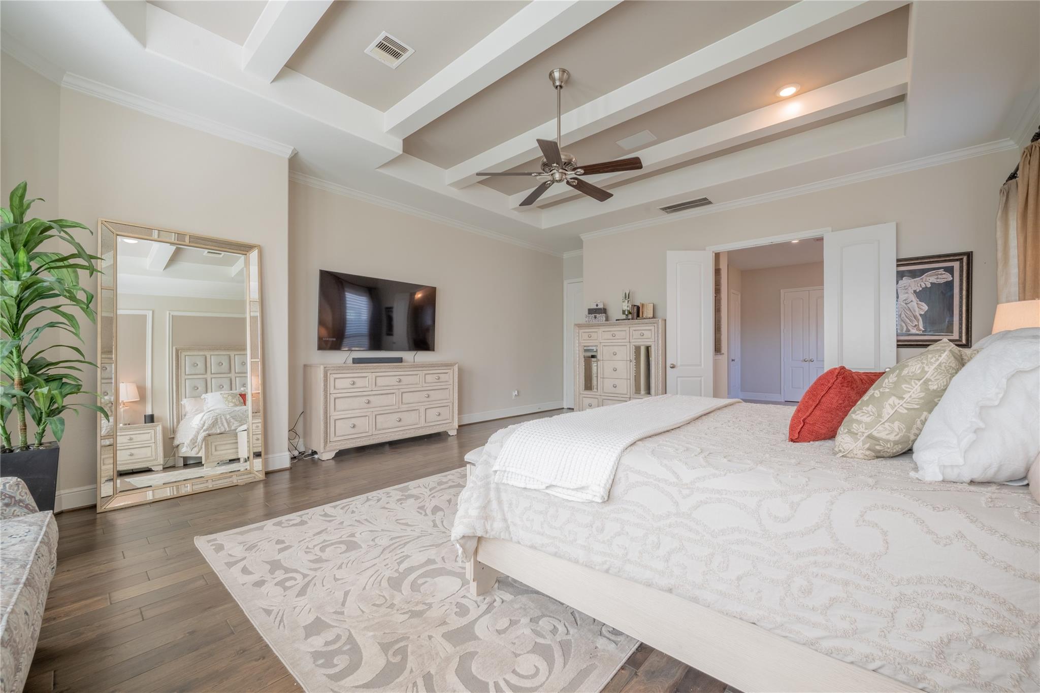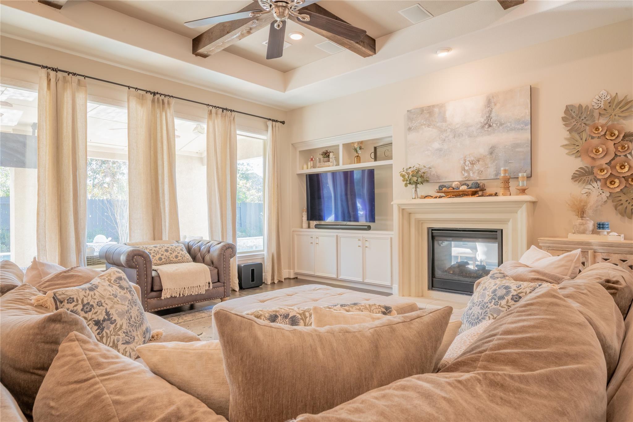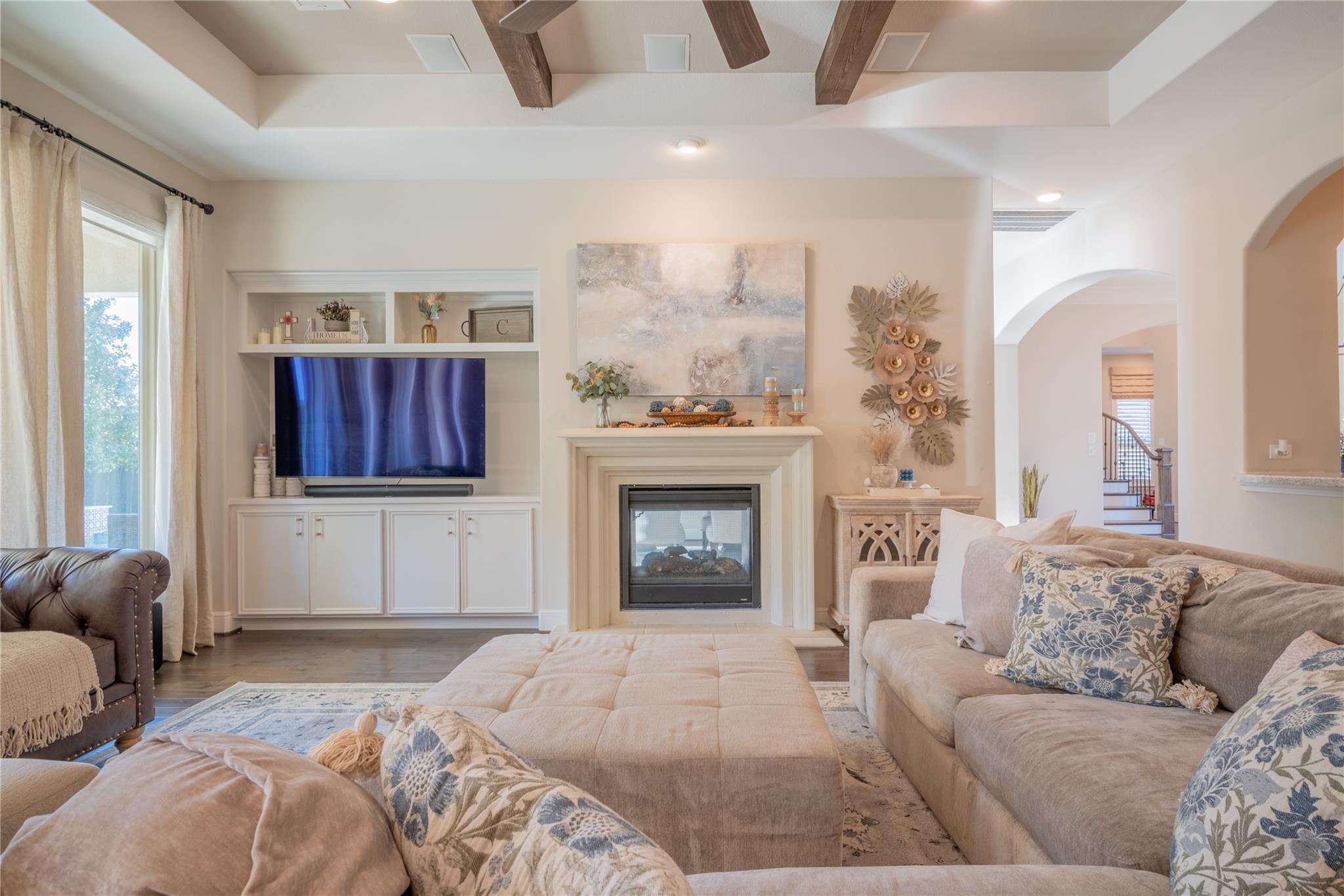 Welcome to this appointed former model home by Coventry Homes, nestled inside the gated and prestigious Bridle Creek community. From the moment you arrive, this exceptional residence impresses with its elegant design, thoughtful upgrades, and inviting spaces made for both everyday living and unforgettable entertaining. Built in 2017, this stunning 5-bedroom, 4-bathroom home offers 5,142 square feet of refined living space on an expansive 10,800 square foot lot. Inside, you’ll find rich hardwood floors, a private study, a bright breakfast area, and a dramatic spiral staircase that makes a lasting first impression. The gourmet kitchen is a chef’s dream, featuring quartz countertops, stainless steel appliances, and ample space to gather.