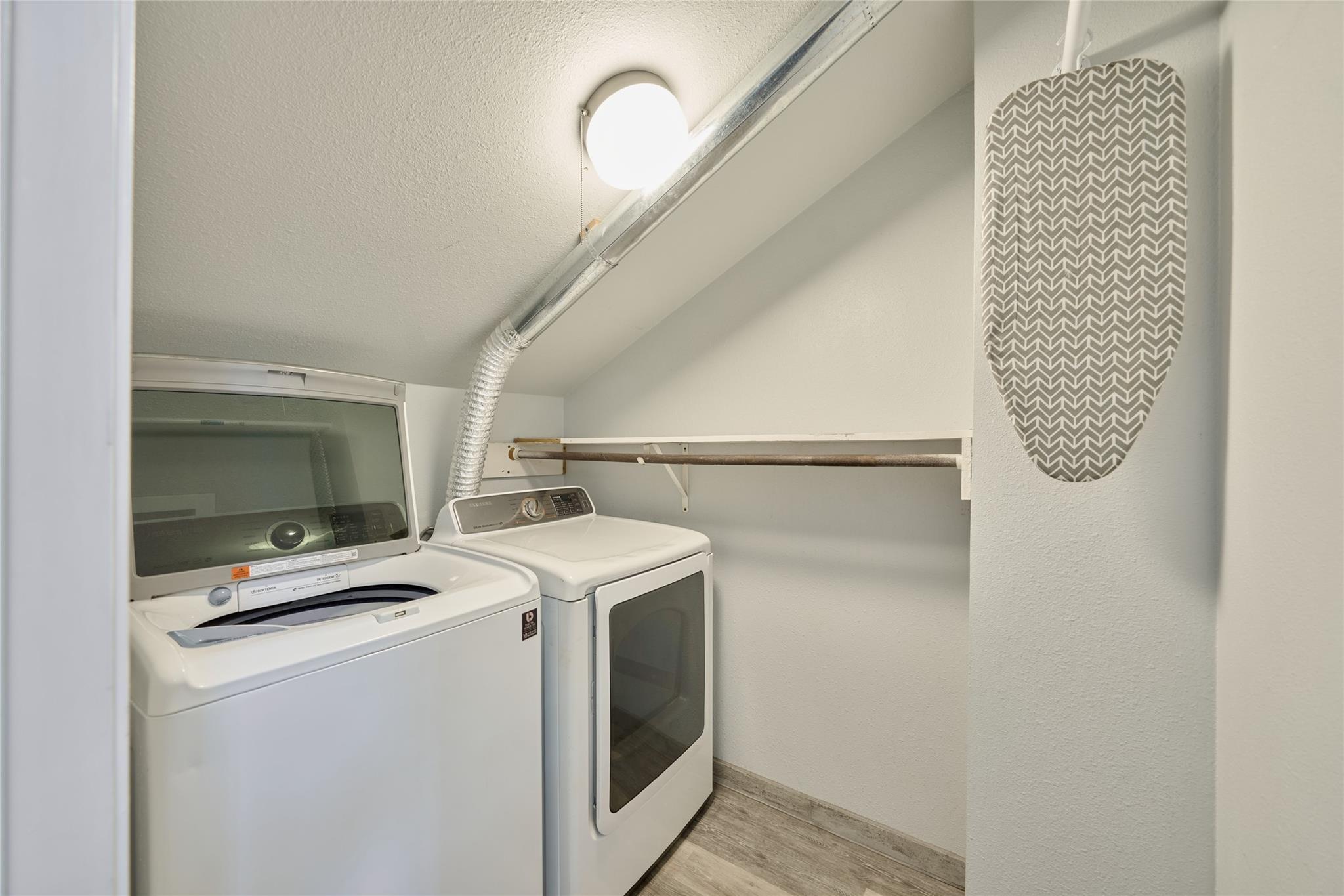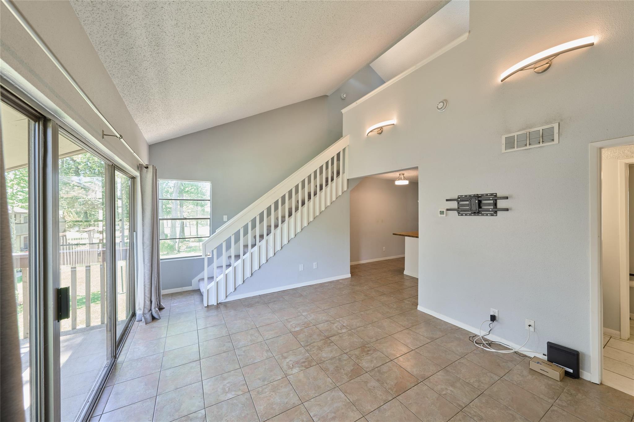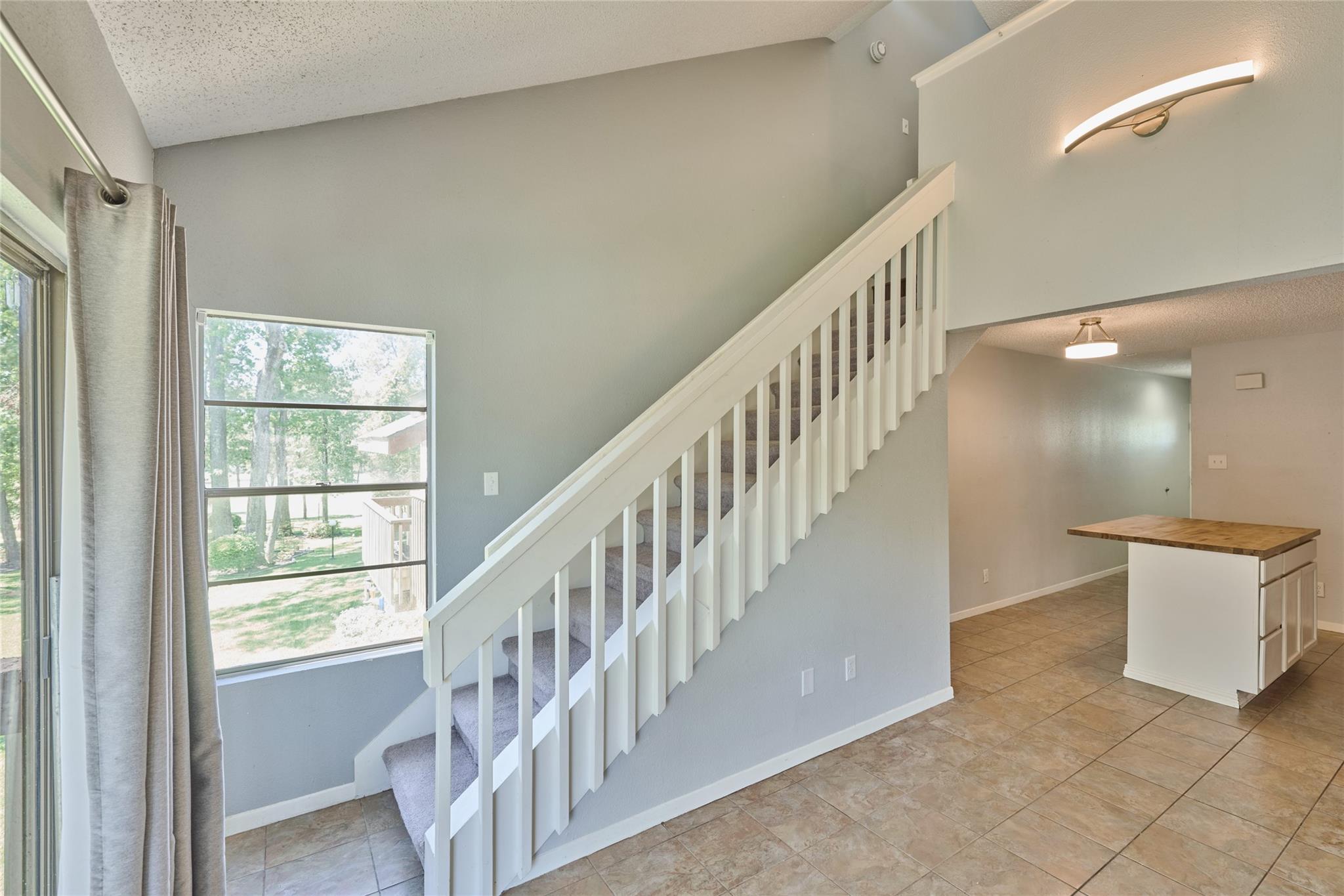 Welcome to this beautifully remodeled 2/2 condo at the 18th hole condos in Walden on Lake Conroe. Enjoy amazing views from your covered balcony & side window. This updated beauty features 2 large bedrooms w/full baths. Living room boasts high ceilings w/sliding glass doors that lead to a covered balcony & kitchen boasts a moveable island. Upstairs you will find the 2nd bedroom w/closet, washer & dryer & a full bath. Condo also features an outside storage room. Water, sewer & trash is included in the monthly maintenance. Complex has pool & laundry facilities close by & you are in walking distance to the lake! Enjoy Walden's amenities such as waterside pool, yacht club, club house, tennis & pickle ball courts, fitness center, marina, boat ramps, walking/bike paths, kids & dog parks & so much more. Live here full or part time or add to your investment port folio & rent out long or short term. Short term rentals are allowed! enjoy the Lake Conroe lifestyle everyday!