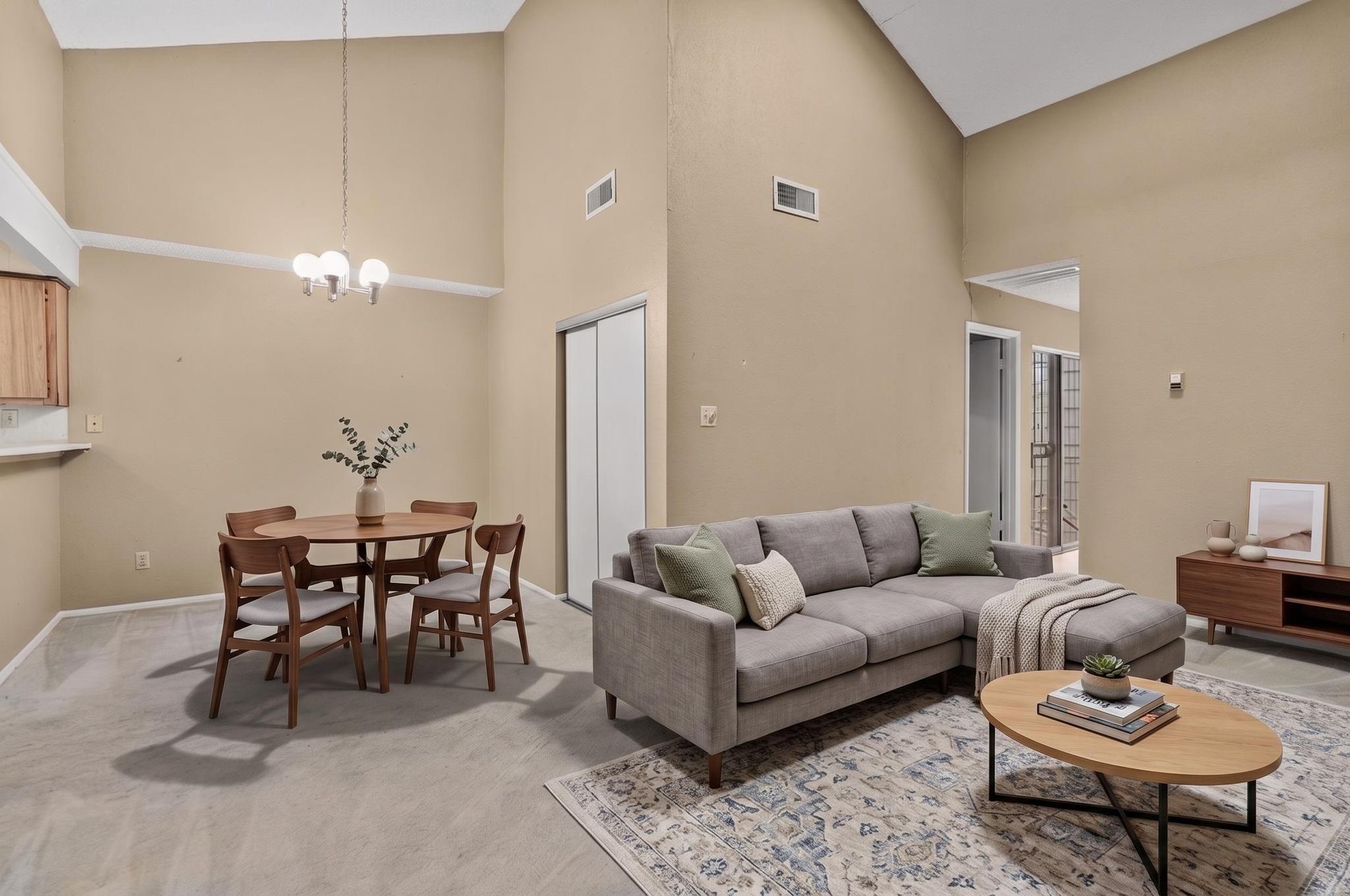 ESTATE SALE. This CORNER UNIT tucked away in a quiet, well-maintained community. Converted to a TRUE 2 BEDROOM layout with a functional and flexible floor plan. VAULTED CEILINGS and great NATURAL LIGHT create an open, airy feel throughout. Spacious living and dining areas with clean sightlines. PRIVATE COURTYARD/PATIO space perfect for relaxing. TWO-CAR GARAGE for added convenience. Community features POOL, TENNIS COURTS, and mature green space. Convenient access to major roads, shopping, and dining.