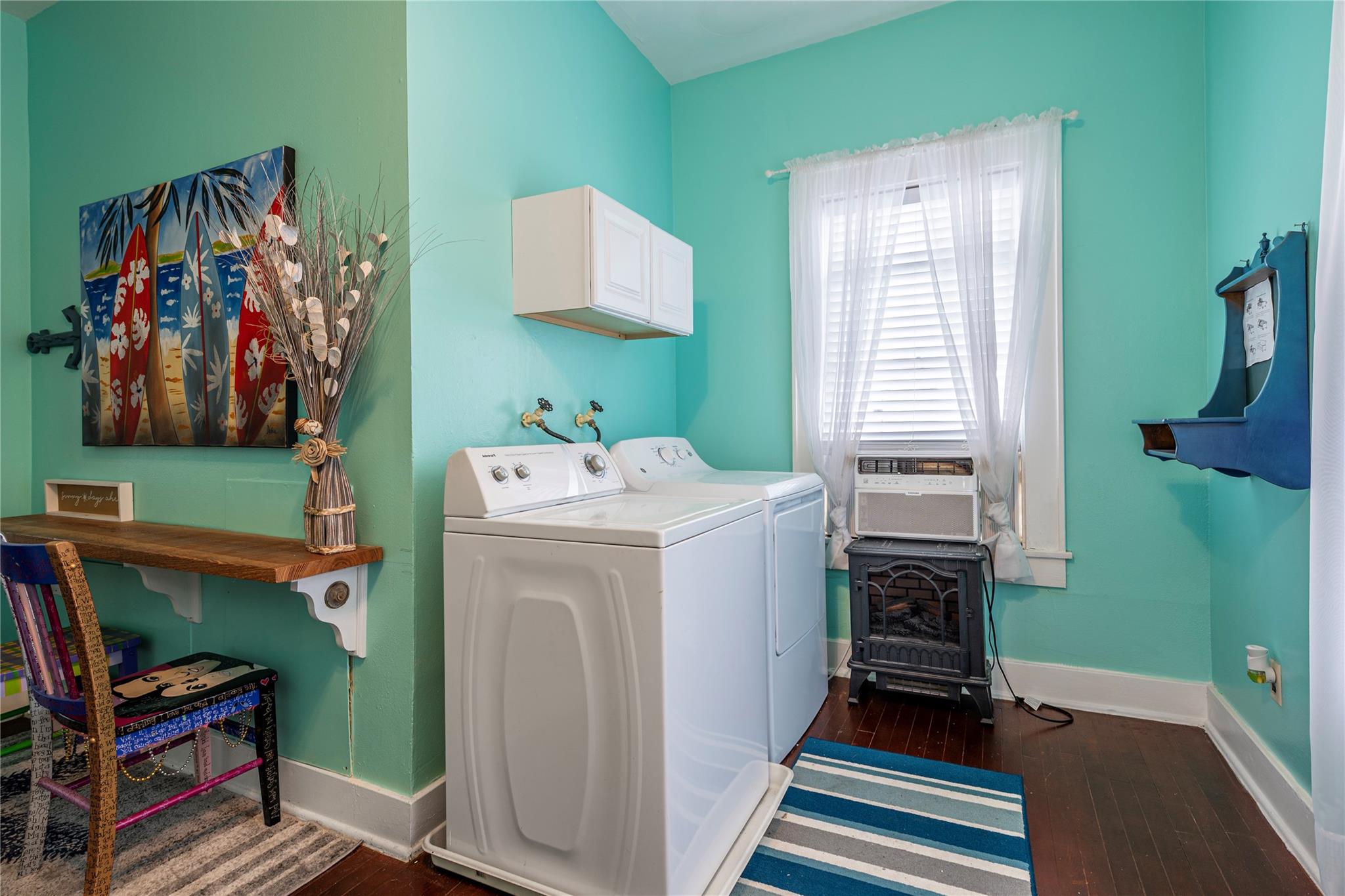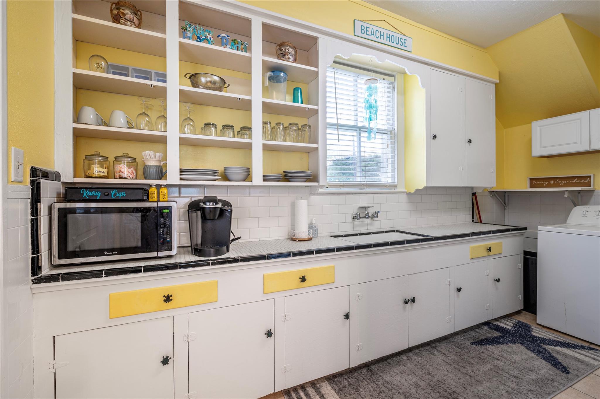 InteriorCountertop:ceramic tileFloors:WoodHeating:Window UnitCooling:Window UnitsMicrowave:Yes