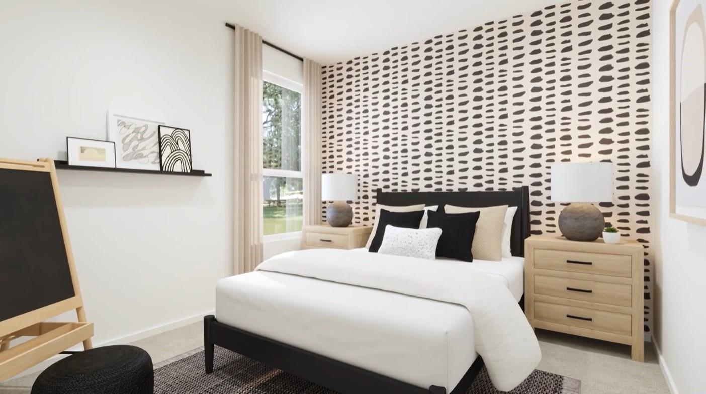 Lennar New Coastline Collection, "Navarre" in Magnolia Forest! Elevation "J4"! This new single-level home boasts a modern and low-maintenance design. Three secondary bedrooms are located off the foyer, with a nearby study perfect for focusing on important tasks throughout the week. An inviting open-concept living area combines the kitchen, living and dining areas, with a nearby covered patio ready for outdoor entertainment and leisure. A lavish owner’s suite completes the home, offering direct access to an en-suite bathroom and generous walk-in closet. Prices and features may vary and are subject to change. Photos are for illustrative purposes only.