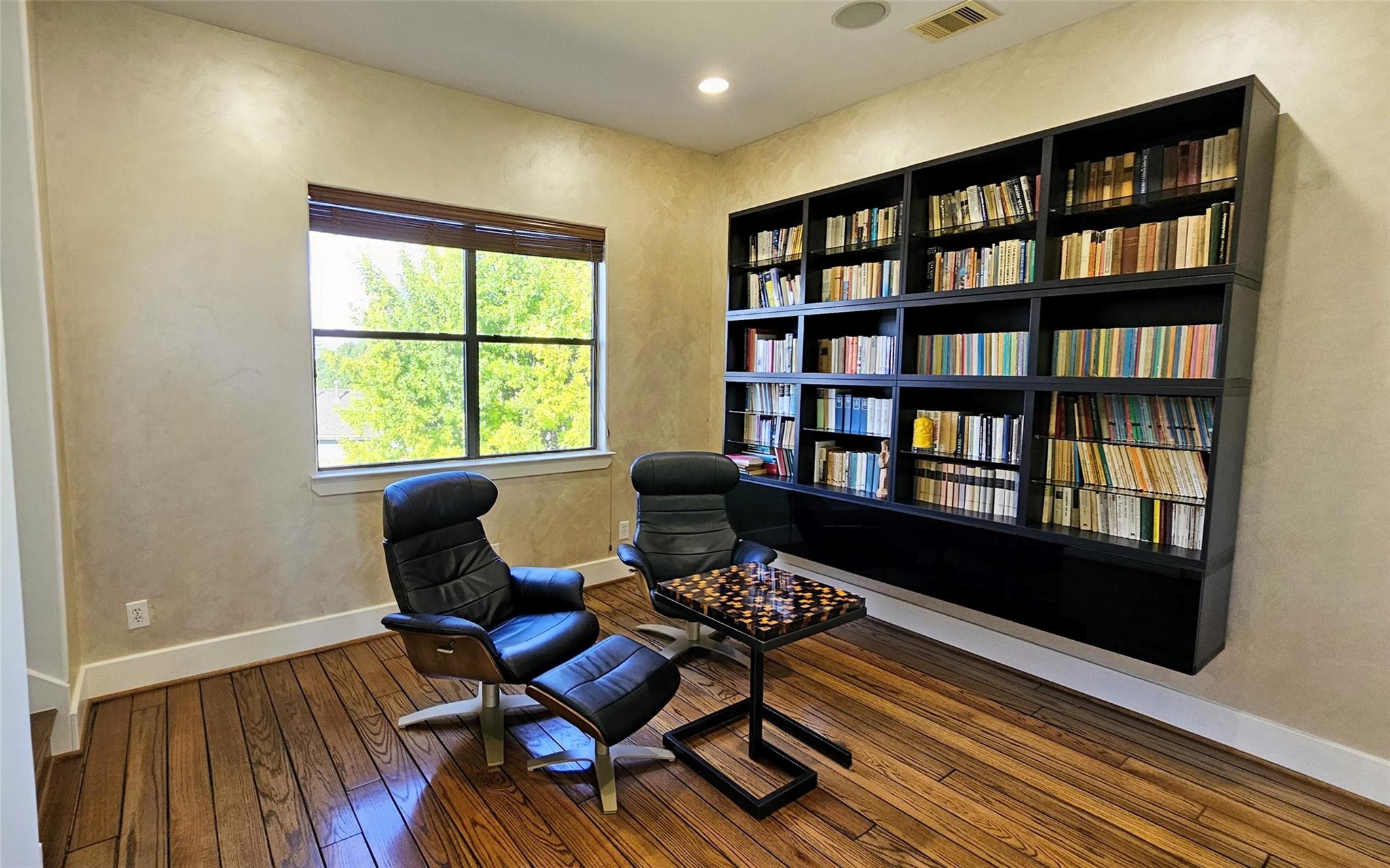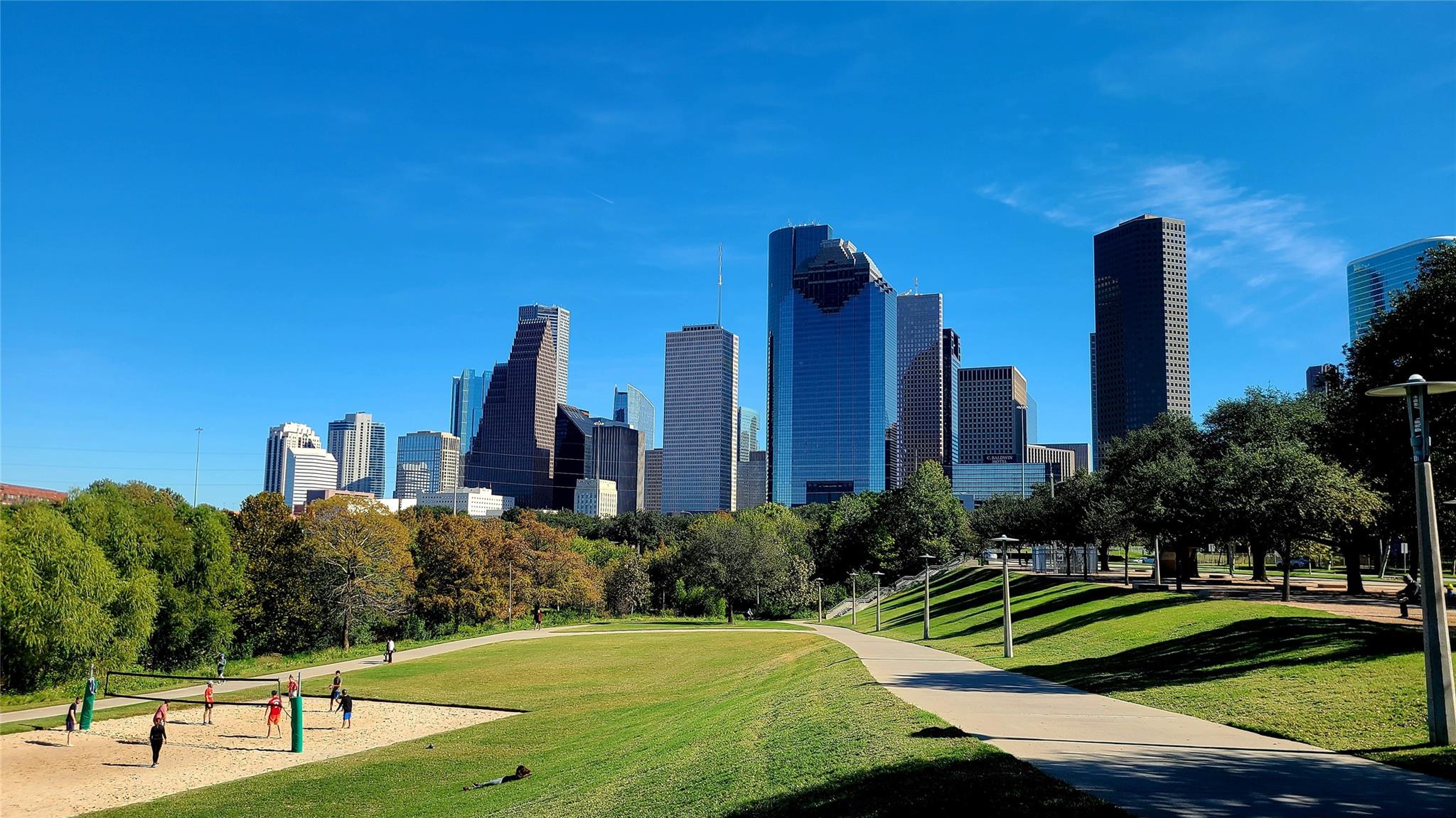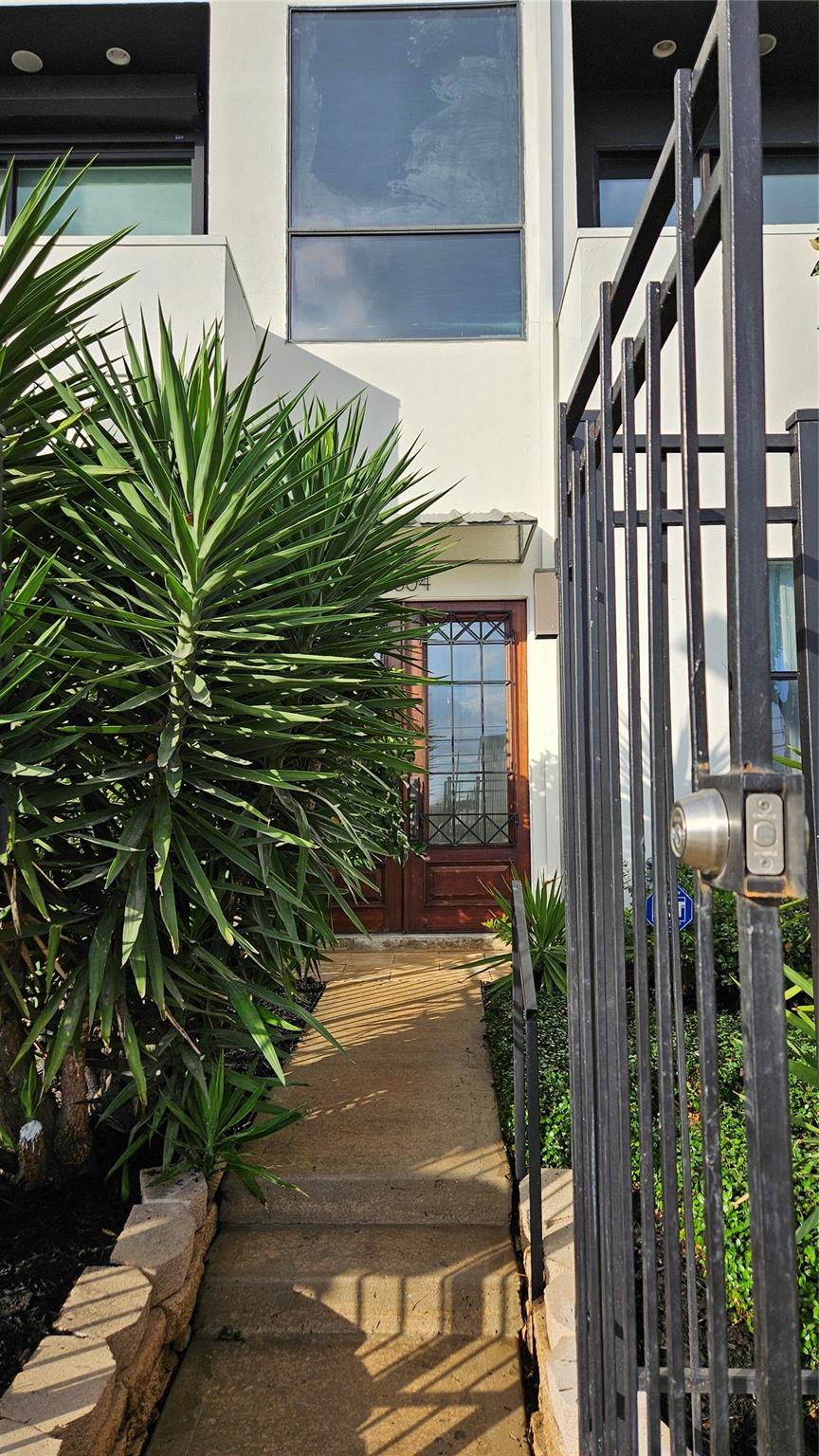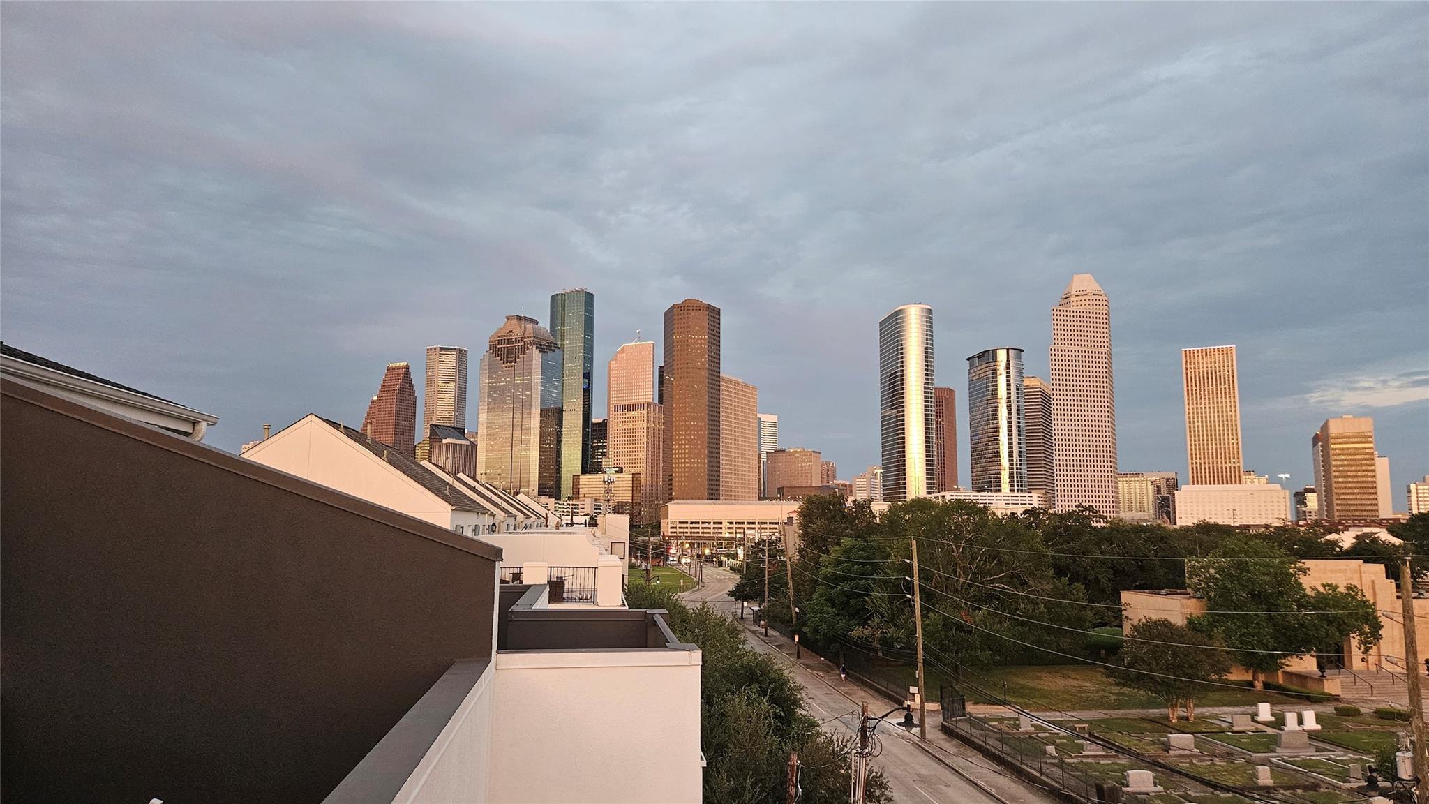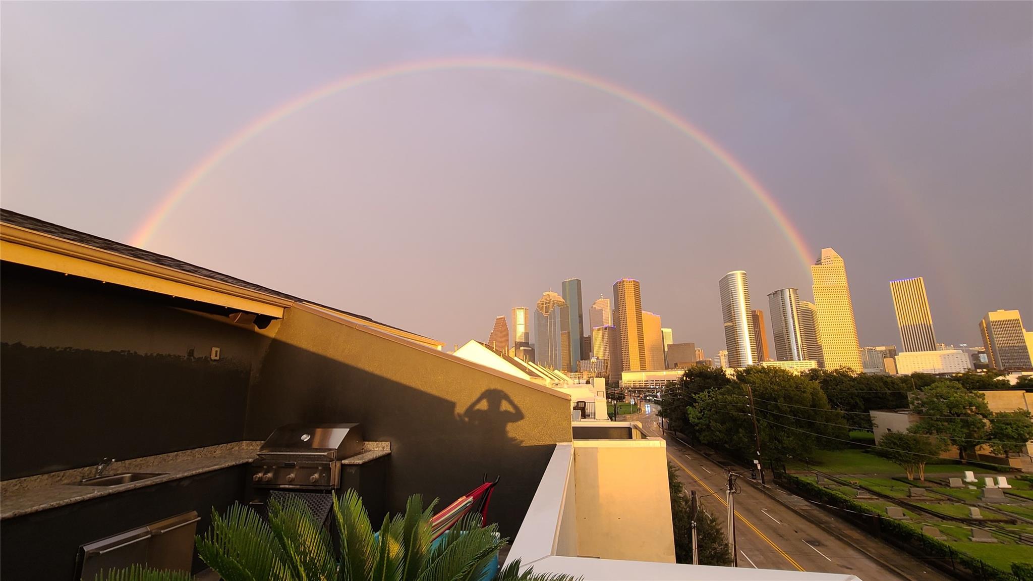 Enjoy unobstructed views from every window in this beautifully designed and maintained home that shows like new. The open floorplan features 12-foot ceilings in the living area, a chef’s kitchen with walk-in pantry, and one bedroom with full bath downstairs. Hardwood floors throughout—no carpet! A rooftop terrace with outdoor kitchen. Wired inside and out for sound, controlled gate access and a gated front yard with mature landscaping, including a magnolia and fruiting orange tree. Elegant touches include a mahogany front door and travertine entry. Conveniently located within walking distance to downtown, Buffalo Bayou or Montrose, and easy access to multiple highways. Move-in ready!