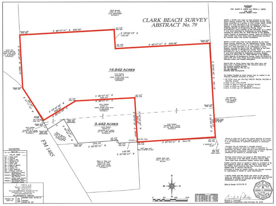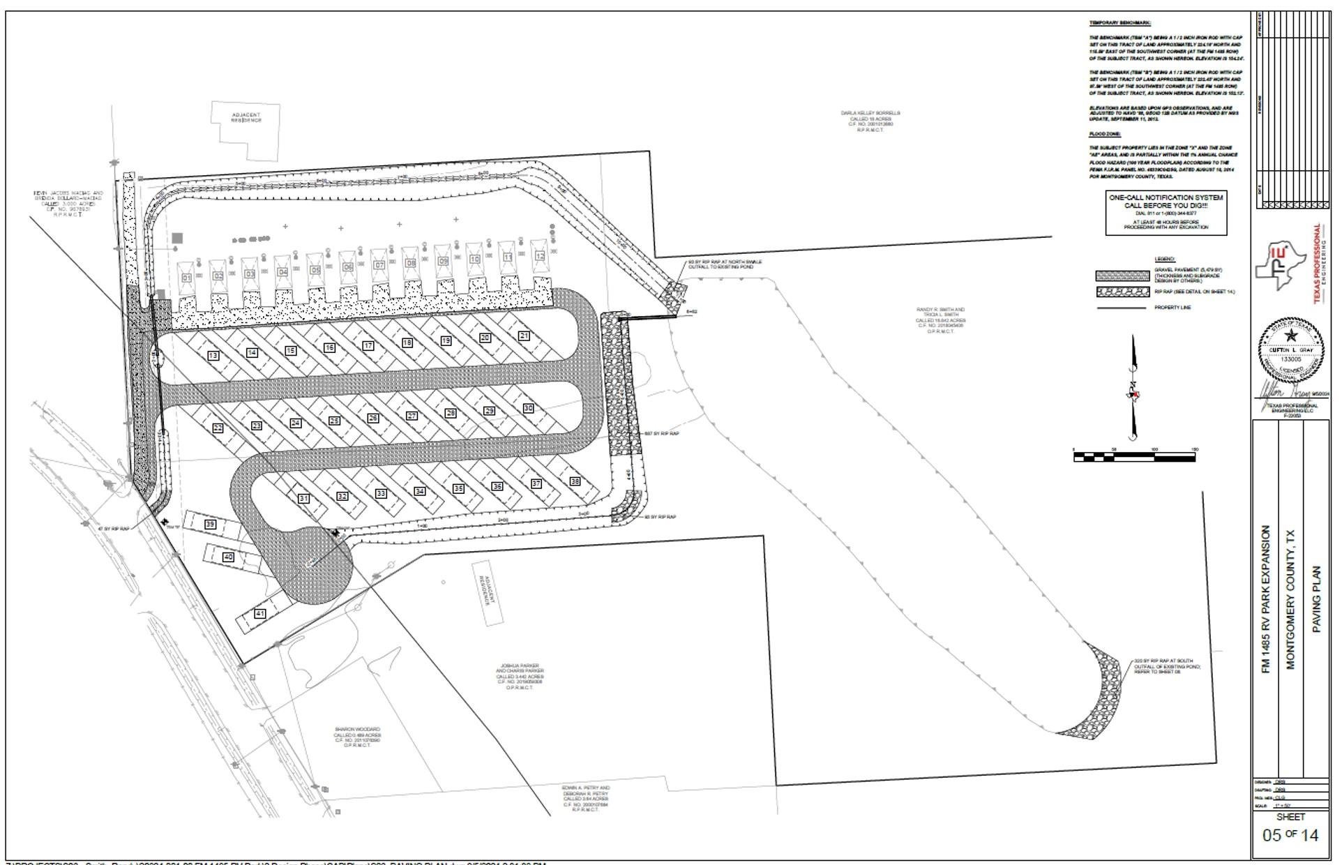 BLUE HORIZON RV PARK II – 16 UNRESTRICTED ACRES - 270 ft frontage on FM-1485. Income producing opportunity in growing Recreational Vehicle Parks sector, in the middle of a booming market area primed for significant growth. 12 existing RV sites with county approved engineered plans to expand by adding 29 additional sites. Or you can build something completely different! Invaluable benefit! The time-consuming planning, engineering, months of waiting - COMPLETED! Infrastructure in place (well water, septic system, detention pond) is COMPLETED! Engineered plans for RV park expansion, county approved COMPLETED! Ready to be built! The RV Park industry is growing, even better to be in a hot developing market area of Grangerland, TX 77306. Significant growth nearby. 30 min drive northeast of The Woodlands, 12 miles southeast of Conroe. Within vicinity of hot market area off 336 loop southeast/Crighton Road, where new residential areas are booming. New schools. Big growth happening.