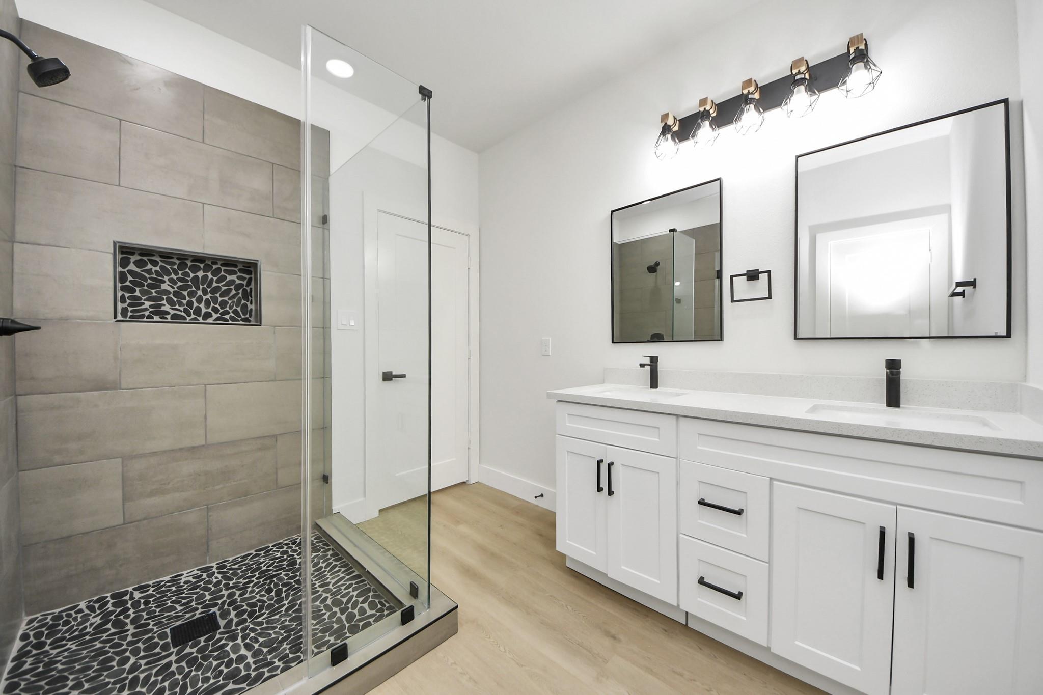 This modern duplex is a brand-new build offering two units, each with 3 bedrooms and 2 baths and are Windstorm certified. The open-concept floor plan creates a bright and welcoming living space highlighted by recessed lighting and oversized windows. The kitchens are outfitted with a large island, quartz countertops, and abundant cabinetry. Each primary suite includes a walk-in closet and an ensuite bath with dual vanities and a glass-enclosed shower. Both units enjoy the privacy of their own fully fenced backyard, making this property an excellent choice for comfortable living or investment. Schedule a showing today!