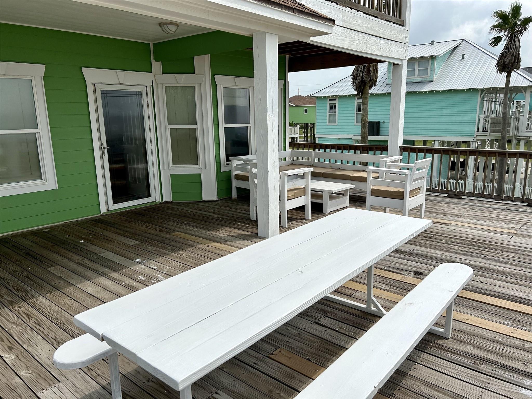 Fully furnished coastal retreat located on the 2nd row, just steps from the sands of Crystal Beach. Enjoy forever beach views with county-owned buyout lots in front. The ground level offers ample parking for vehicles, boats, and beach toys, plus a one-car garage and private outdoor shower. Main level features an open layout with expansive Gulf views, high ceilings, living and dining areas, full kitchen with pantry, two bedrooms, full bath, laundry room, and storage closet. The private master suite occupies the top floor and includes a spacious bathroom with a large Jacuzzi tub and a private balcony offering unobstructed beach views to the east. 2026 updates include luxury vinyl plank flooring throughout and fully refinished and professionally painted kitchen cabinetry, providing a clean, modern coastal aesthetic with low-maintenance durability. Ideal as a primary residence, vacation getaway, or income-producing rental. Owner is a licensed real estate agent and certified appraiser.