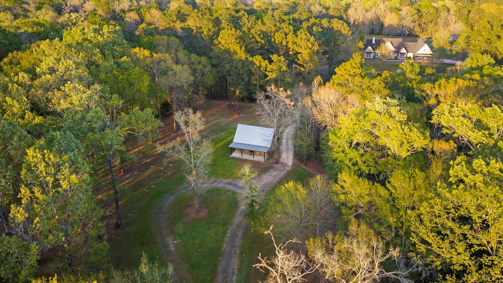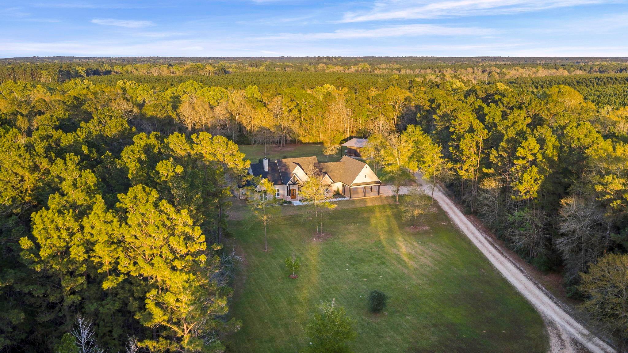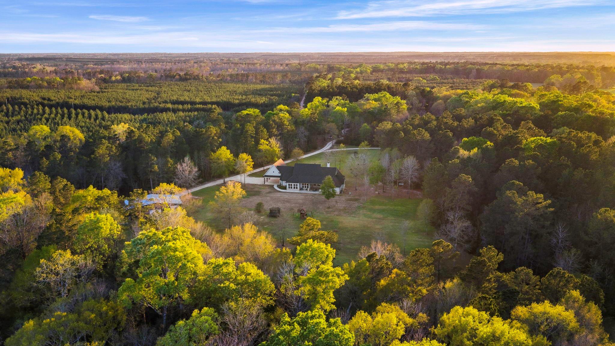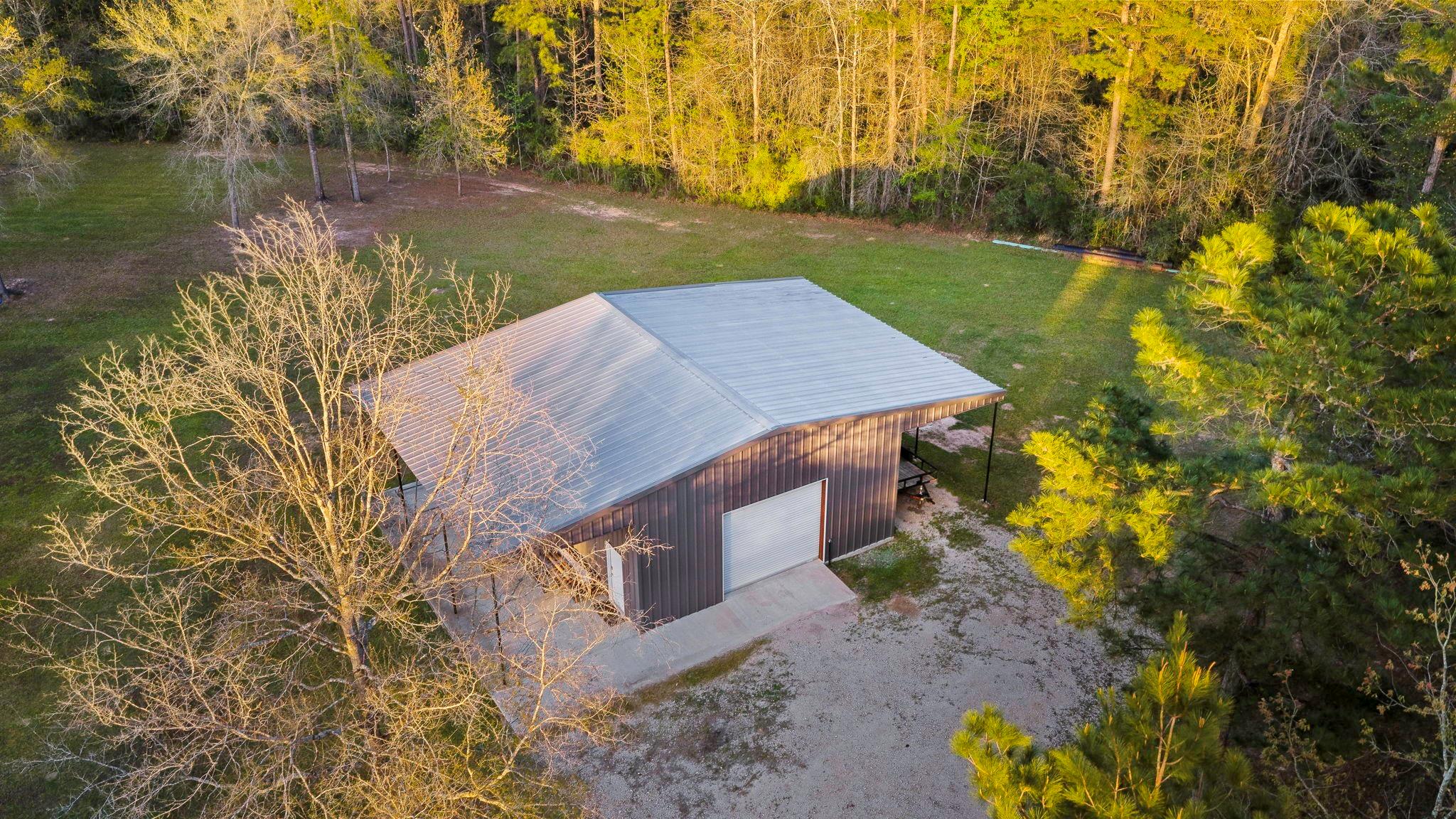 Escape to your private retreat just 8.5 miles from town! This property offers a 40x60 shop with a loft, electricity, and a 50-amp RV hookup, perfect for work or play. The home features quartz countertops, white oak cabinetry, a split floor plan, and a cozy wood-burning fireplace. A separate in-law suite (cabin) provides space for guests or income potential. Enjoy outdoor living with a fully equipped outdoor kitchen, stocked pond with pier, and abundant wildlife. A natural wooded border ensures privacy and serenity. Additional highlights include fiber optic internet, a generator transfer switch, Soda Water Supply to all facilities, pipe fencing, a custom automatic gate, and timber exemption. Conveniently located 10.5 miles to Naskila Casino, 20 miles to Lake Livingston, and under 1 hr 20 min to IAH.
