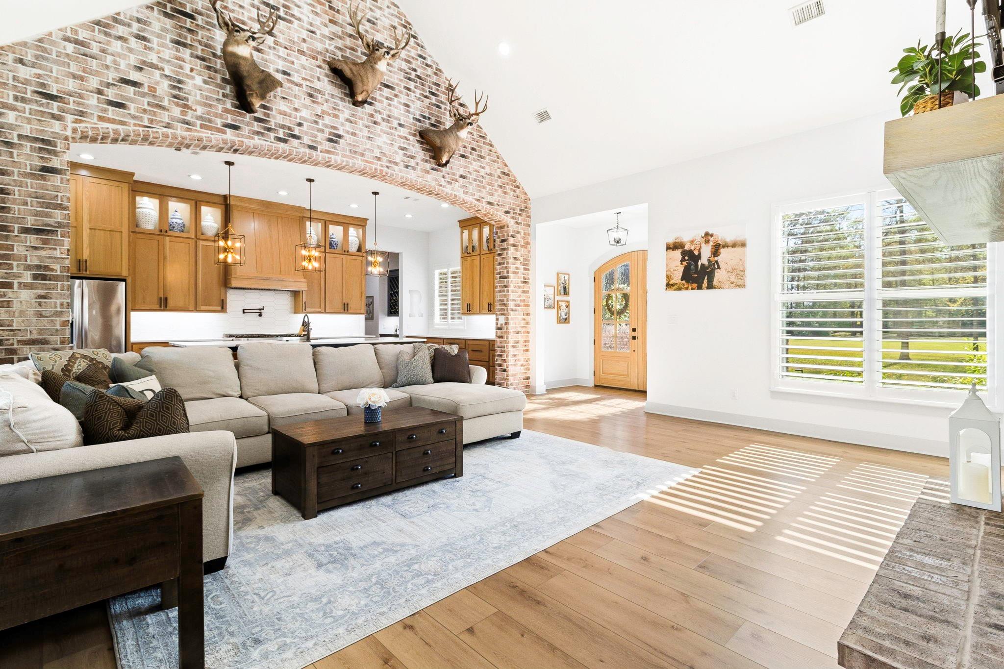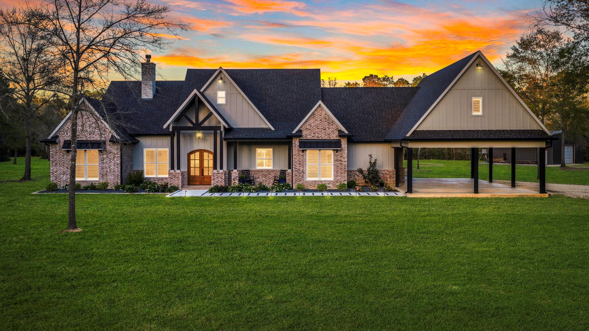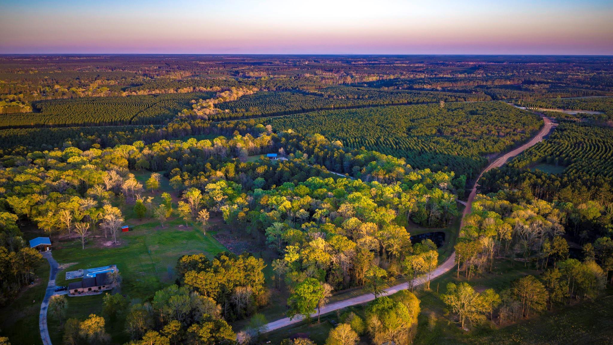 Escape to your private retreat just 8.5 miles from town! This property offers a 40x60 shop with a loft, electricity, and a 50-amp RV hookup, perfect for work or play. The home features quartz countertops, white oak cabinetry, a split floor plan, and a cozy wood-burning fireplace. A separate in-law suite (cabin) provides space for guests or income potential. Enjoy outdoor living with a fully equipped outdoor kitchen, stocked pond with pier, and abundant wildlife. A natural wooded border ensures privacy and serenity. Additional highlights include fiber optic internet, a generator transfer switch, Soda Water Supply to all facilities, pipe fencing, a custom automatic gate, and timber exemption. Conveniently located 10.5 miles to Naskila Casino, 20 miles to Lake Livingston, and under 1 hr 20 min to IAH.