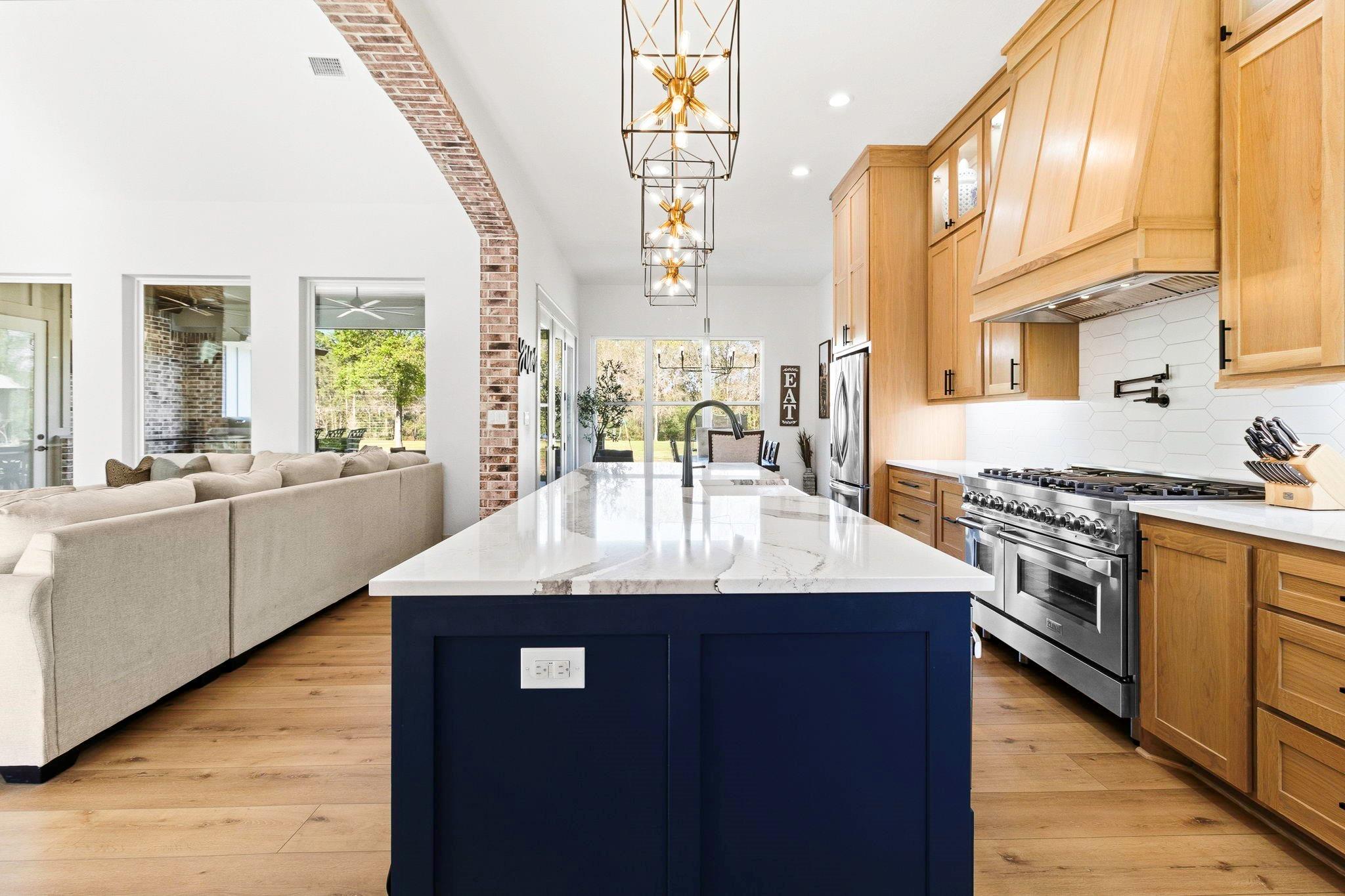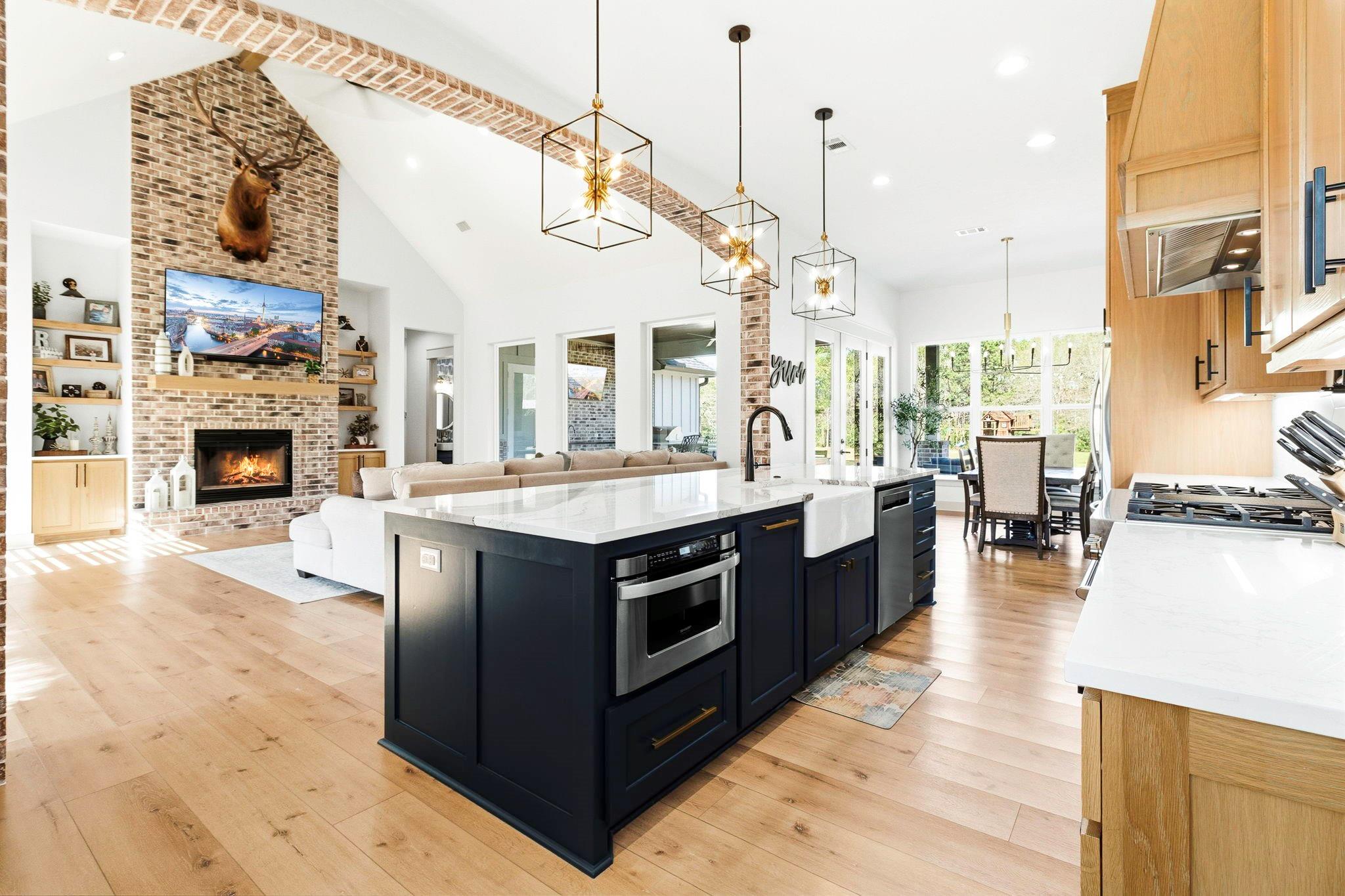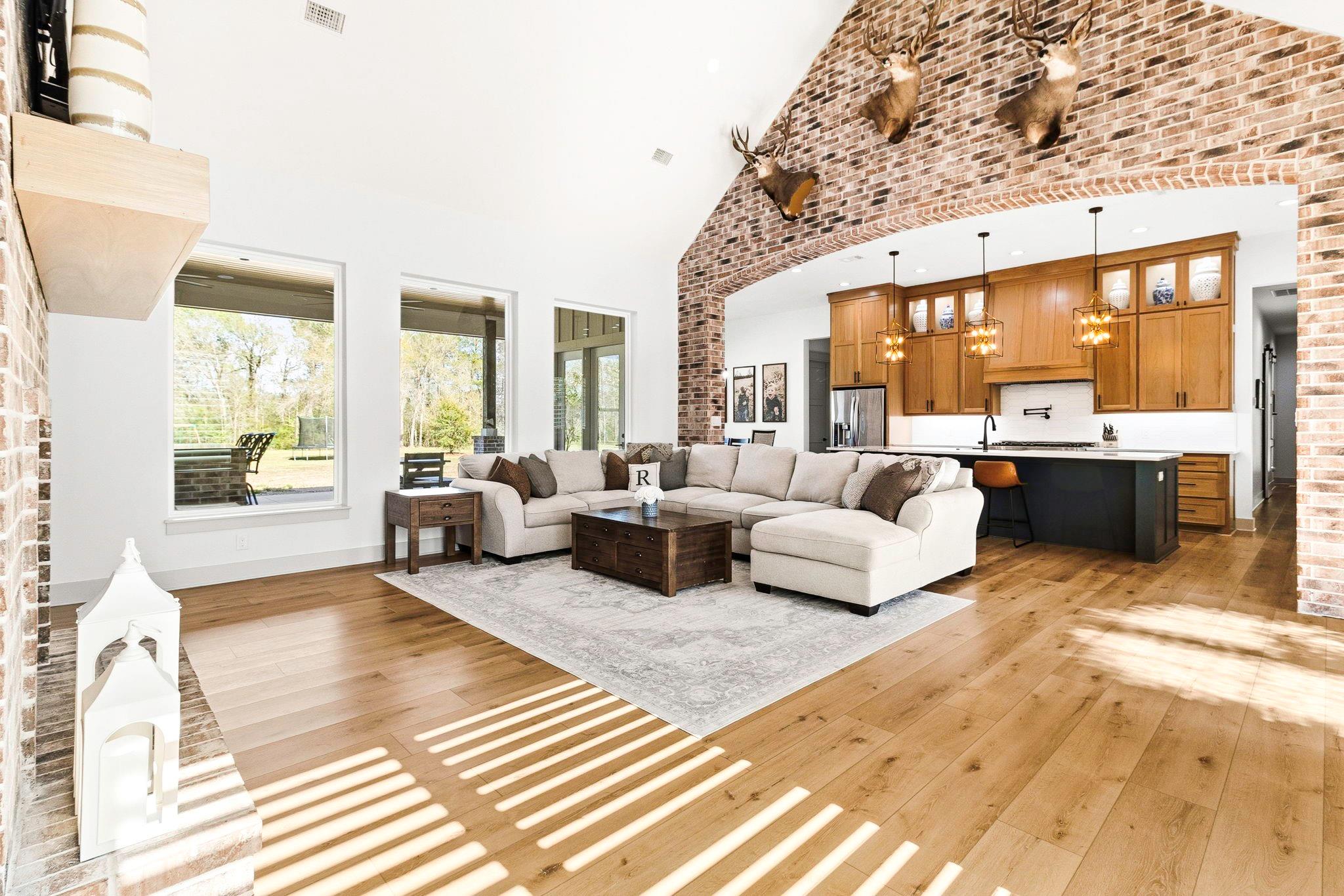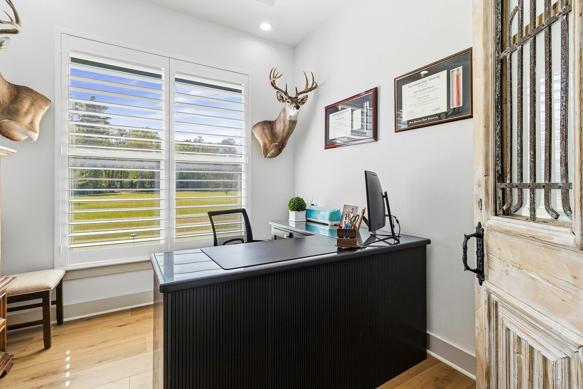Escape to your private retreat just 8.5 miles from town! This property offers a 40x60 shop with a loft, electricity, and a 50-amp RV hookup, perfect for work or play. The home features quartz countertops, white oak cabinetry, a split floor plan, and a cozy wood-burning fireplace. A separate in-law suite (cabin) provides space for guests or income potential. Enjoy outdoor living with a fully equipped outdoor kitchen, stocked pond with pier, and abundant wildlife. A natural wooded border ensures privacy and serenity. Additional highlights include fiber optic internet, a generator transfer switch, Soda Water Supply to all facilities, pipe fencing, a custom automatic gate, and timber exemption. Conveniently located 10.5 miles to Naskila Casino, 20 miles to Lake Livingston, and under 1 hr 20 min to IAH.
