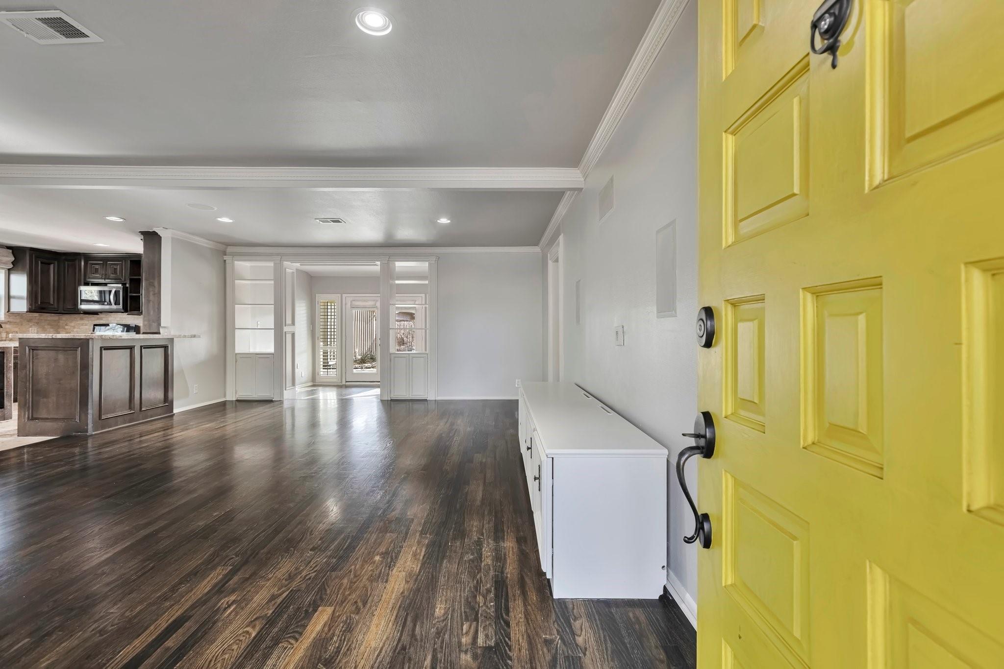Located in prestigious Spring Valley Village, this updated single-story residence offers exceptional accessibility. Set on a 9,000 sq ft lot along Bingle Rd, the home provides quick access to I-10, 290, the Energy Corridor, and Memorial. Interior features include custom cabinetry, crown molding, wainscoting, built-ins, granite countertops, under-cabinet lighting, and a 5-burner gas range. Hardwood and travertine flooring, plantation shutters, and double-pane windows enhance comfort and efficiency. Additional upgrades include a whole-house water filtration system, epoxy-coated garage with built-in storage, sprinkler system, and backyard shed. The property offers flexibility for modern living, including remote work convenience. A private backyard provides separation while maintaining accessibility. Zoned to Valley Oaks Elementary, Spring Branch Middle, and Memorial High School, with dedicated Spring Valley Village police and fire services.