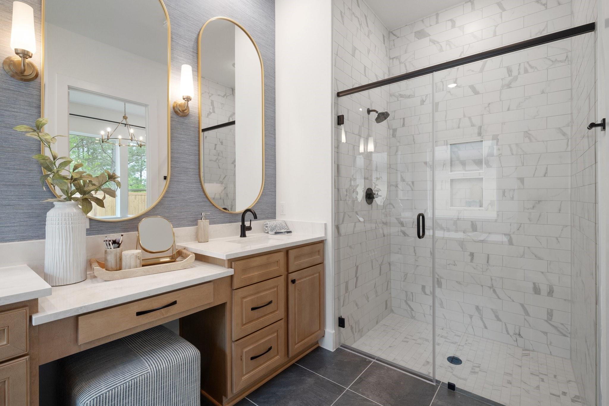 Welcome home to Wood Leaf Reserve! Discover your dream lifestyle in this stunning new construction home by Chesmar Homes! Located just moments away from the vibrant shopping, dining, and entertainment options of downtown Tomball, and with quick access to Hwy 249 and Grand Parkway 99, convenience meets charm in this unbeatable location. Introducing our Hampton plan! Step inside this beautiful one story plan and be captivated by its inviting curb appeal, soaring ceilings, and an abundance of natural light streaming through the many windows. The heart of the home is a gorgeous kitchen featuring a massive island—perfect for entertaining and everyday living. Your amazing covered patio is calling! Enjoy the luxurious feel of extensive wood-look tile throughout, and the added peace of mind with full gutters, a full sprinkler system, blinds, and more included! Don't miss the chance to experience this exceptional home for yourself. Come visit us at the Wood Leaf Reserve sales office today!
