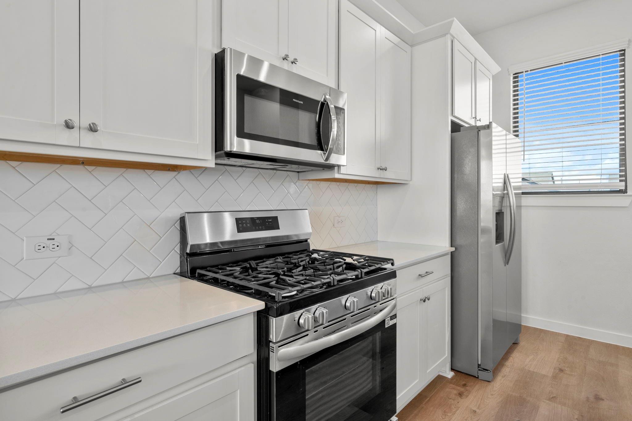 InteriorFloors:Carpet,Vinyl PlankCountertop:QuartzBathroom Description:Primary Bath: Double Sinks,Primary Bath: Shower Only,Secondary Bath(s): Tub/Shower ComboBedroom Desc:All Bedrooms Up,En-Suite Bath,Primary Bed - 3rd Floor,Walk-In ClosetKitchen Desc:Instant Hot Water,Island w/o Cooktop,Kitchen open to Family Room,Pantry,Pots/Pans DrawersRoom Description:1 Living Area,Entry,Family Room,Kitchen/Dining Combo,Living Area - 2nd Floor,Utility Room in HouseHeating:Central GasCooling:Central ElectricConnections:Electric Dryer Connections,Gas Dryer Connections,Washer ConnectionsDishwasher:YesDisposal:YesCompactor:NoMicrowave:YesRange:Gas Cooktop,Gas RangeOven:Gas OvenIce Maker:NoEnergy Feature:Attic Vents,Ceiling Fans,Digital Program Thermostat,Energy Star Appliances,Energy Star/CFL/LED Lights,High-Efficiency HVAC,Insulated/Low-E windows,Insulation - Blown Fiberglass,Tankless/On-Demand H2O HeaterInterior:Balcony,Dryer Included,Fire/Smoke Alarm,Prewired for Alarm System,Refrigerator Included,Washer Included