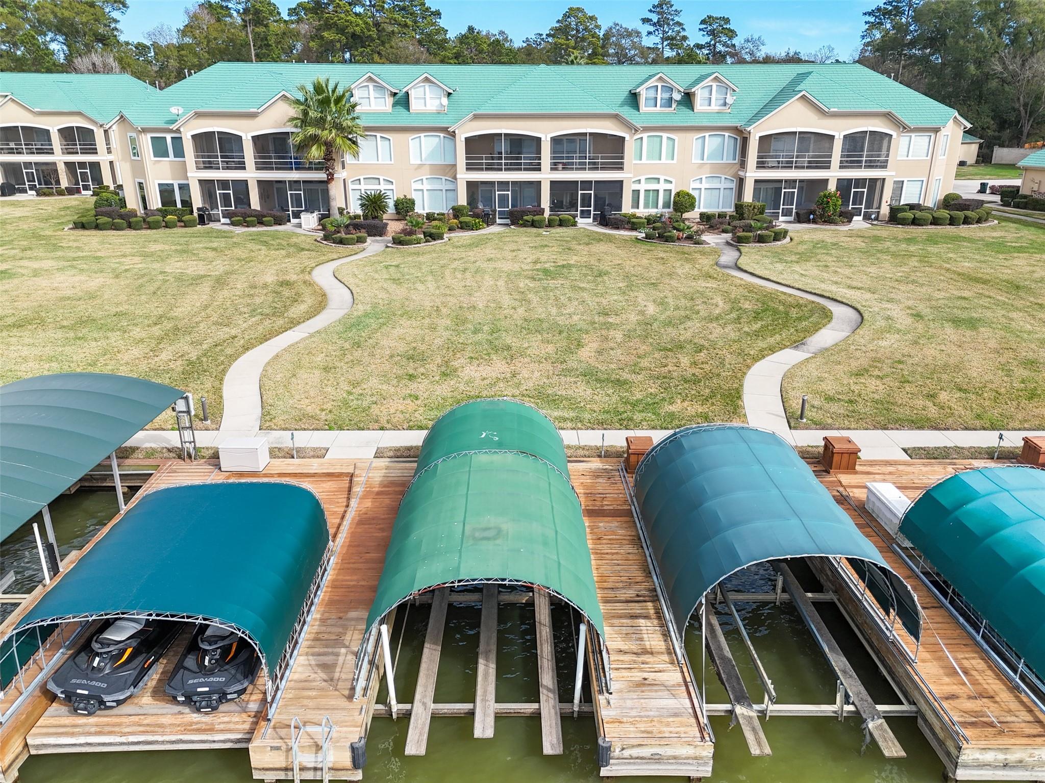 This stunning three-story townhome on Lake Conroe offers the ultimate lakeside lifestyle with breathtaking water views from every level. Featuring 4–5 spacious bedrooms, 4 full baths, 1 half bath and a large gameroom, there’s room for family, guests, and entertaining with ease. The open-concept main living area showcases expansive windows that flood the home with natural light while perfectly framing the lake. Multiple balconies provide ideal spaces for morning coffee, sunset dinners, or relaxing lake breezes. The private dock is a standout feature, complete with both a boat lift and jet ski lift for effortless days on the water. Numerous updates throughout the home along with substantial storage space and a full home generator, enhance both style and functionality, blending modern comfort with timeless lakehouse charm. Whether used as a full-time residence or weekend retreat, this exceptional townhome delivers luxury, convenience, and unforgettable Lake Conroe views.