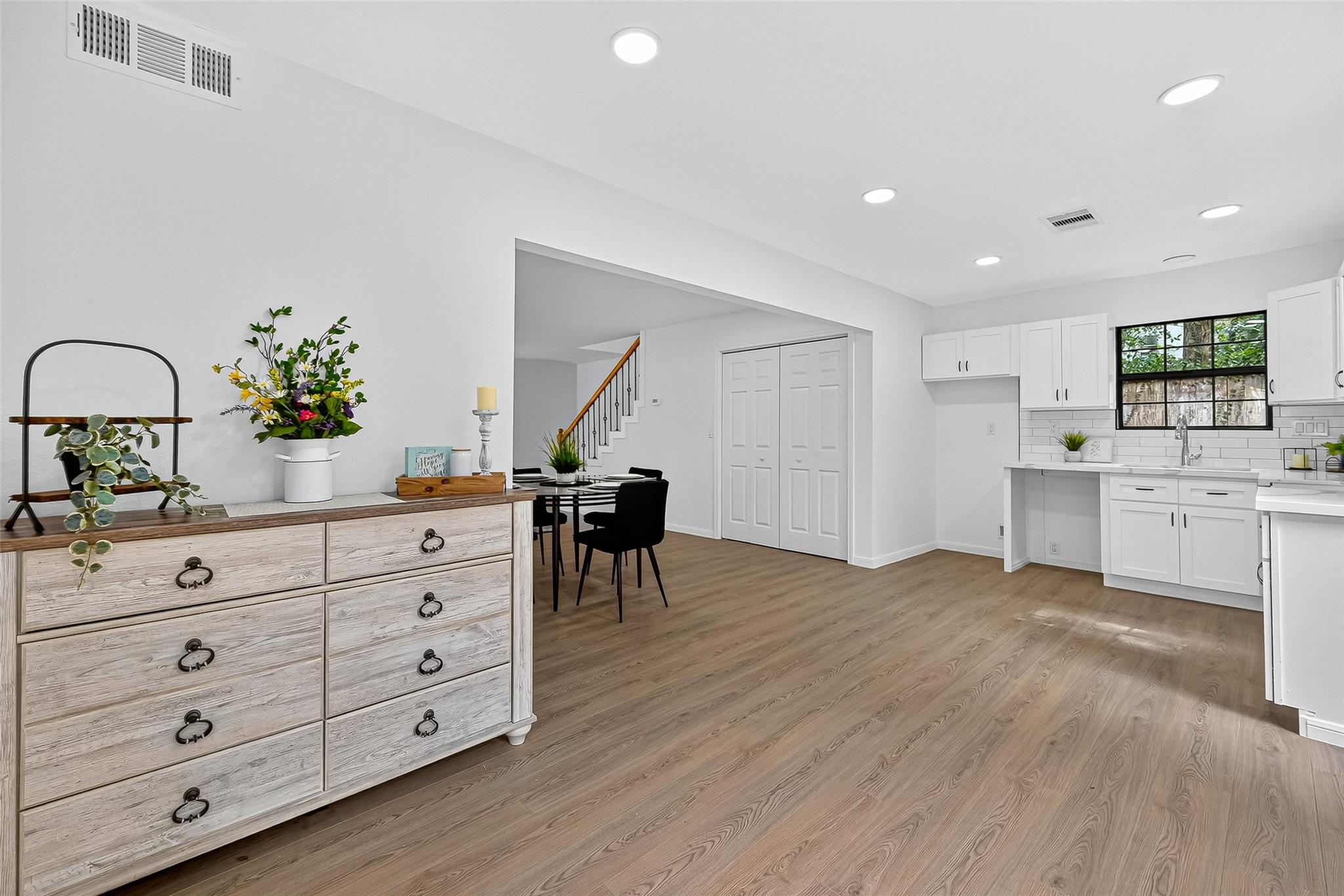 Welcome to this beautifully remodeled multi-generational family home — featuring a full second residence in the back! The main home offers 3 spacious bedrooms, a dedicated study, and 2 full baths. Enjoy the open layout, modern finishes, and thoughtful design throughout. The secondary home provides 1 bedroom, 1.5 baths, a full kitchen, dining, living, and breakfast area — perfect for extended family, guests, or rental income potential. Additional highlights include an extra-wide driveway for ample parking and a fully fenced layout offering privacy and functionality. Per seller, no flooding and not currently located in a flood zone. This rare dual-living property combines flexibility, comfort, and style — ready for you to call home!