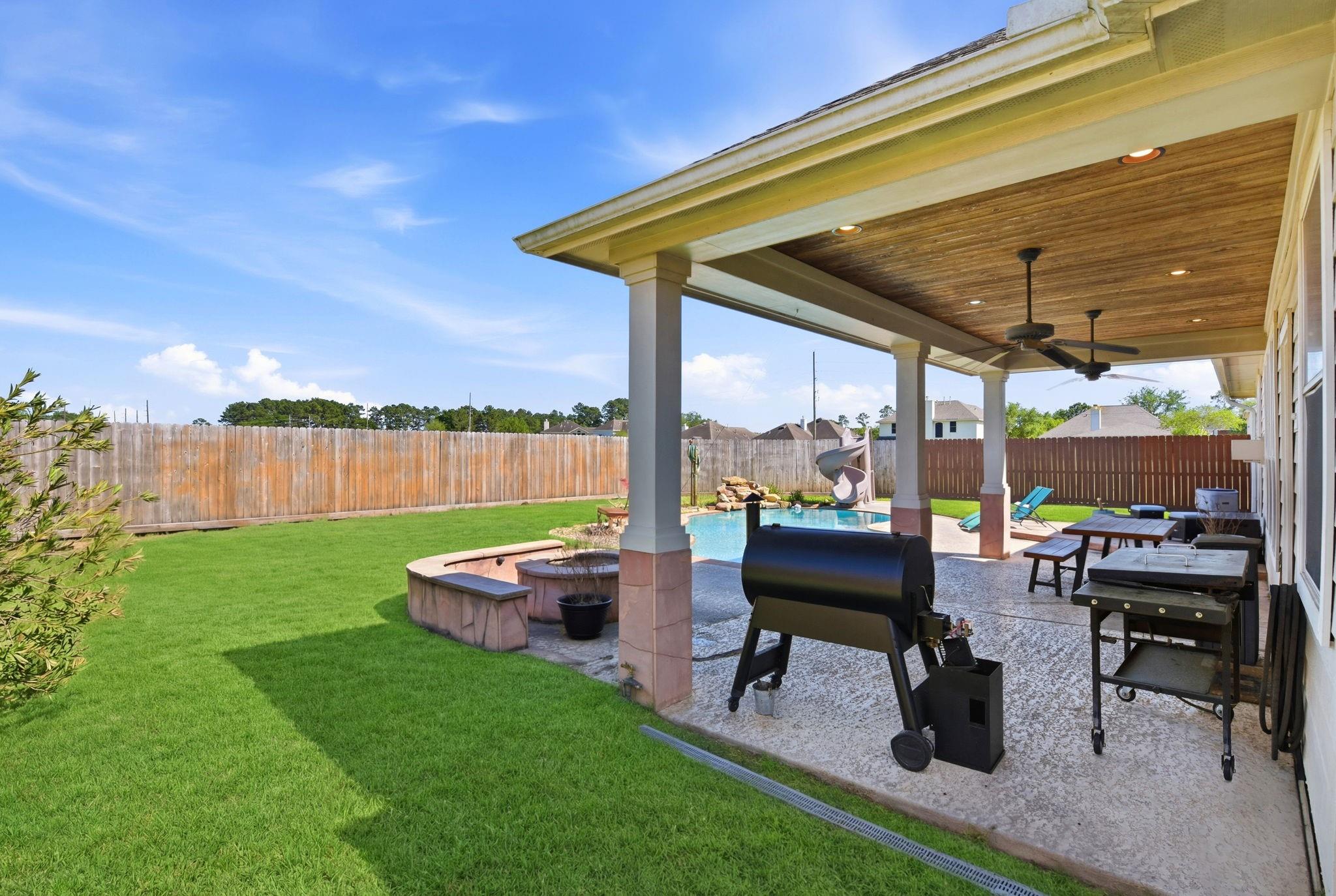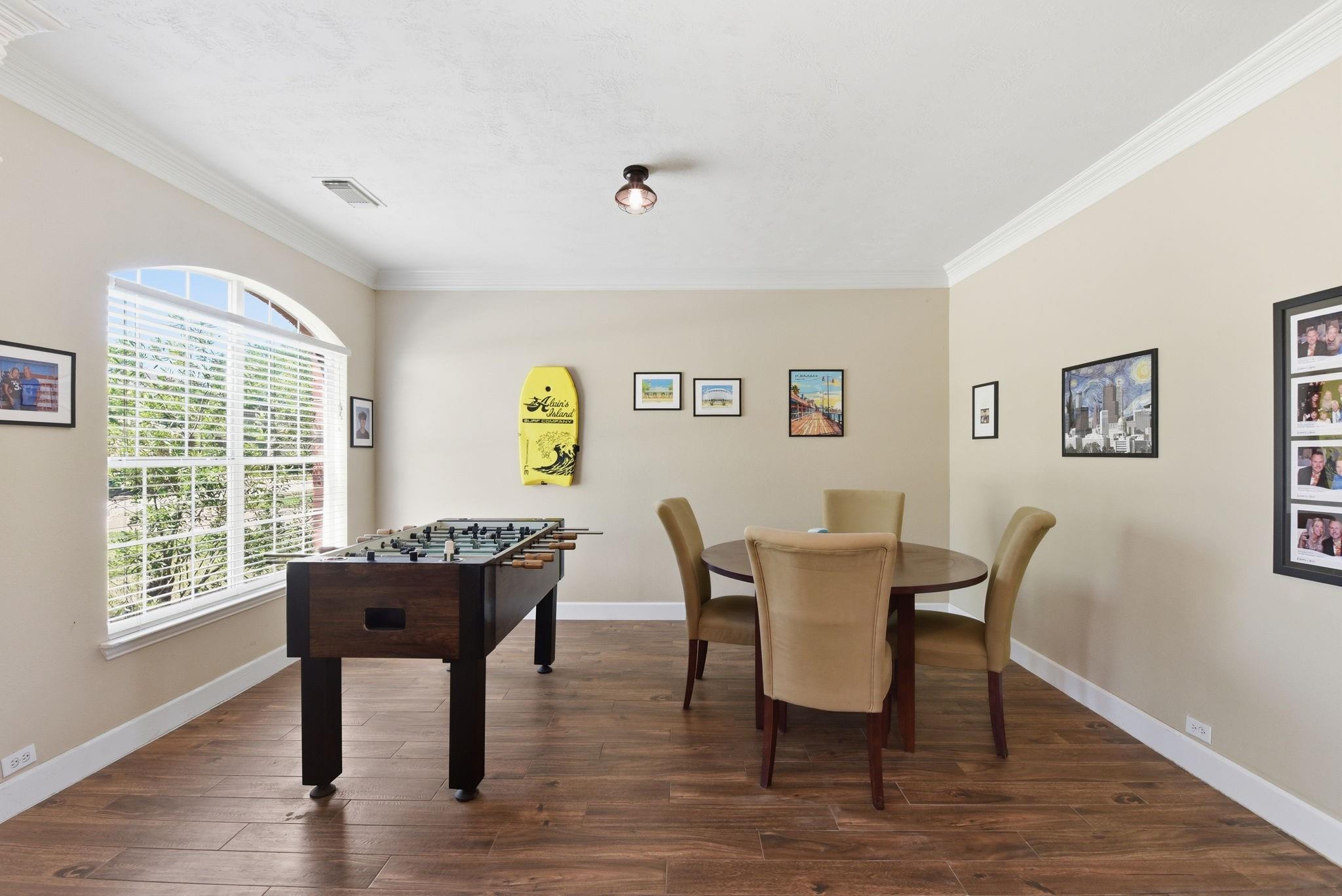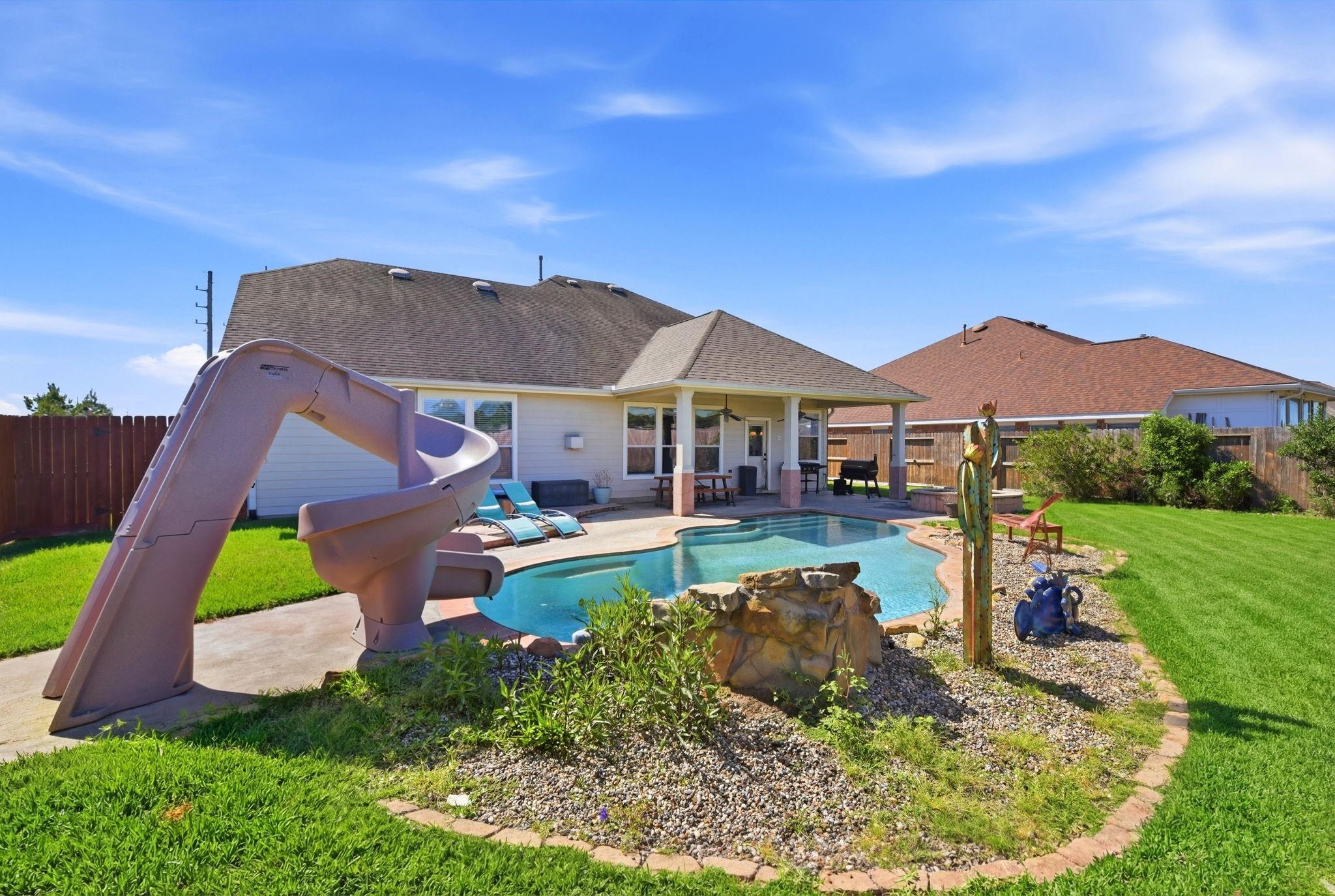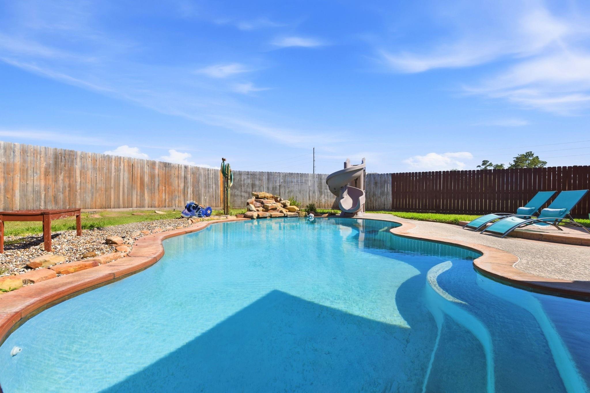 This home has a fabulous floor plan w/large rooms and the back yard is a true oasis! There is a Formal Living Room & Dining Room, then you enter the Kitchen, Family Room & Breakfast area that are all open to each other! Crown Molding, neutral paint give a warm/inviting feeling throughout. Wood look tile floors flow seamlessly through most of first floor. The kitchen has stainless appliances & a large center island! Tons of storage & a walk in pantry! Gas fireplace in the Family Room for those cold Houston nights! Primary is on the first floor & upstairs has large bedrooms, & a great Gameroom. HVAC's, including duct work were upgraded about 7 years ago. Ceiling Fans in all bedrooms. The back yard is spacious/private and has a pool, waterfall & slide feature. There is a firepit & a covered patio section. Lot backs up to and is sided by green paces so very private. Tomball ISD schools are amazing & close to great restaurants & shopping.