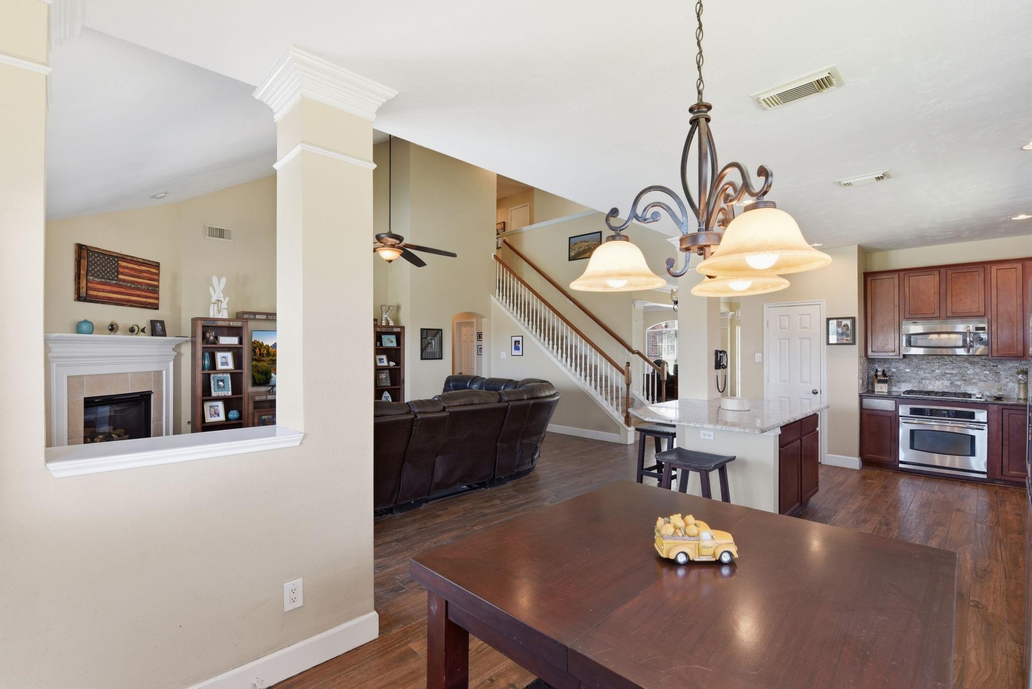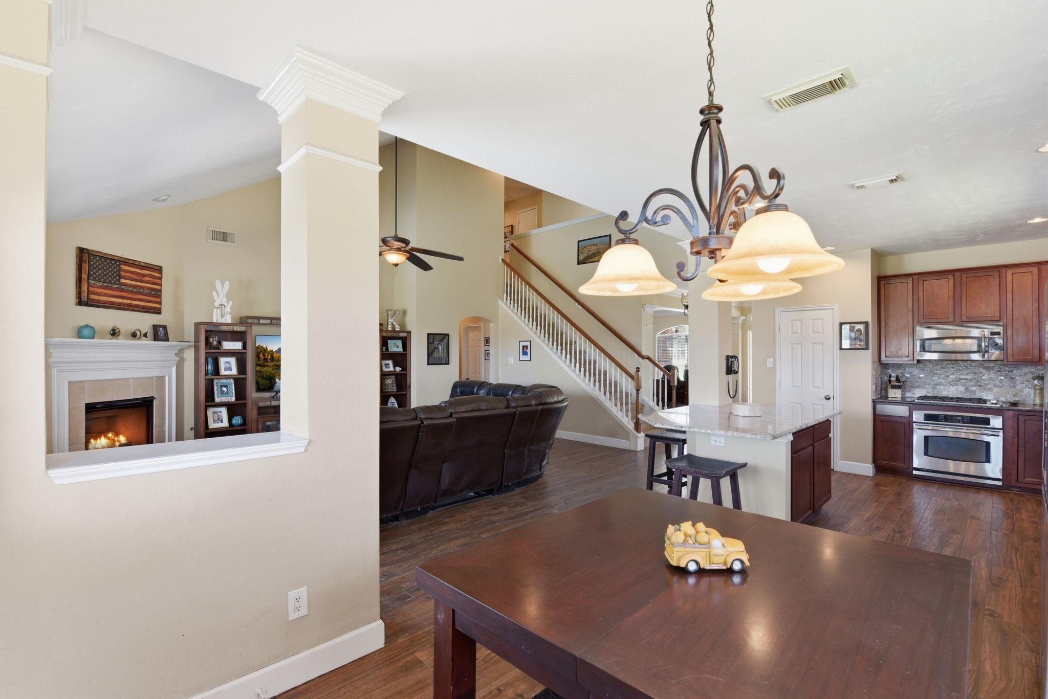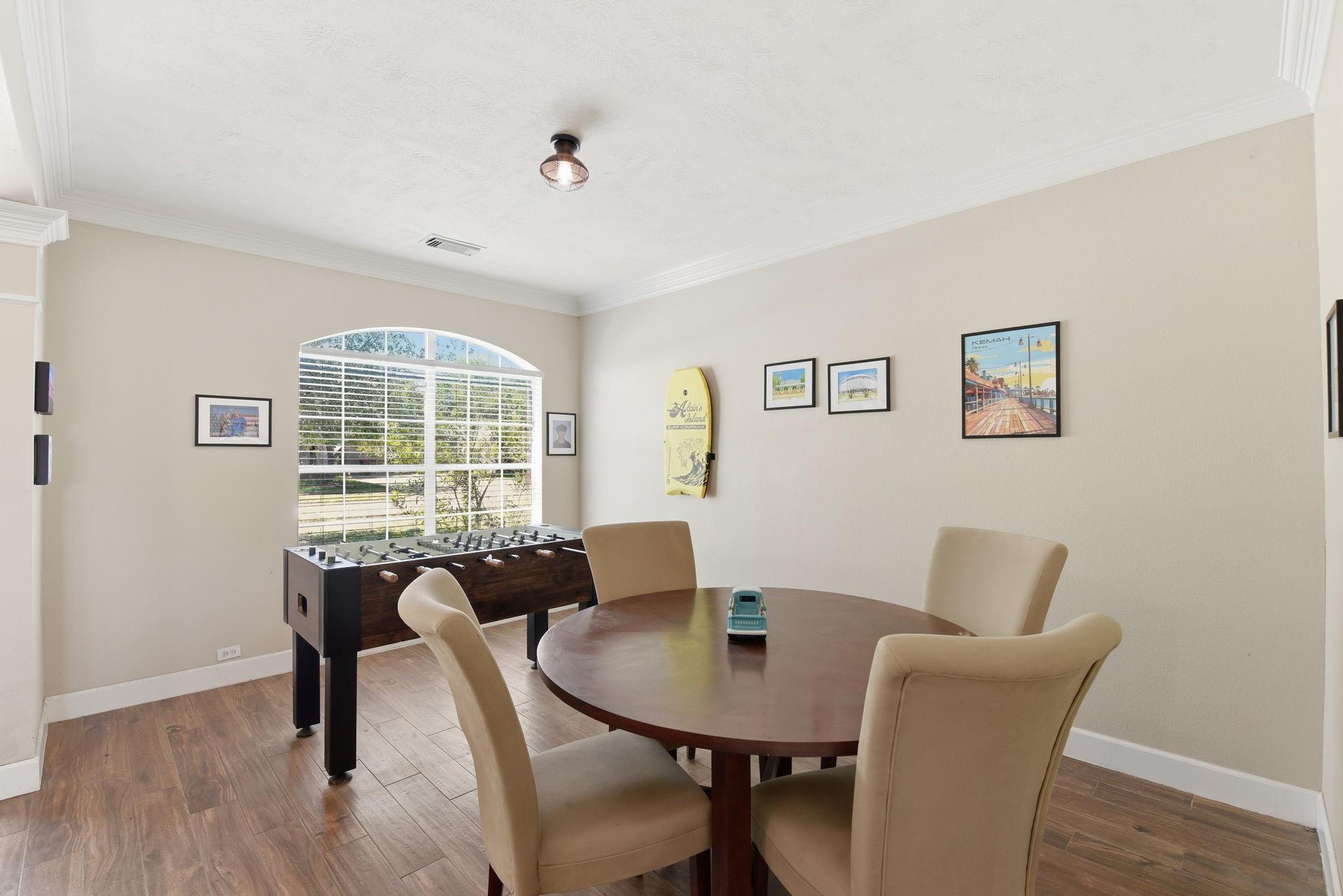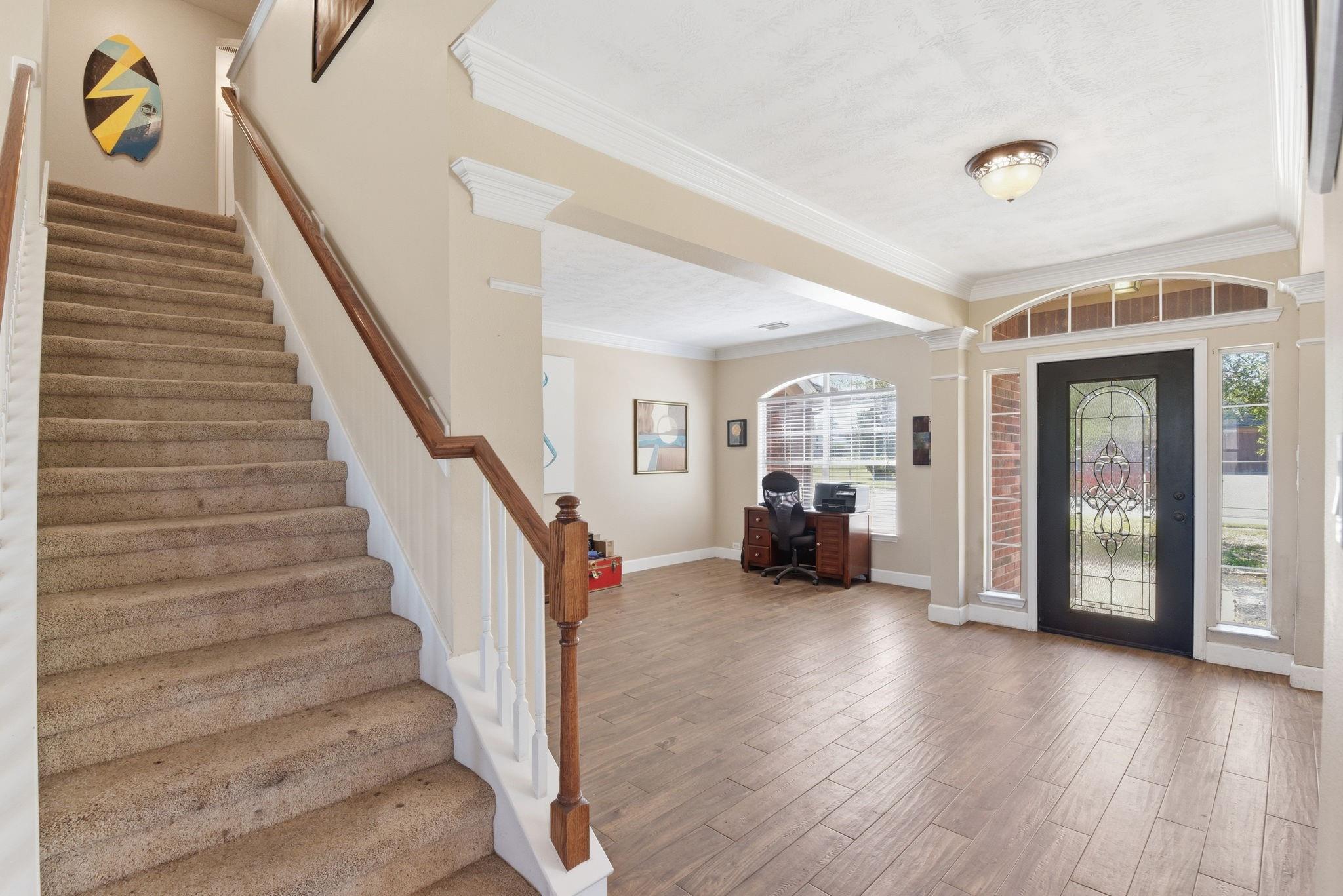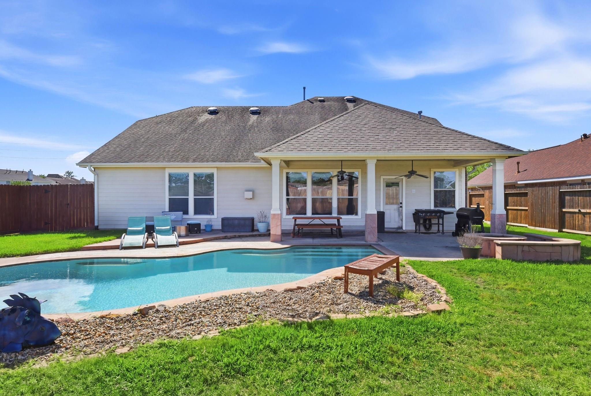 This home has a fabulous floor plan w/large rooms and the back yard is a true oasis! There is a Formal Living Room & Dining Room, then you enter the Kitchen, Family Room & Breakfast area that are all open to each other! Crown Molding, neutral paint give a warm/inviting feeling throughout. Wood look tile floors flow seamlessly through most of first floor. The kitchen has stainless appliances & a large center island! Tons of storage & a walk in pantry! Gas fireplace in the Family Room for those cold Houston nights! Primary is on the first floor & upstairs has large bedrooms, & a great Gameroom. HVAC's, including duct work were upgraded about 7 years ago. Ceiling Fans in all bedrooms. The back yard is spacious/private and has a pool, waterfall & slide feature. There is a firepit & a covered patio section. Lot backs up to and is sided by green paces so very private. Tomball ISD schools are amazing & close to great restaurants & shopping.