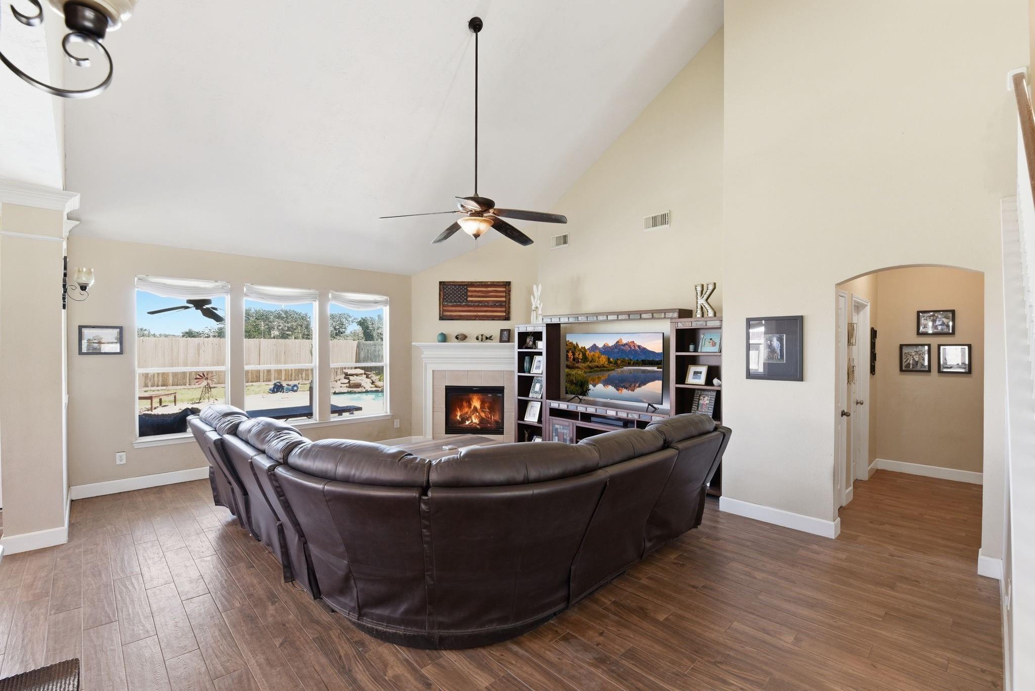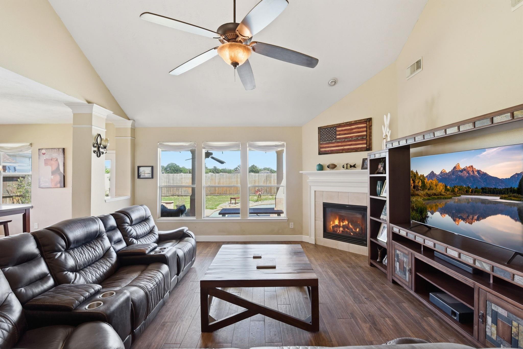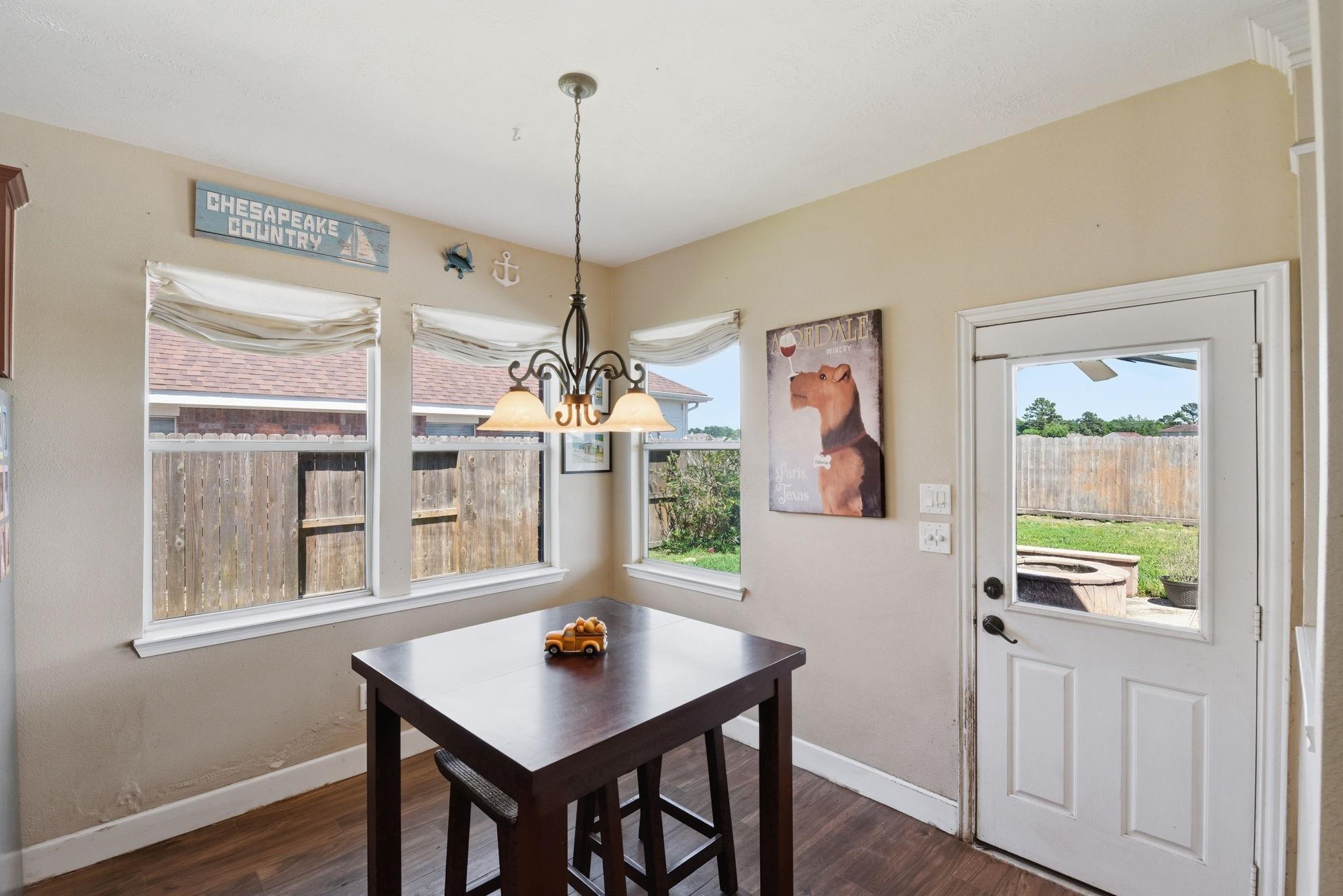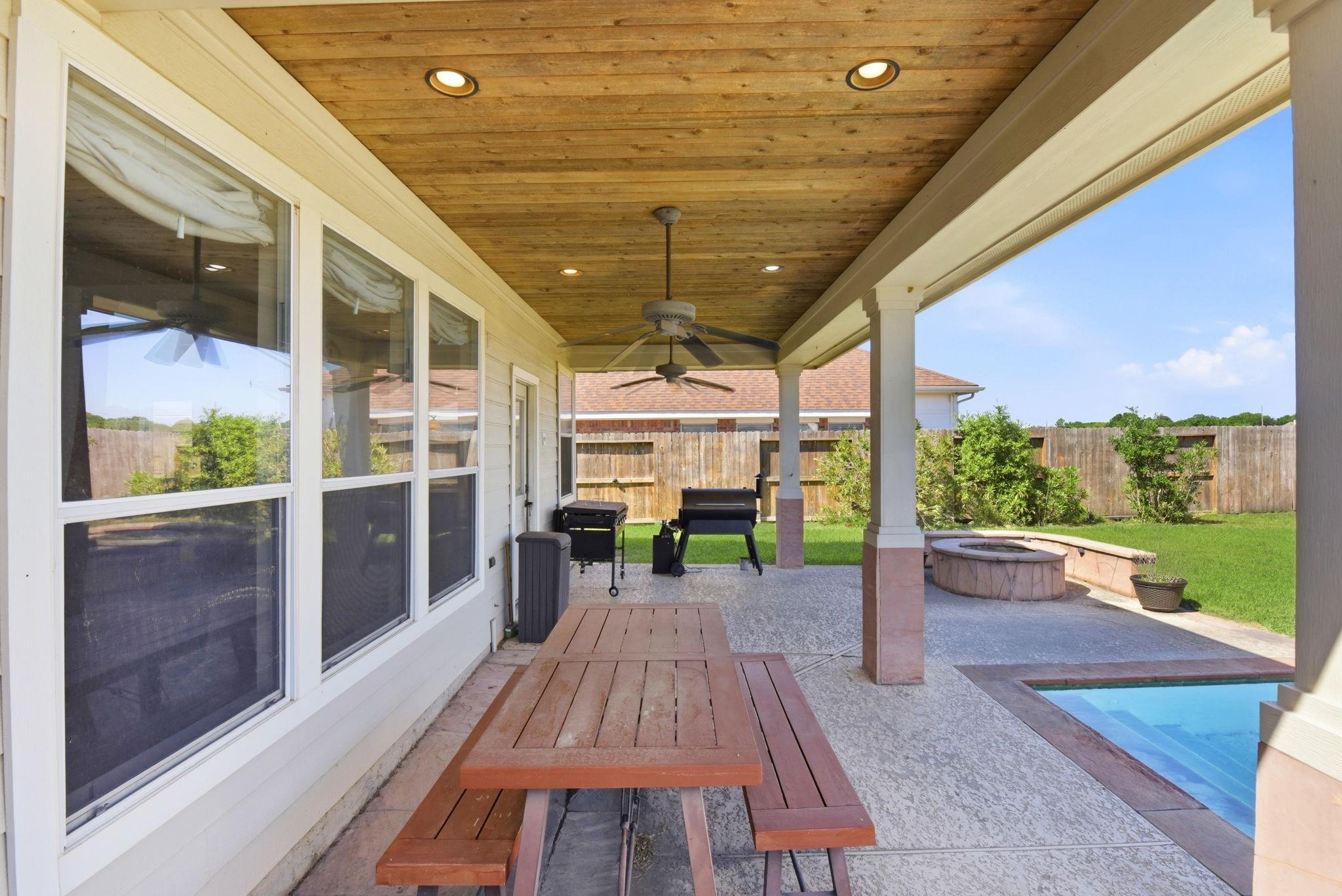 This home has a fabulous floor plan w/large rooms and the back yard is a true oasis! There is a Formal Living Room & Dining Room, then you enter the Kitchen, Family Room & Breakfast area that are all open to each other! Crown Molding, neutral paint give a warm/inviting feeling throughout. Wood look tile floors flow seamlessly through most of first floor. The kitchen has stainless appliances & a large center island! Tons of storage & a walk in pantry! Gas fireplace in the Family Room for those cold Houston nights! Primary is on the first floor & upstairs has large bedrooms, & a great Gameroom. HVAC's, including duct work were upgraded about 7 years ago. Ceiling Fans in all bedrooms. The back yard is spacious/private and has a pool, waterfall & slide feature. There is a firepit & a covered patio section. Lot backs up to and is sided by green paces so very private. Tomball ISD schools are amazing & close to great restaurants & shopping.