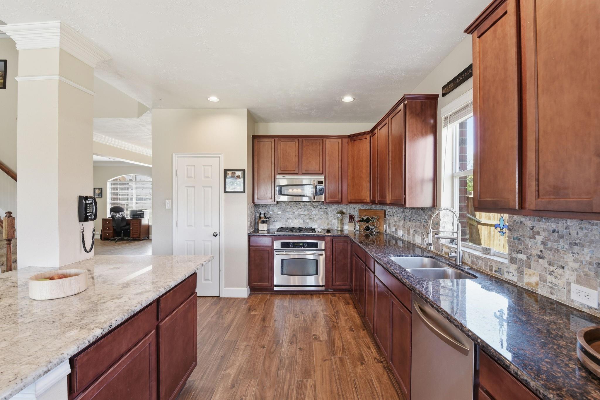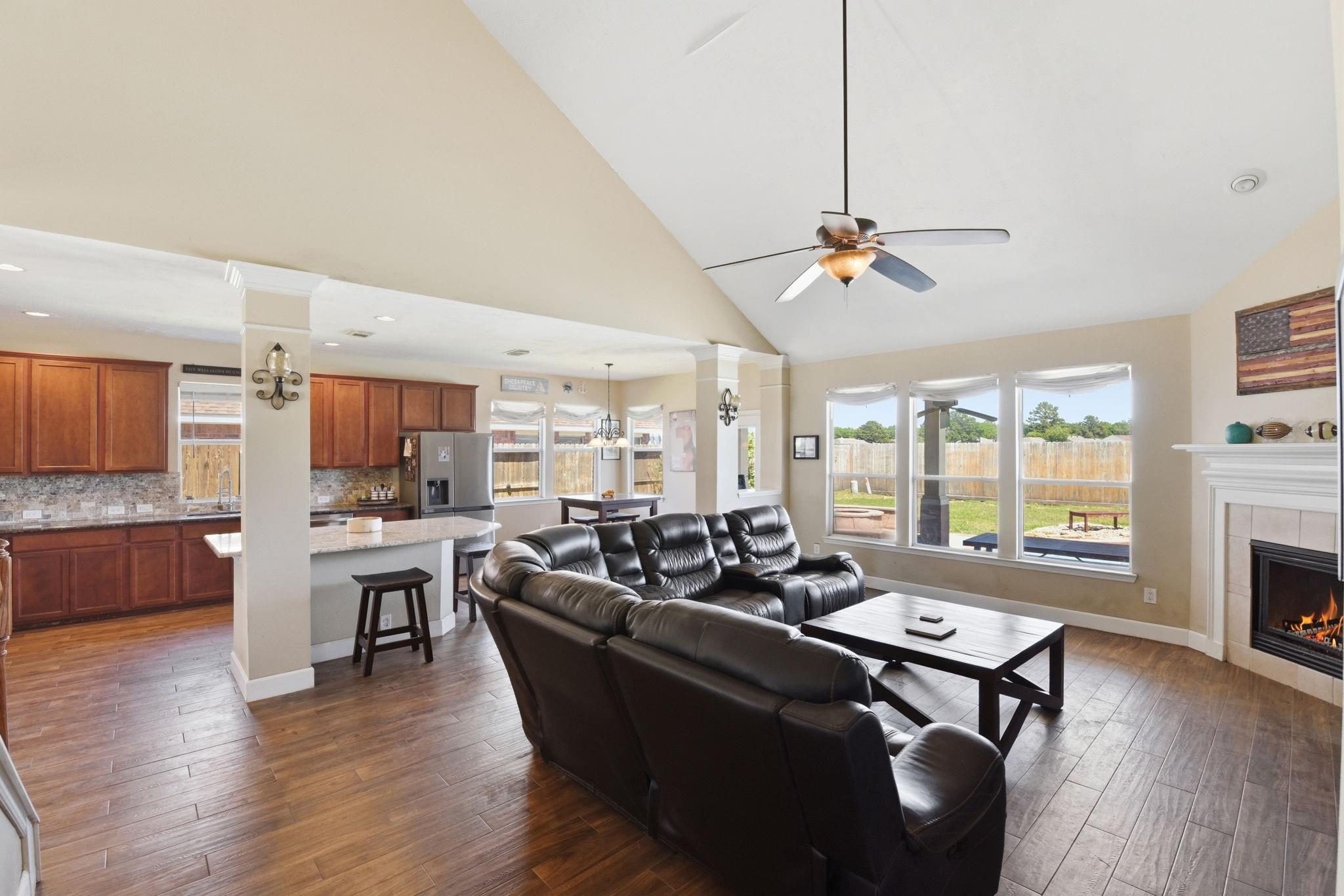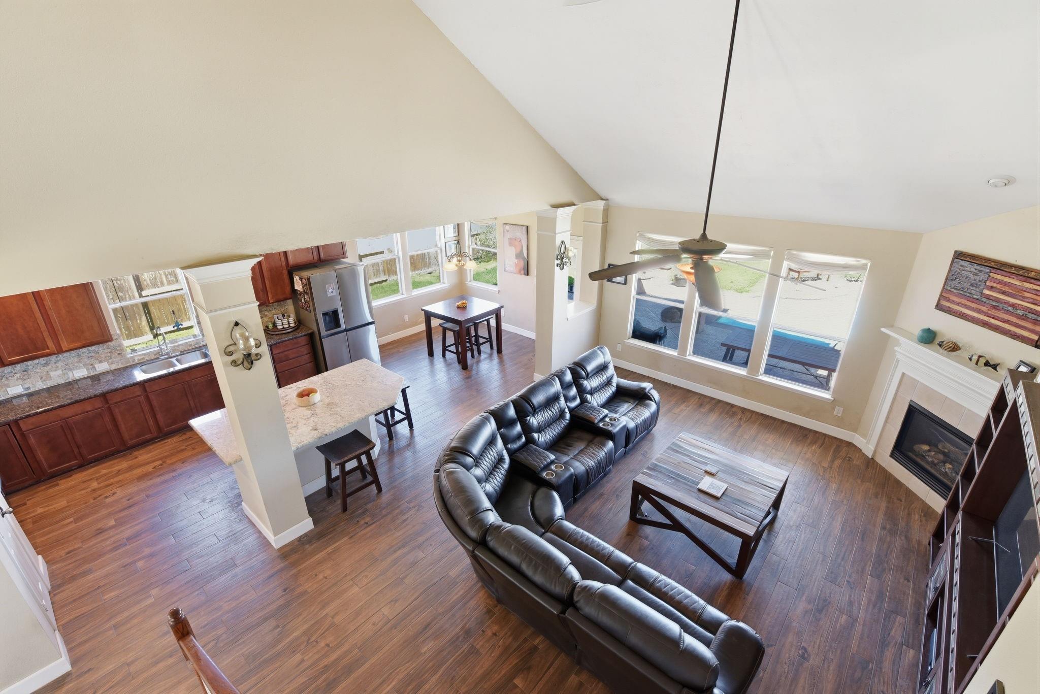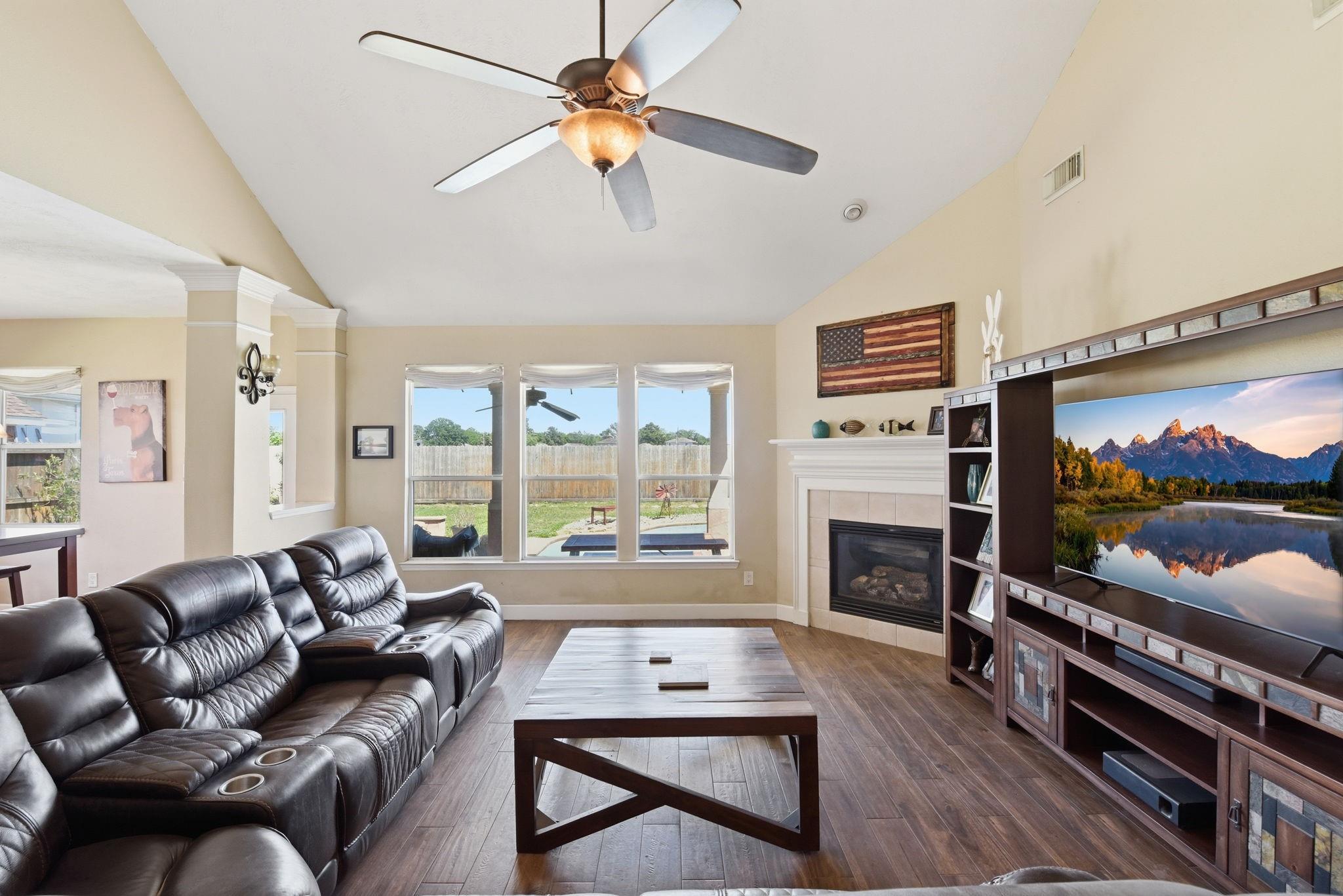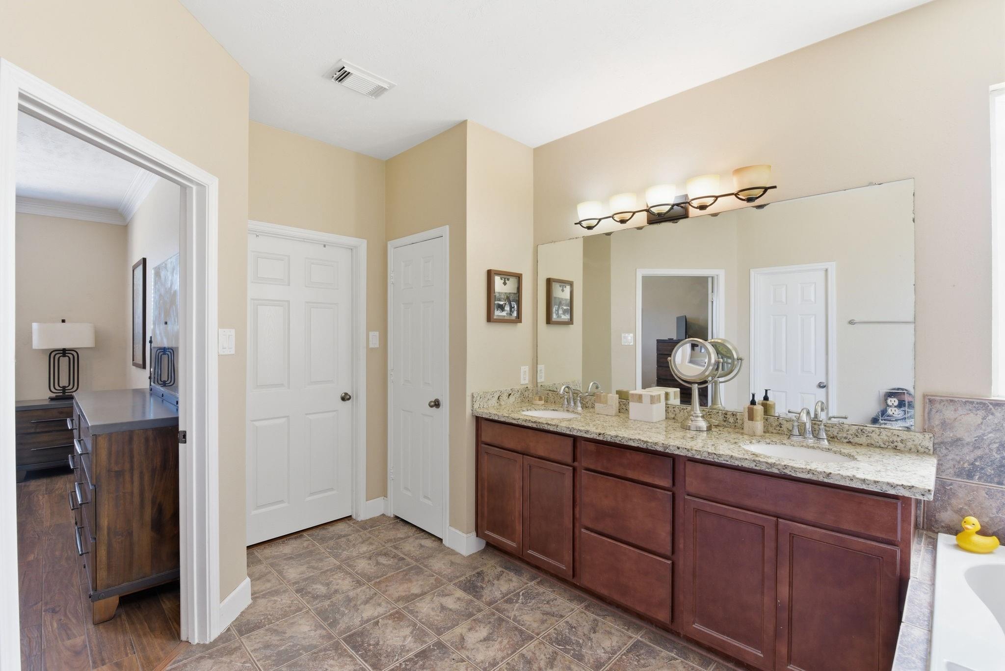 This home has a fabulous floor plan w/large rooms and the back yard is a true oasis! There is a Formal Living Room & Dining Room, then you enter the Kitchen, Family Room & Breakfast area that are all open to each other! Crown Molding, neutral paint give a warm/inviting feeling throughout. Wood look tile floors flow seamlessly through most of first floor. The kitchen has stainless appliances & a large center island! Tons of storage & a walk in pantry! Gas fireplace in the Family Room for those cold Houston nights! Primary is on the first floor & upstairs has large bedrooms, & a great Gameroom. HVAC's, including duct work were upgraded about 7 years ago. Ceiling Fans in all bedrooms. The back yard is spacious/private and has a pool, waterfall & slide feature. There is a firepit & a covered patio section. Lot backs up to and is sided by green paces so very private. Tomball ISD schools are amazing & close to great restaurants & shopping.