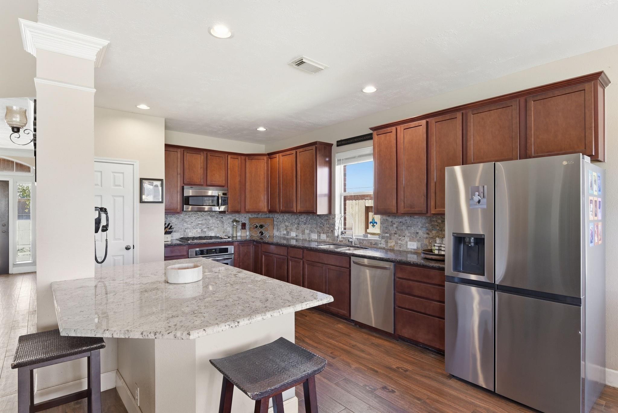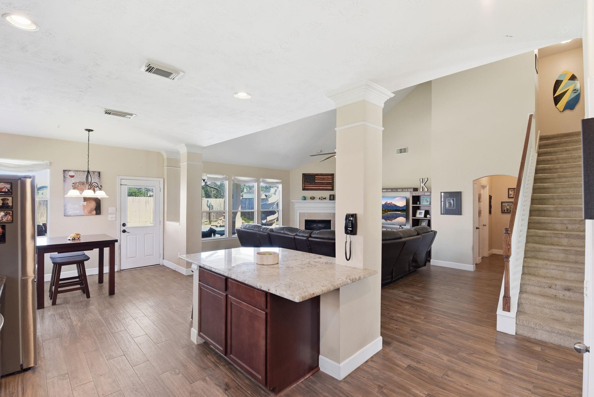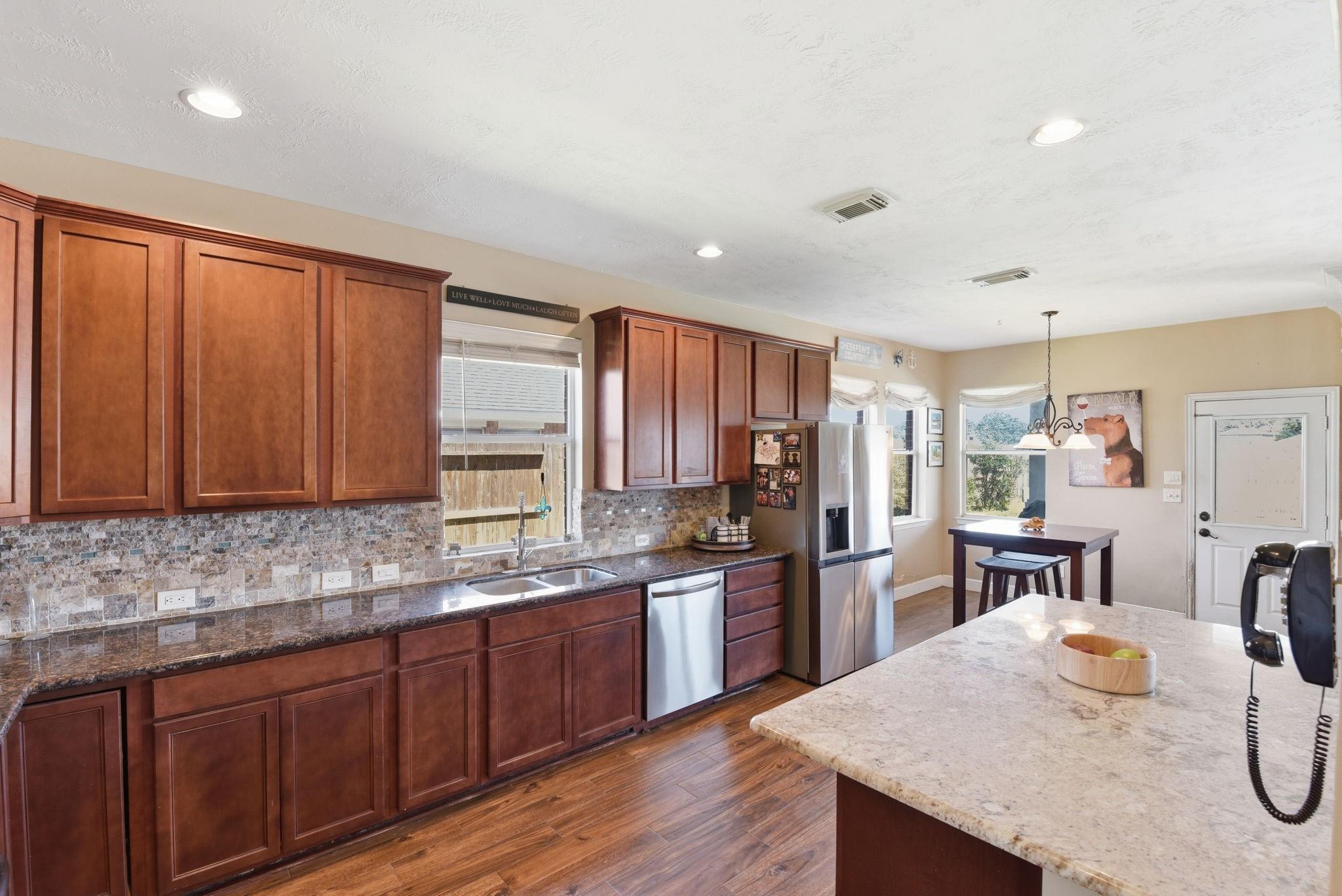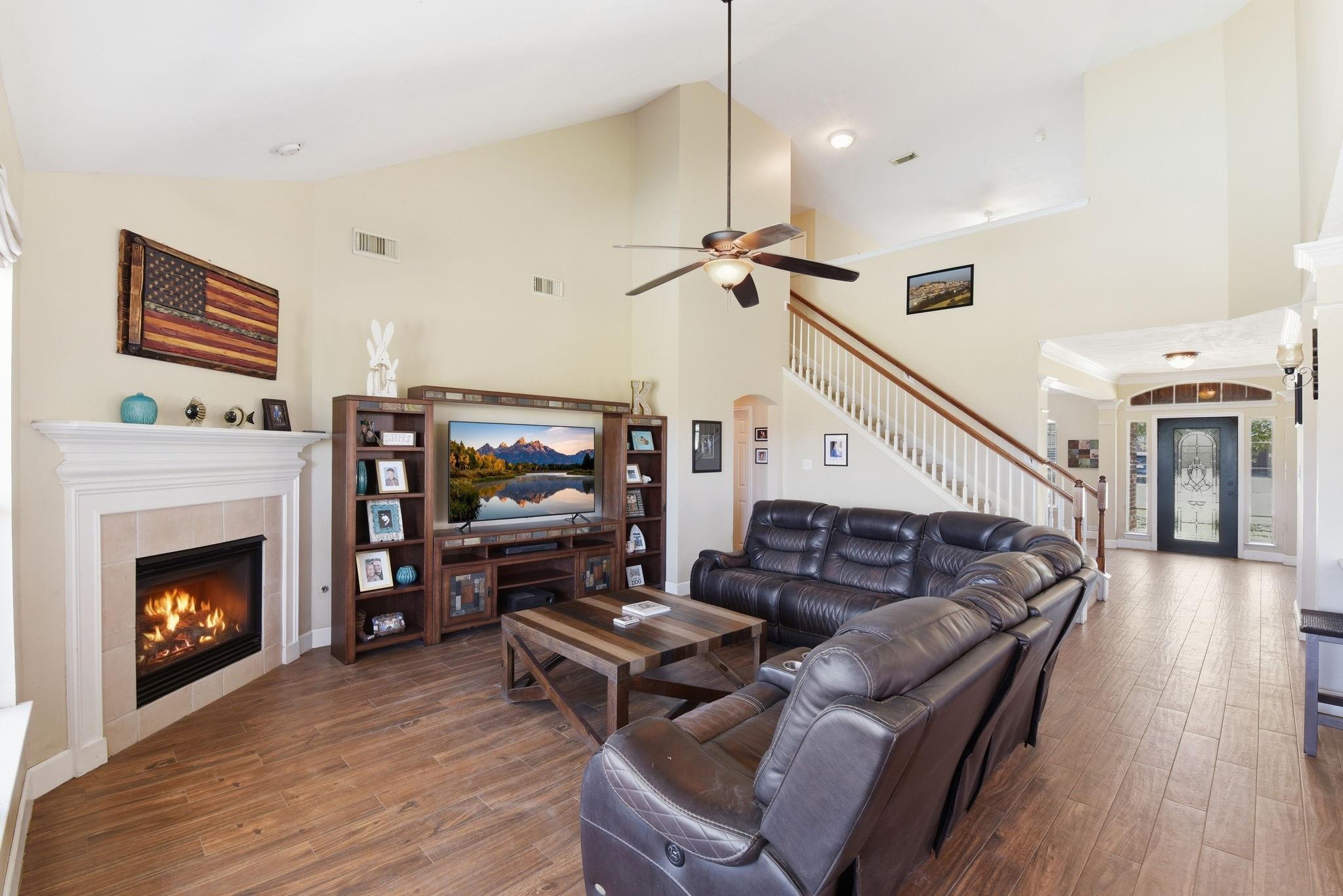 This home has a fabulous floor plan w/large rooms and the back yard is a true oasis! There is a Formal Living Room & Dining Room, then you enter the Kitchen, Family Room & Breakfast area that are all open to each other! Crown Molding, neutral paint give a warm/inviting feeling throughout. Wood look tile floors flow seamlessly through most of first floor. The kitchen has stainless appliances & a large center island! Tons of storage & a walk in pantry! Gas fireplace in the Family Room for those cold Houston nights! Primary is on the first floor & upstairs has large bedrooms, & a great Gameroom. HVAC's, including duct work were upgraded about 7 years ago. Ceiling Fans in all bedrooms. The back yard is spacious/private and has a pool, waterfall & slide feature. There is a firepit & a covered patio section. Lot backs up to and is sided by green paces so very private. Tomball ISD schools are amazing & close to great restaurants & shopping.