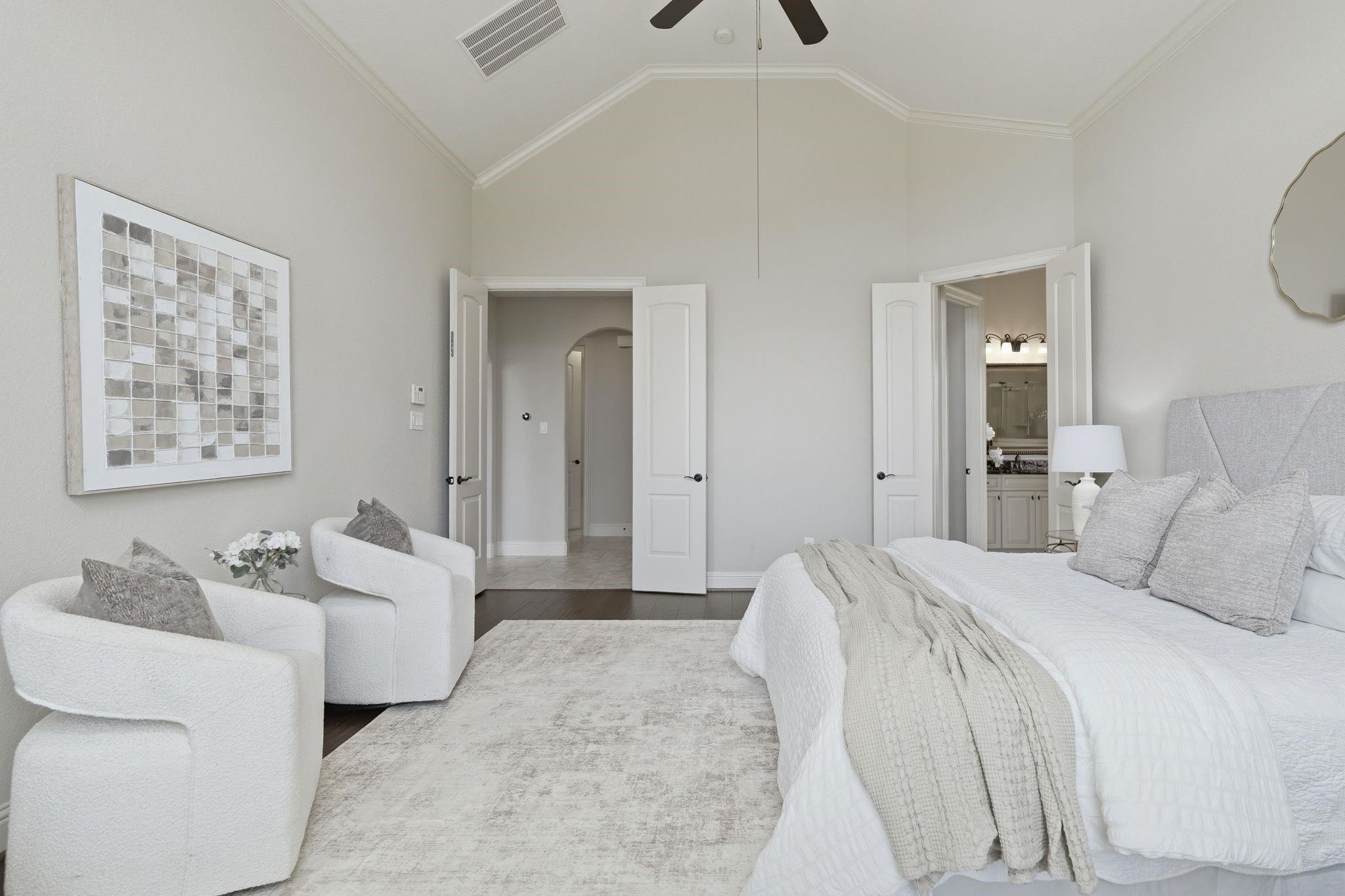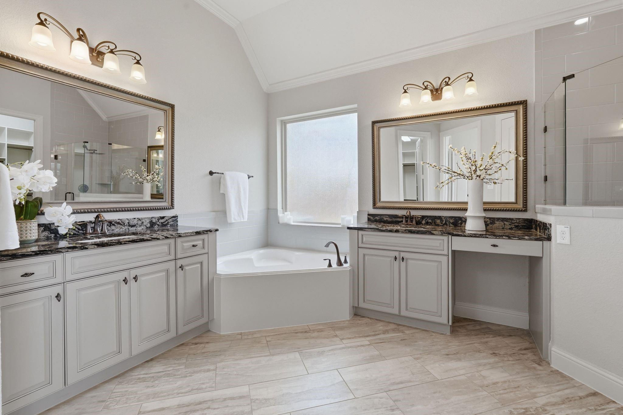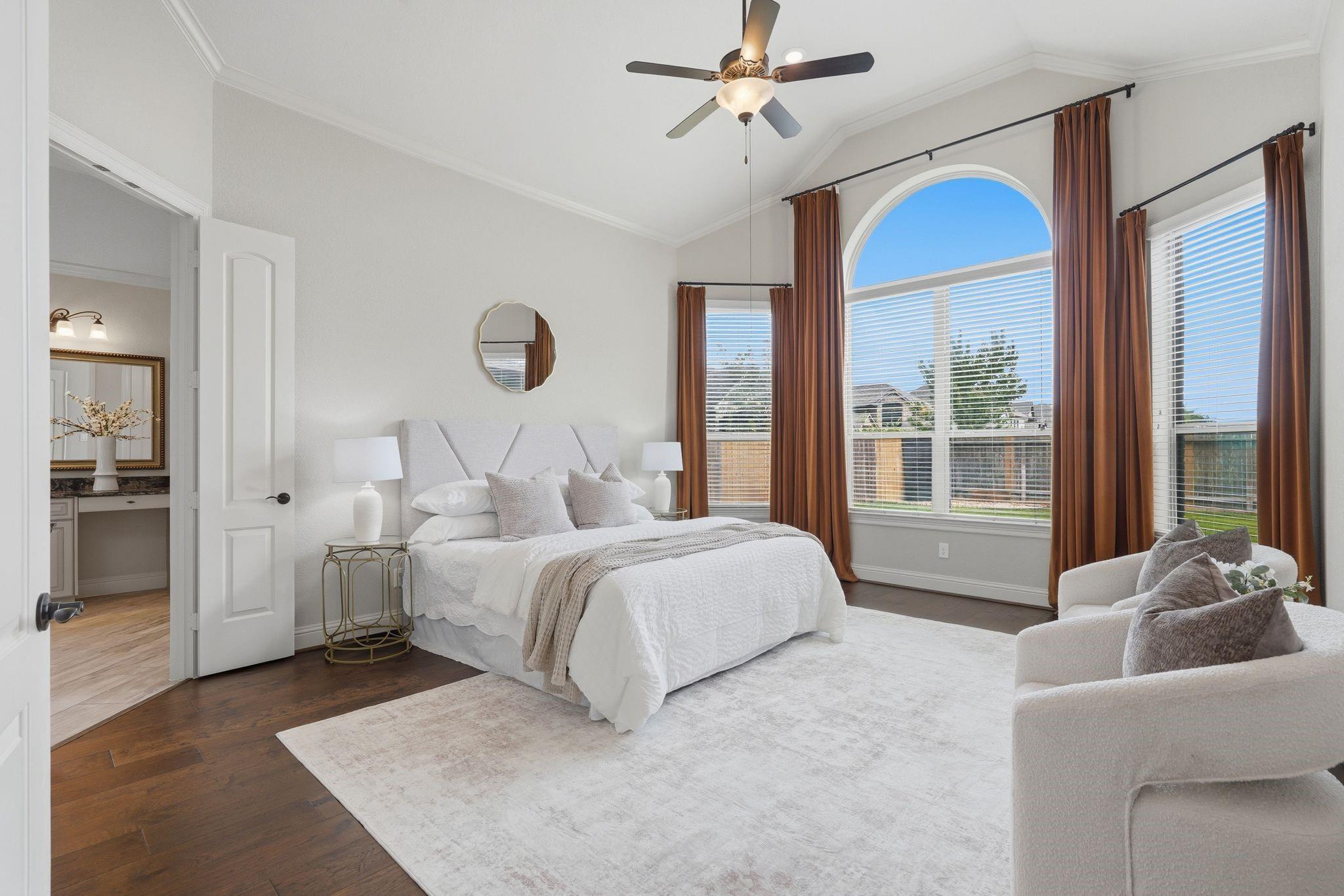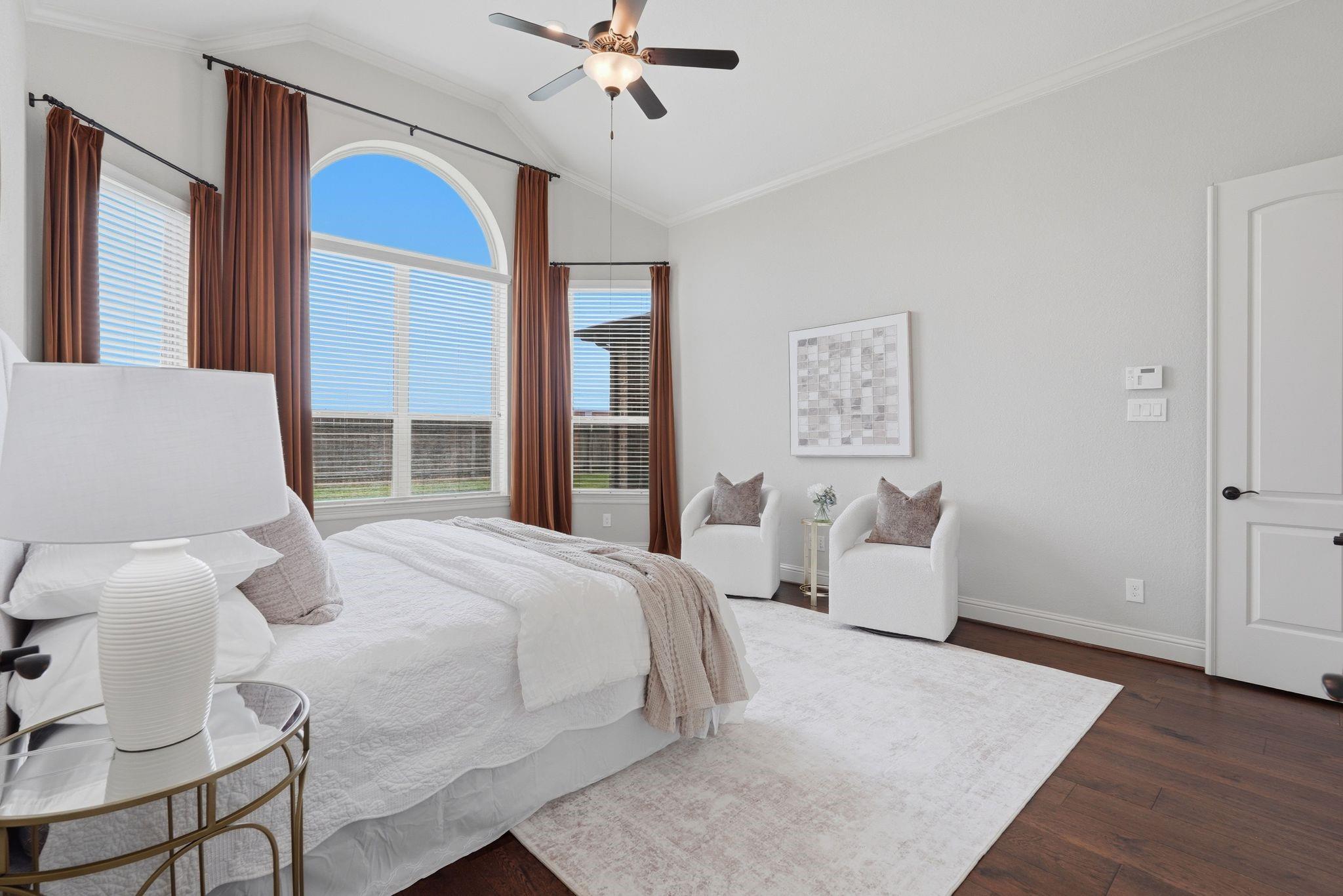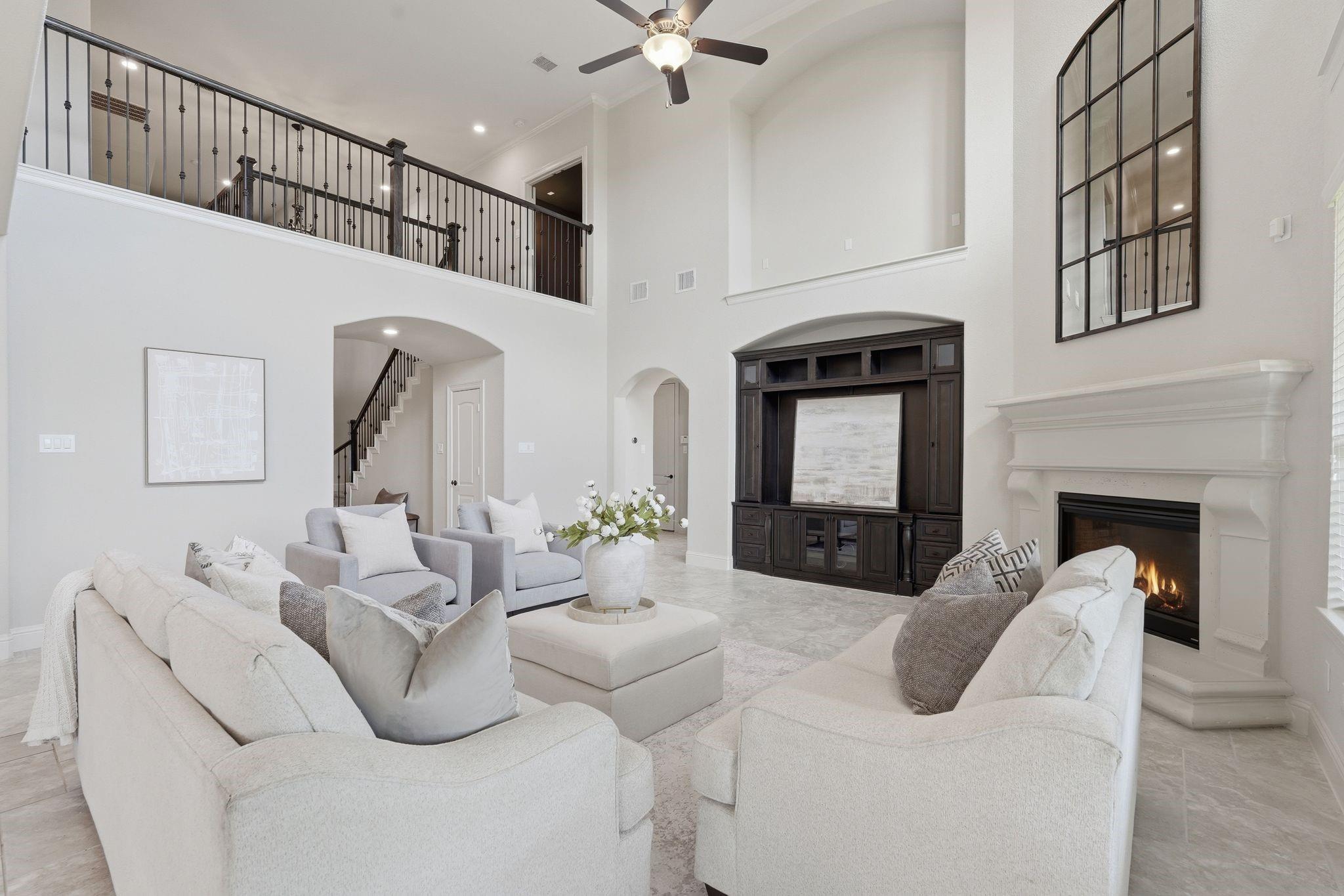 Step into this stunning home in Wildwood at Northpointe, a gated community featuring a rare 4-car garage and no back neighbors for added privacy. A grand entry with soaring ceilings opens to a bright, open-concept layout. Just off the entry are a formal dining room and a flexible space ideal for a home office or lounge. The two-story living room showcases a striking fireplace and flows into a well-appointed kitchen with abundant cabinetry, generous counter space, double ovens, and a butler’s pantry—perfect for entertaining. The private primary suite offers a spa-like bath with dual vanities and separate his-and-hers walk-in closets, with an additional bedroom & full bath downstairs. Upstairs includes a game room and media room. With 4 bedrooms and 4 full baths, this home offers both comfort and functionality. Enjoy the spacious backyard and covered patio. Conveniently located near top-rated schools, shopping, dining, and major freeways. Schedule your private showing today!