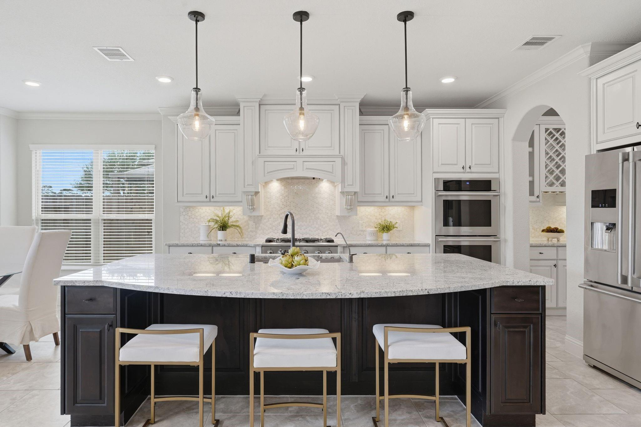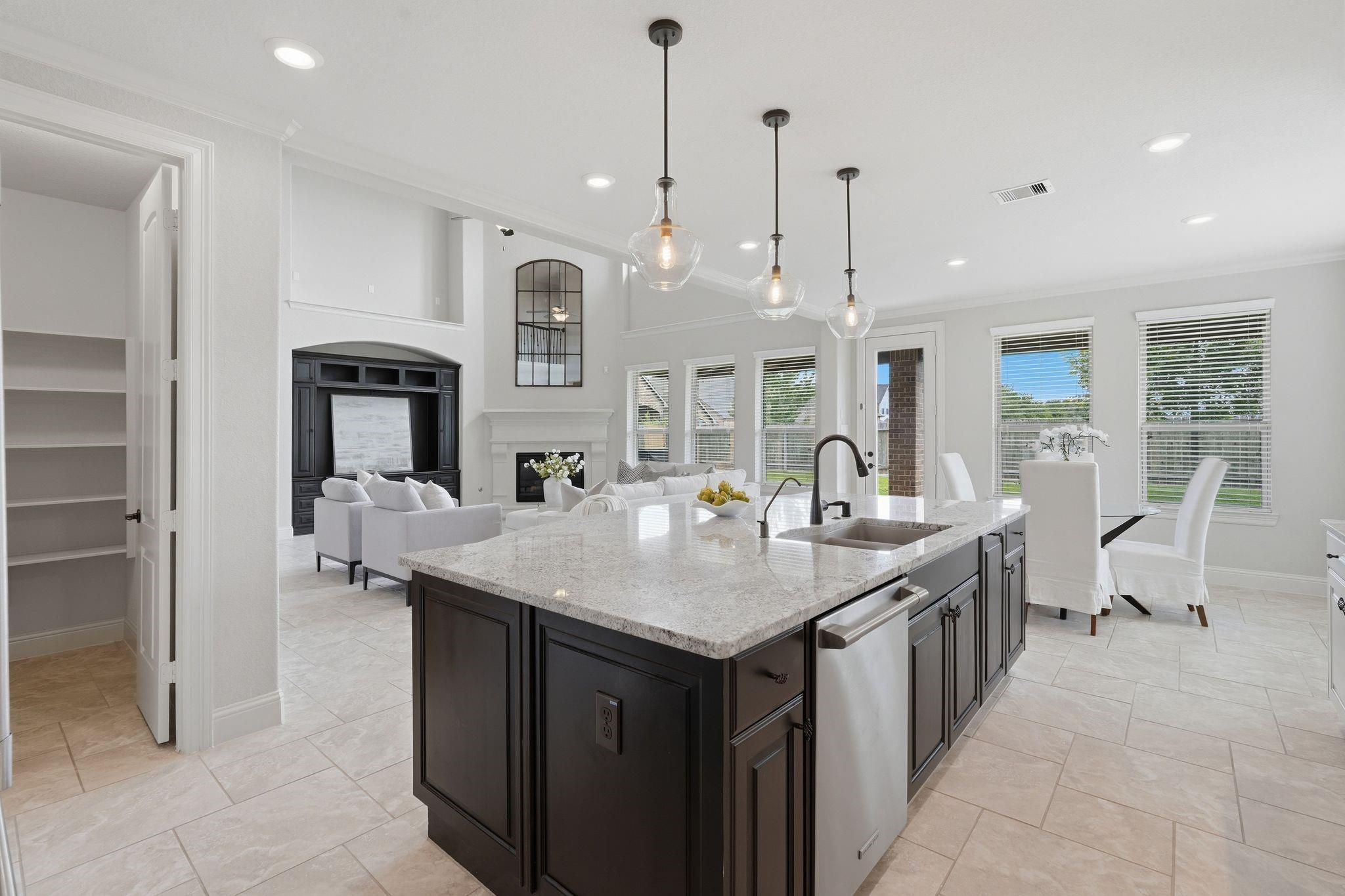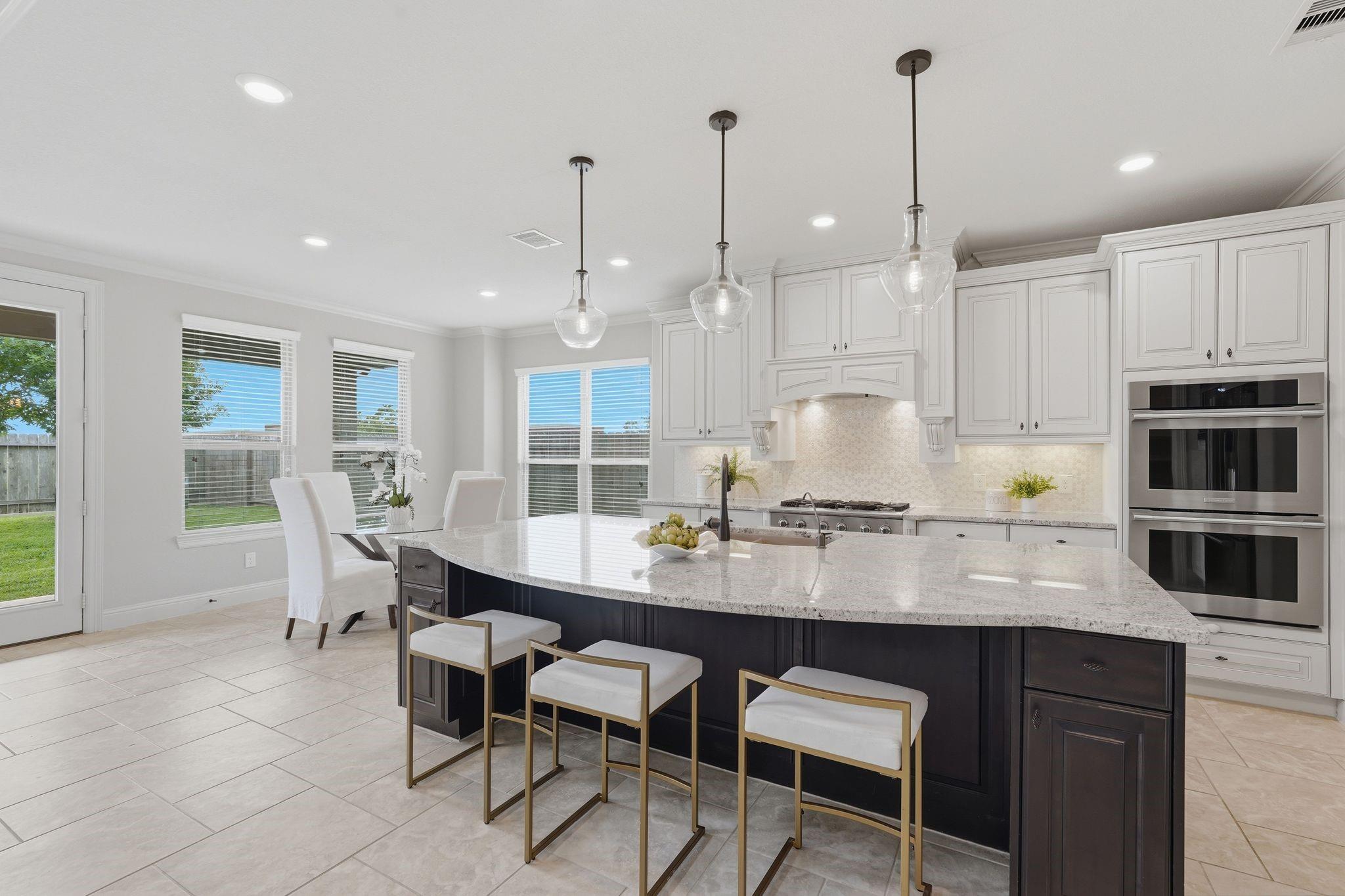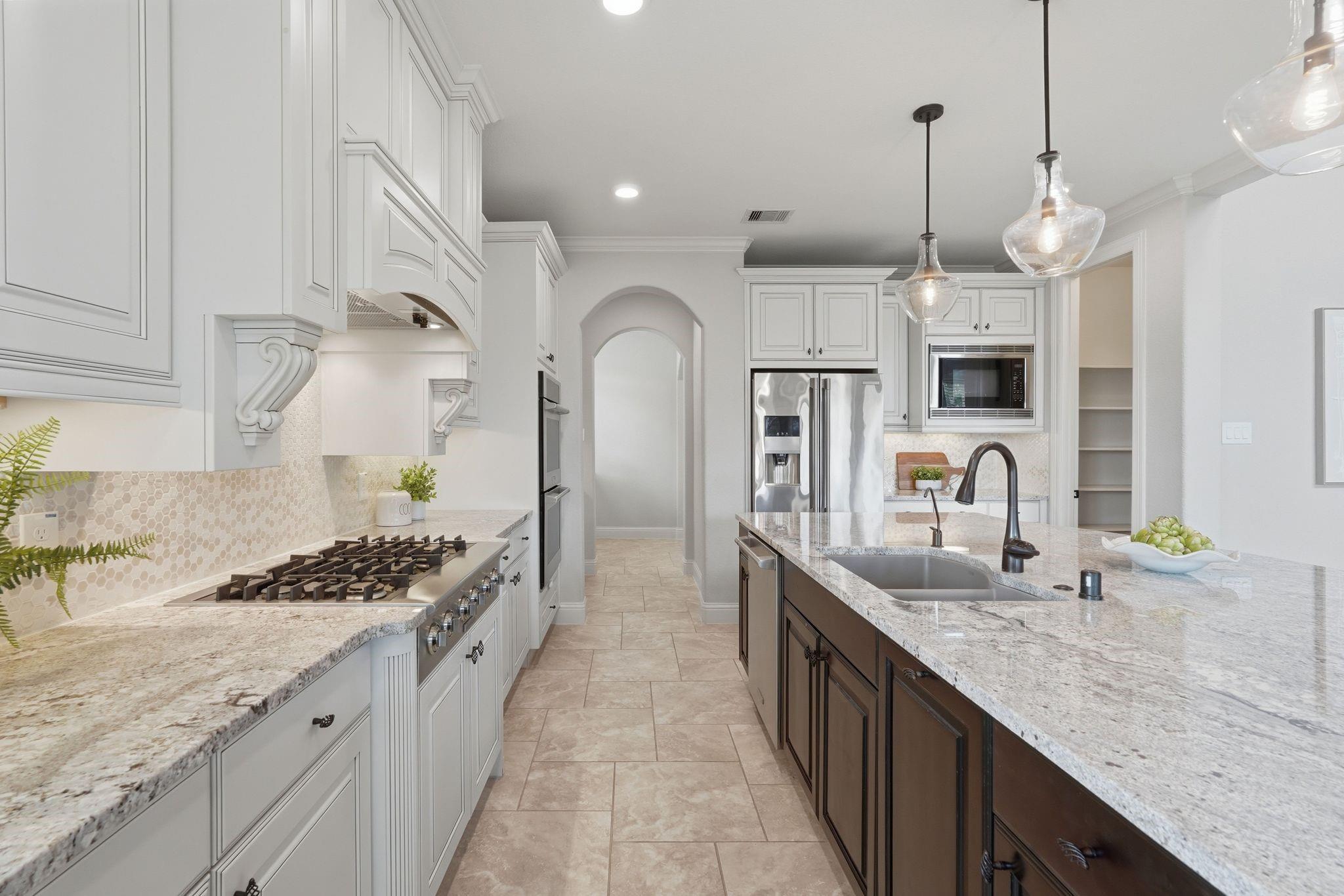 InteriorFireplace:1/Gaslog FireplaceFloors:Carpet,Tile,WoodBathroom Description:Full Secondary Bathroom Down,Primary Bath: Separate Shower,Primary Bath: Soaking Tub,Secondary Bath(s): Tub/Shower ComboBedroom Desc:2 Bedrooms Down,2 Bedrooms Up,En-Suite Bath,Primary Bed - 1st Floor,Sitting Area,Split Plan,Walk-In ClosetKitchen Desc:Breakfast Bar,Butler Pantry,Island w/o Cooktop,Kitchen open to Family Room,Pantry,Under Cabinet Lighting,Walk-in PantryRoom Description:1 Living Area,Breakfast Room,Butlers Pantry,Entry,Family Room,Formal Dining,Gameroom Up,Home Office/Study,Kitchen/Dining Combo,Living Area - 1st Floor,Living/Dining Combo,Media,Utility Room in HouseHeating:Central GasCooling:Central ElectricConnections:Electric Dryer Connections,Gas Dryer Connections,Washer ConnectionsDishwasher:YesDisposal:YesCompactor:NoMicrowave:YesRange:Gas RangeOven:Double Oven,Electric OvenIce Maker:NoEnergy Feature:Ceiling Fans,Digital Program ThermostatInterior:Alarm System - Owned,Crown Molding,Dryer Included,Fire/Smoke Alarm,Formal Entry/Foyer,High Ceiling,Refrigerator Included,Vaulted Ceiling,Washer Included,Window Coverings