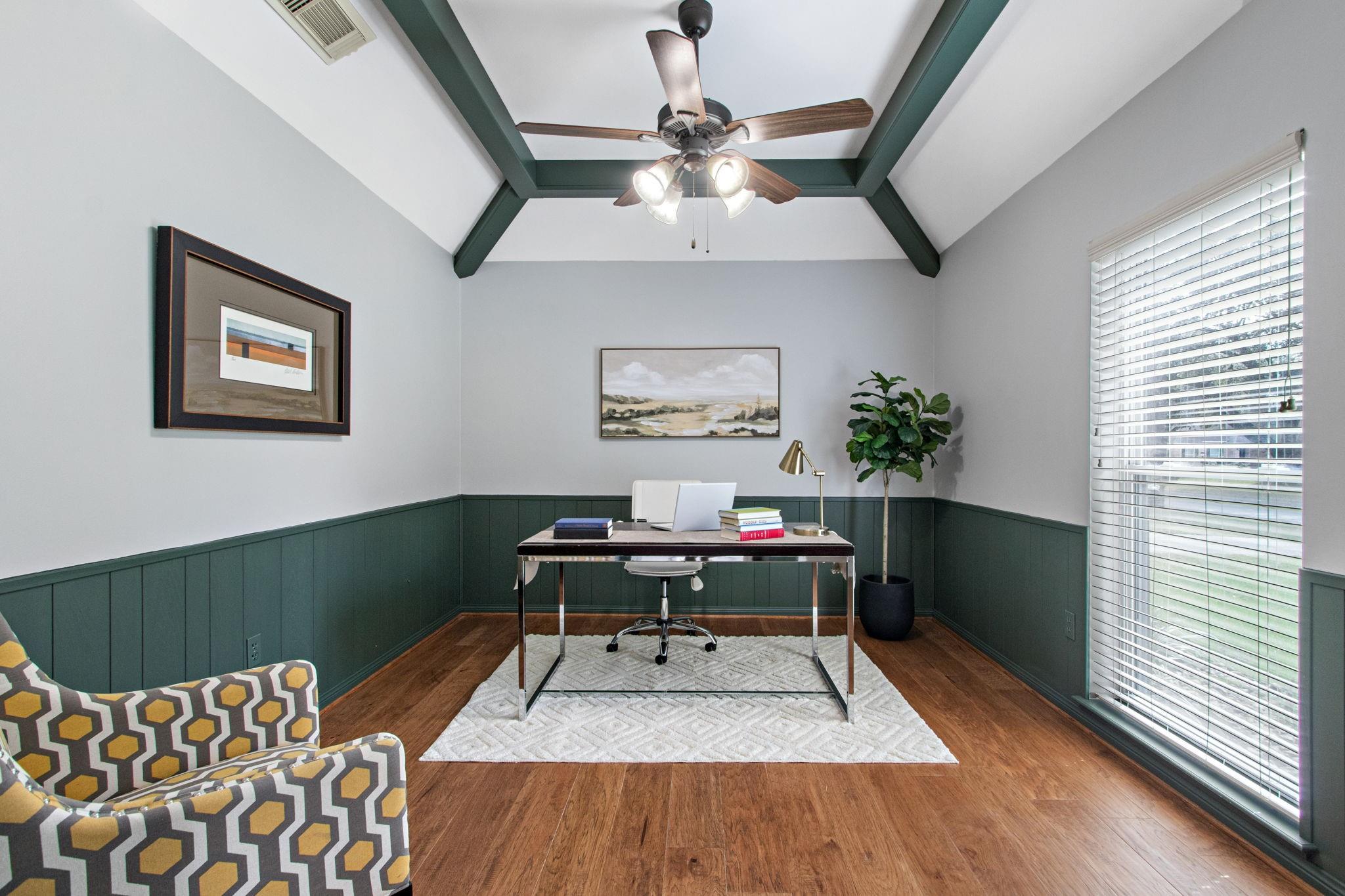 This spacious, move-in ready home offers pride of ownership in the coveted, tree-lined community of Huntwick Forest. The home blends architectural charm and quality craftmanship w thoughtful updates designed for today’s Buyer: Freshly painted interior; LED lighting and hardware; engineered hardwoods (no carpet); PEX plumbing; EE windows, doors and a 2025 15-Seer Carrier AC w new ductwork. You’ll love the custom built-ins, crown molding, wood beams and brick fireplace. Arched windows and a Bay window fill the home w sunlight and provide garden views. The home offers tons of storage and valuable workspace with 33 Kitchen cabinets, granite counters, 13' walk-in pantry, oversized closets and vanities. The homeowners were avid gardeners and originally designed the yard as a serene pollinator space w flowering plants and trees to attract Butterflies, Hummingbirds, Sparrows, Bluejays and Robins. It’s a great space for kids and pets to explore or just stretching out and enjoying the good