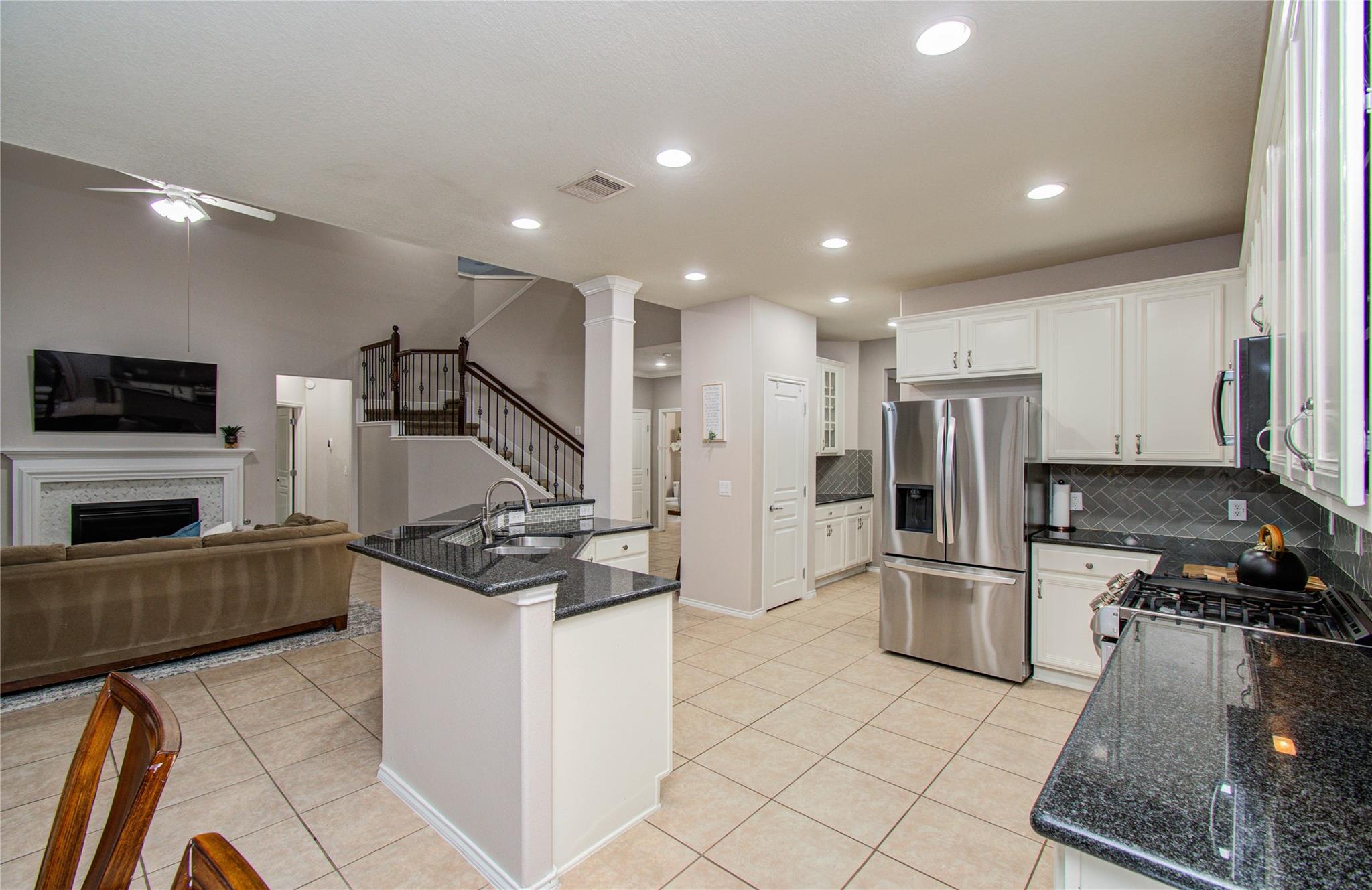 InteriorFireplace:1/Gas ConnectionsFloors:Carpet,Tile,WoodCountertop:GraniteBathroom Description:Hollywood Bath,Primary Bath: Jetted Tub,Primary Bath: Separate Shower,Secondary Bath(s): Double SinksBedroom Desc:3 Bedrooms Up,Primary Bed - 1st Floor,Sitting Area,Walk-In ClosetKitchen Desc:Breakfast Bar,Butler Pantry,Kitchen open to Family RoomRoom Description:Butlers Pantry,Family Room,Formal Dining,Gameroom Up,Home Office/Study,Living Area - 1st Floor,Living Area - 2nd Floor,Utility Room in HouseHeating:Central Gas,ZonedCooling:Central Electric,ZonedConnections:Gas Dryer ConnectionsDishwasher:YesDisposal:YesMicrowave:YesRange:Gas RangeOven:Gas Oven,Single OvenEnergy Feature:Ceiling Fans,Digital Program ThermostatInterior:Alarm System - Owned
