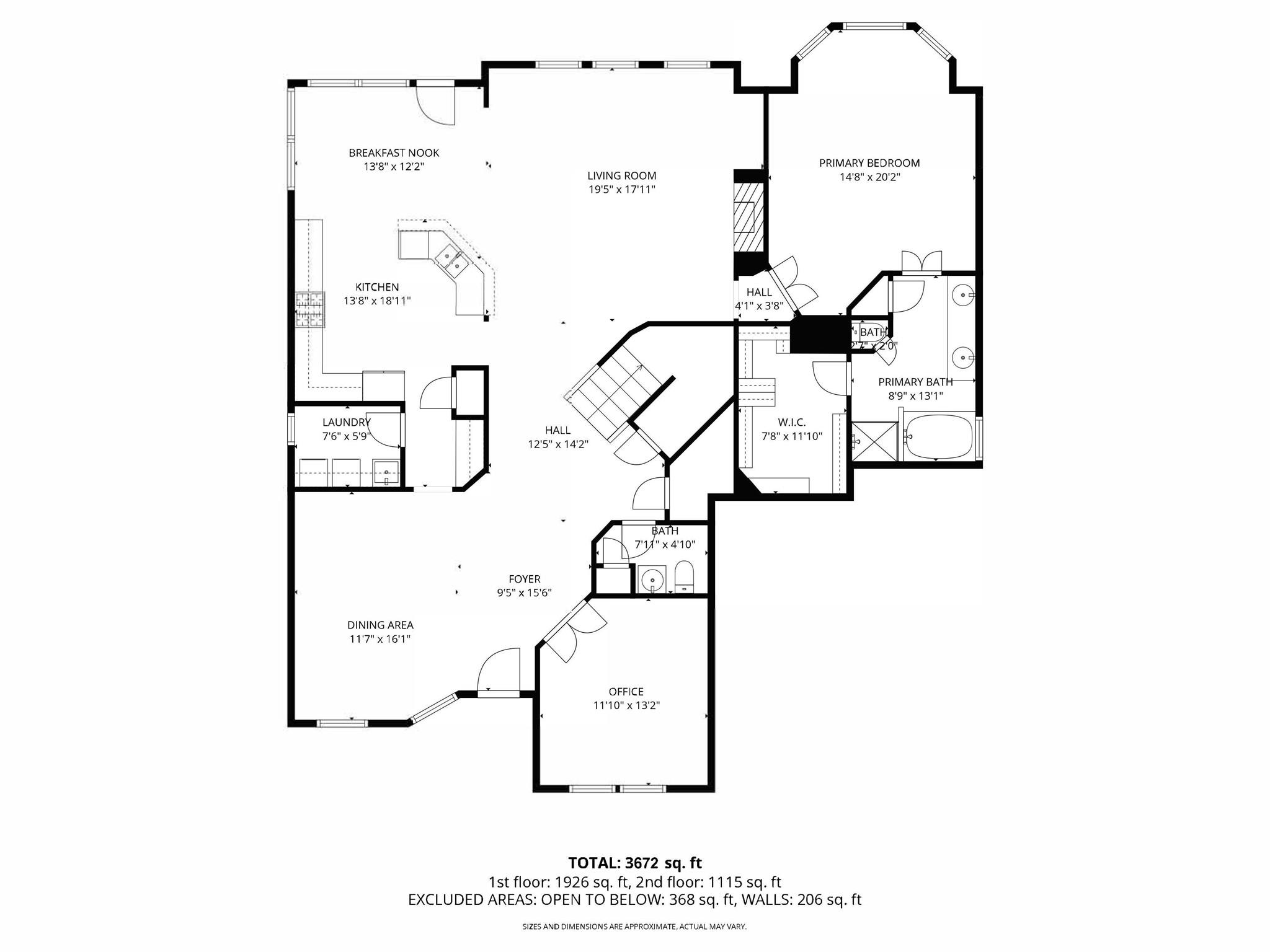 First FloorFamily Room:18x16Dining:12x16Kitchen:15x20Breakfast:14x12Primary Bedroom:15x22Home Office/Study:12x13Utility Room:8x6