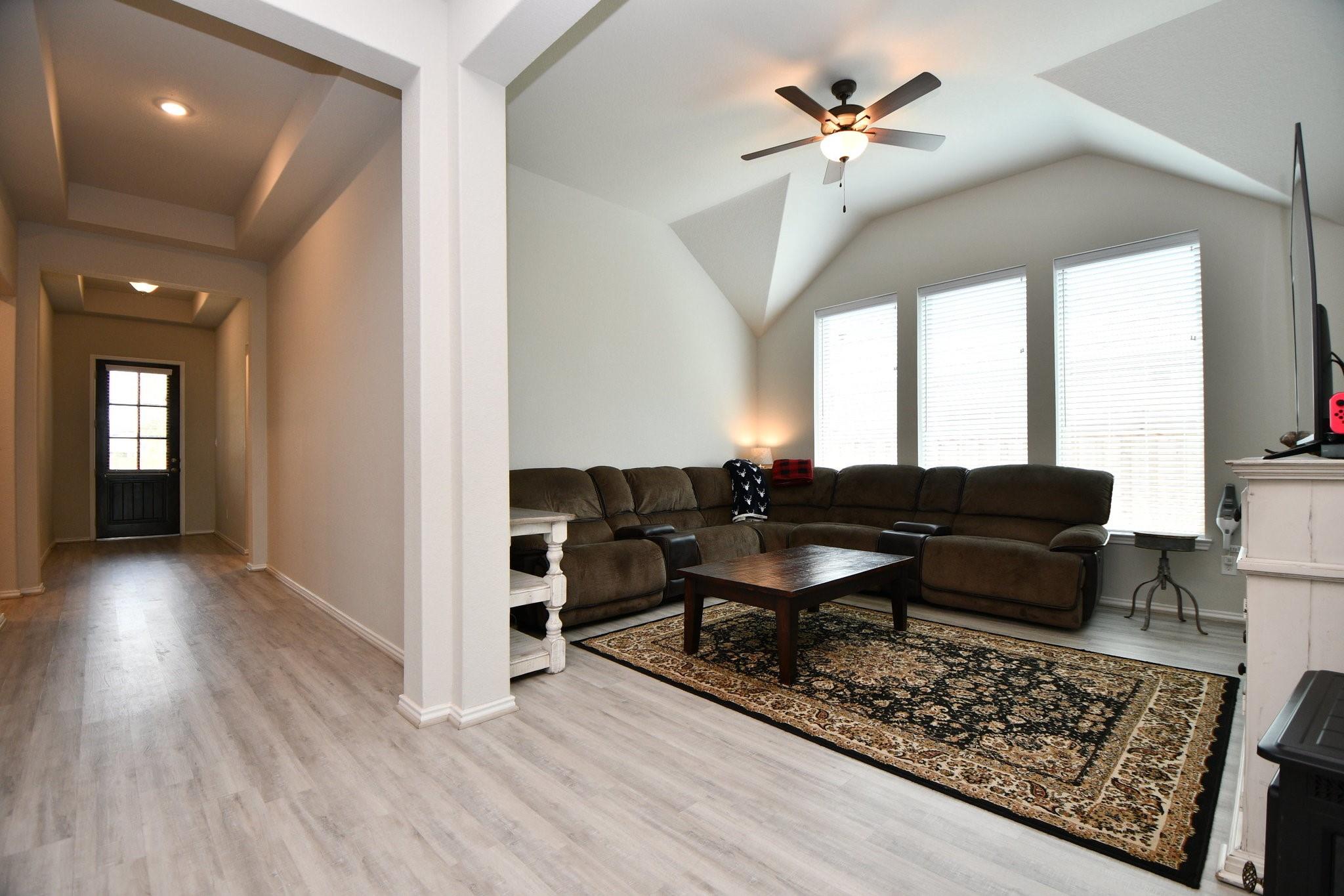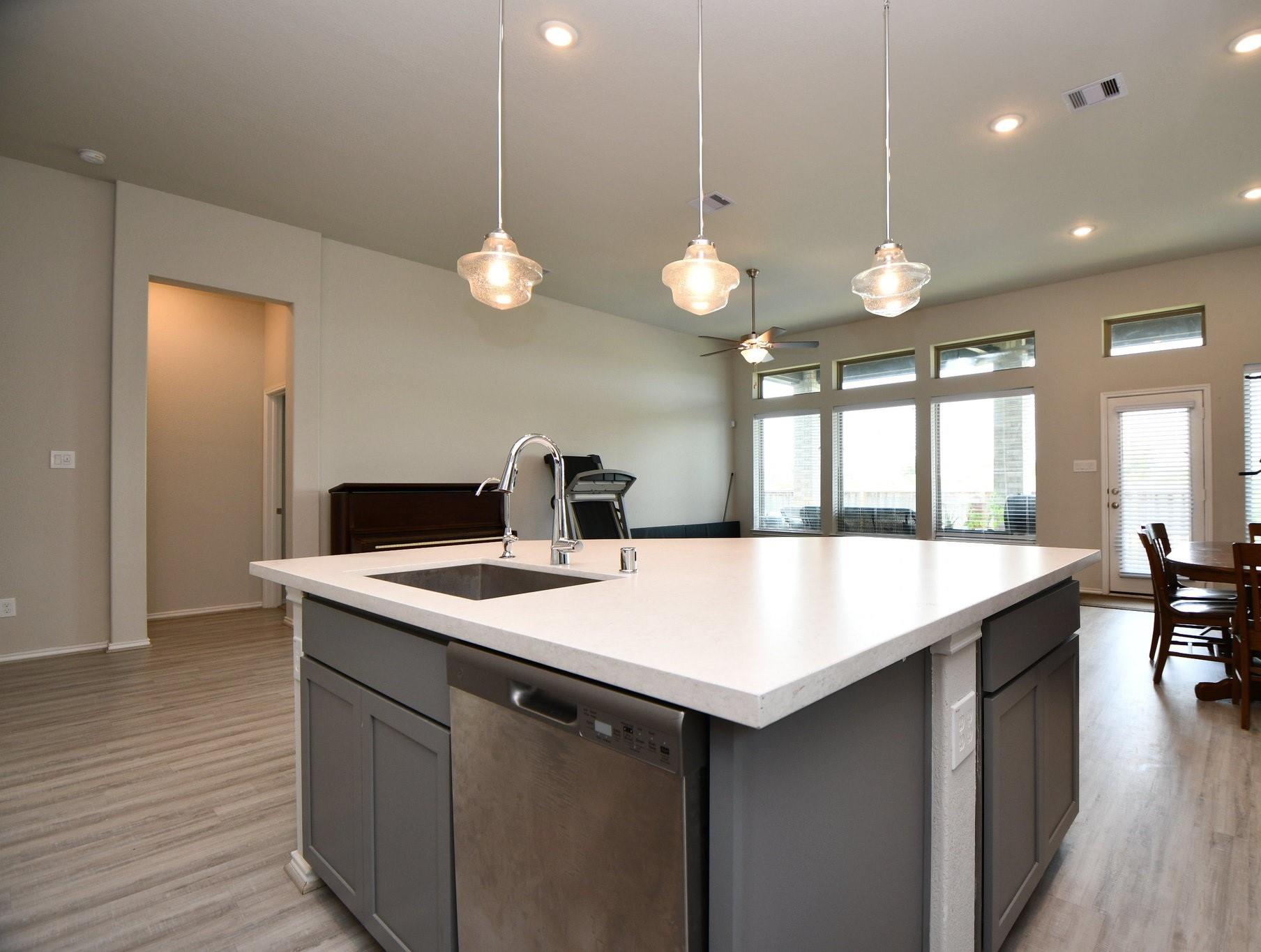 Quiet Street, Empty, Ready to move in today! This one-story Coventry home offers high ceilings with space, style, functionality and energy efficiency. A floor plan with four bedrooms, three bathrooms and a study for a home office with double glass doors. The kitchen is at the heart of the home, featuring modern finishes, ample counter/storage space overlooking the family and dining room area with an oversized island. The primary suite is complete with an elegant ensuite bath with two sinks and two walk-in closets. A two-car garage provides ample storage and parking space with a mud room entry making this home both practical and inviting for a variety of lifestyles. The covered back porch has space for grilling and provides a retreat to watch unobstructed sunsets in an easy to maintain backyard that includes a water sprinkler system. (private no neighbors behind for over a mile). Beautiful amenities in the Dunham Pointe neighborhood which is inside the Cy-fair ISD school district.