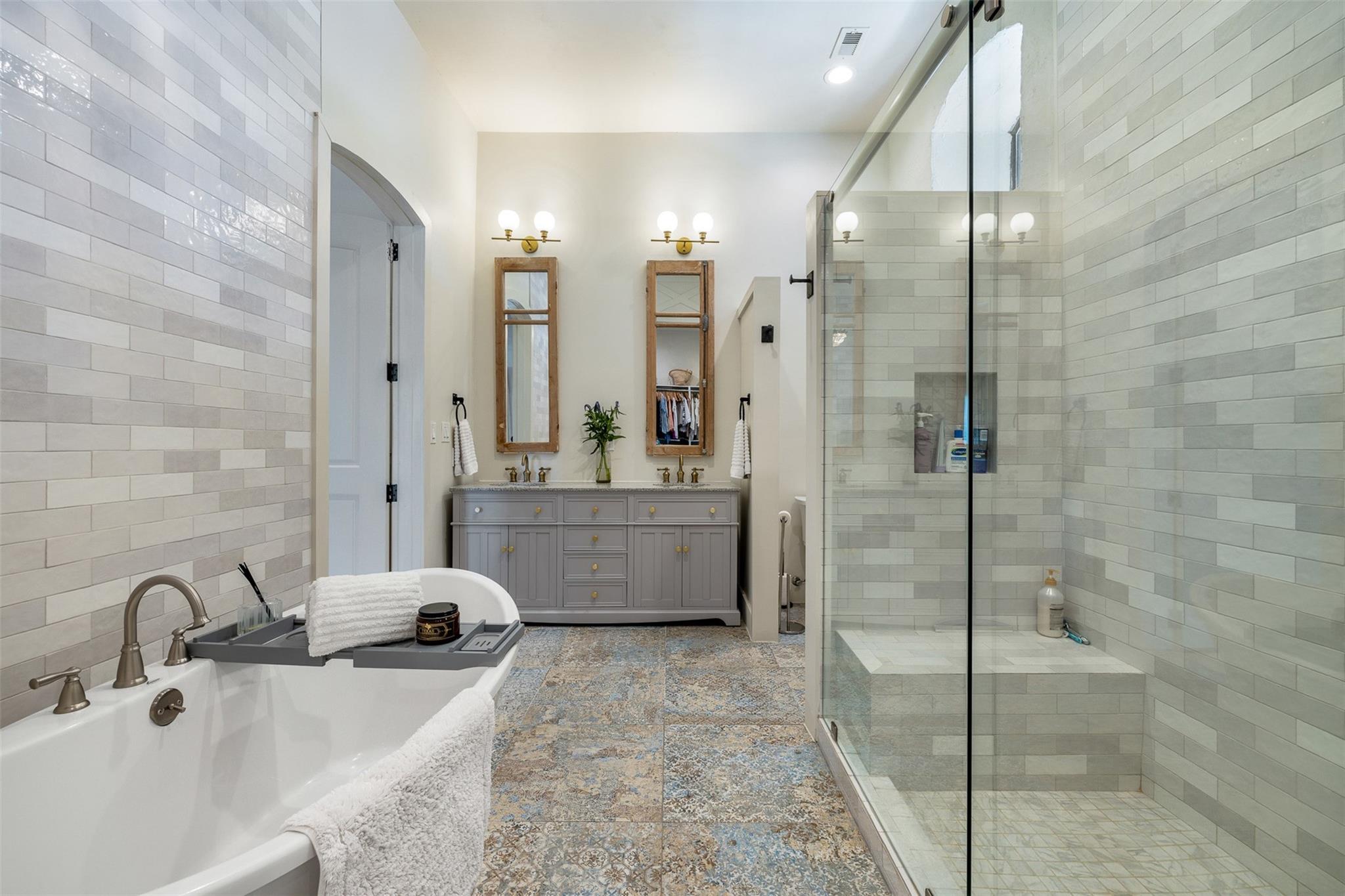 InteriorFloors:Tile,TravertineCountertop:QuartzBathroom Description:Primary Bath: Double Sinks,Primary Bath: Separate Shower,Primary Bath: Soaking Tub,Secondary Bath(s): Separate Shower,Secondary Bath(s): Shower Only,Secondary Bath(s): Tub/Shower ComboBedroom Desc:All Bedrooms Down,En-Suite Bath,Walk-In ClosetKitchen Desc:Breakfast Bar,Island w/o Cooktop,Kitchen open to Family Room,Soft Closing Drawers,Walk-in PantryRoom Description:1 Living Area,Gameroom Up,Kitchen/Dining Combo,Loft,Quarters/Guest House,Utility Room in HouseHeating:Central Electric,ZonedCooling:Central Electric,ZonedConnections:Electric Dryer Connections,Washer ConnectionsDishwasher:YesDisposal:YesCompactor:NoMicrowave:YesRange:Gas Cooktop,Gas RangeIce Maker:NoEnergy Feature:Ceiling Fans,Digital Program ThermostatInterior:Fire/Smoke Alarm,High Ceiling,Spa/Hot Tub