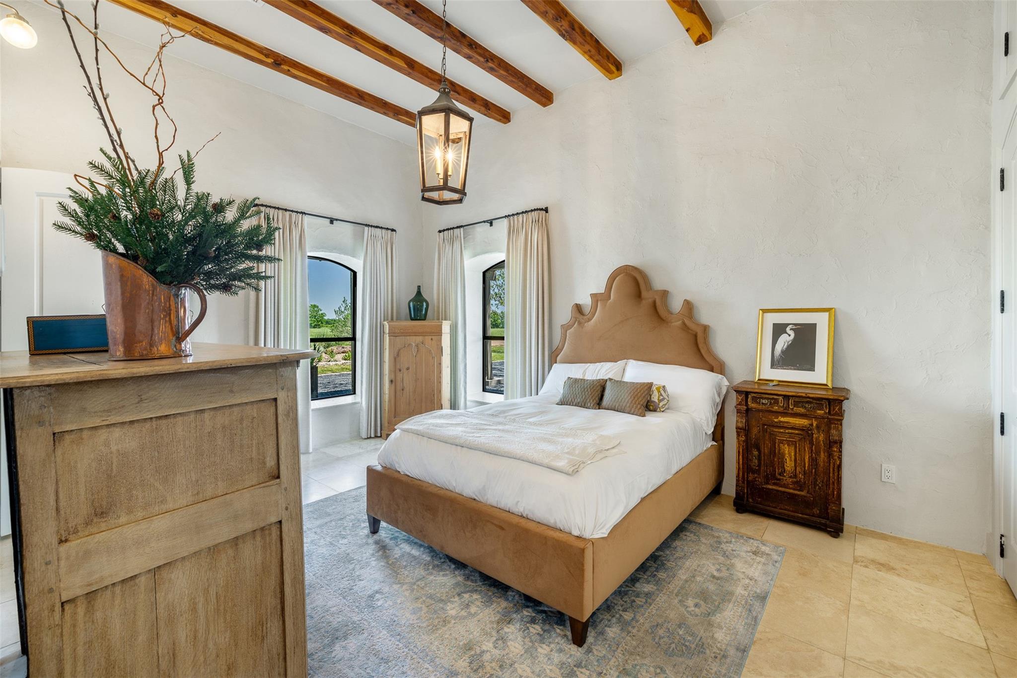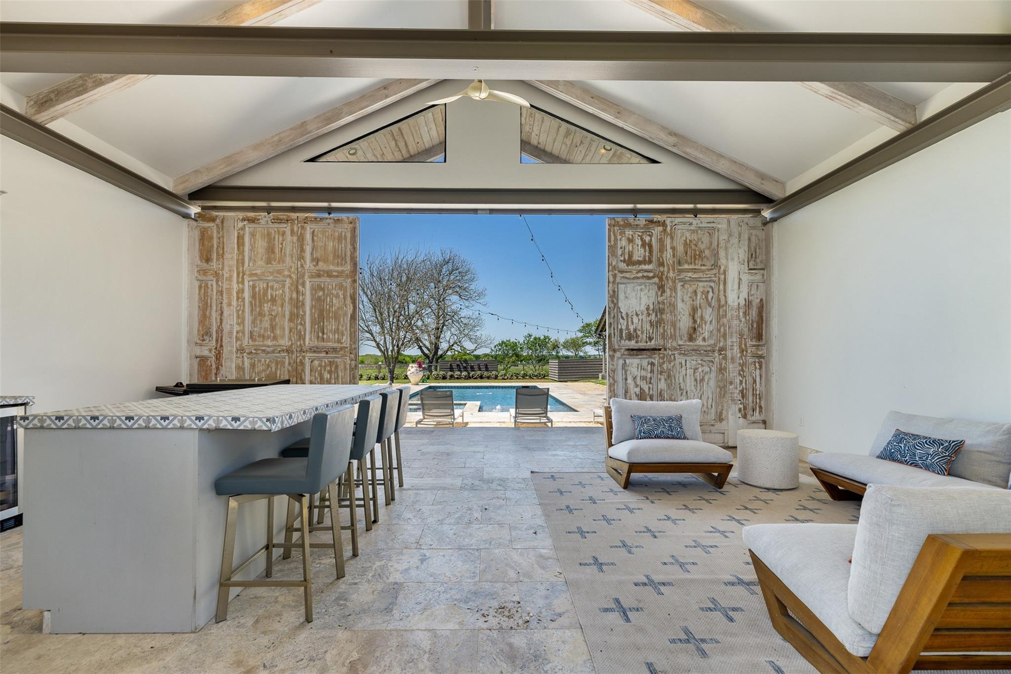 Just minutes from the heart of Round Top, this exceptional 10-acre property offers a picturesque escape with sweeping meadows and a stocked pond. The 3,956 sq ft main residence features travertine floors throughout, four bedrooms each with a beautifully appointed en suite bath, and a chef’s kitchen with quartz countertops, a grand island, and French doors that open to a charming courtyard. A sculptural staircase leads to a second-level game room and a third-level perch with panoramic views of the surrounding countryside. Outdoors, a sparkling pool is enhanced by a stylish pool house and a thoughtfully crafted party barn with a kitchen and guest suite—perfect for hosting friends or relaxing in comfort. Nestled on an exceptional Round Top road and facing expansive pastureland, this serene retreat offers timeless appeal just moments from Round Top.